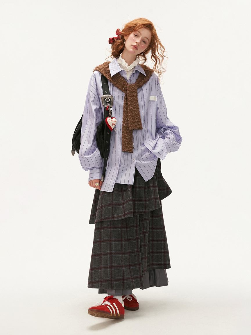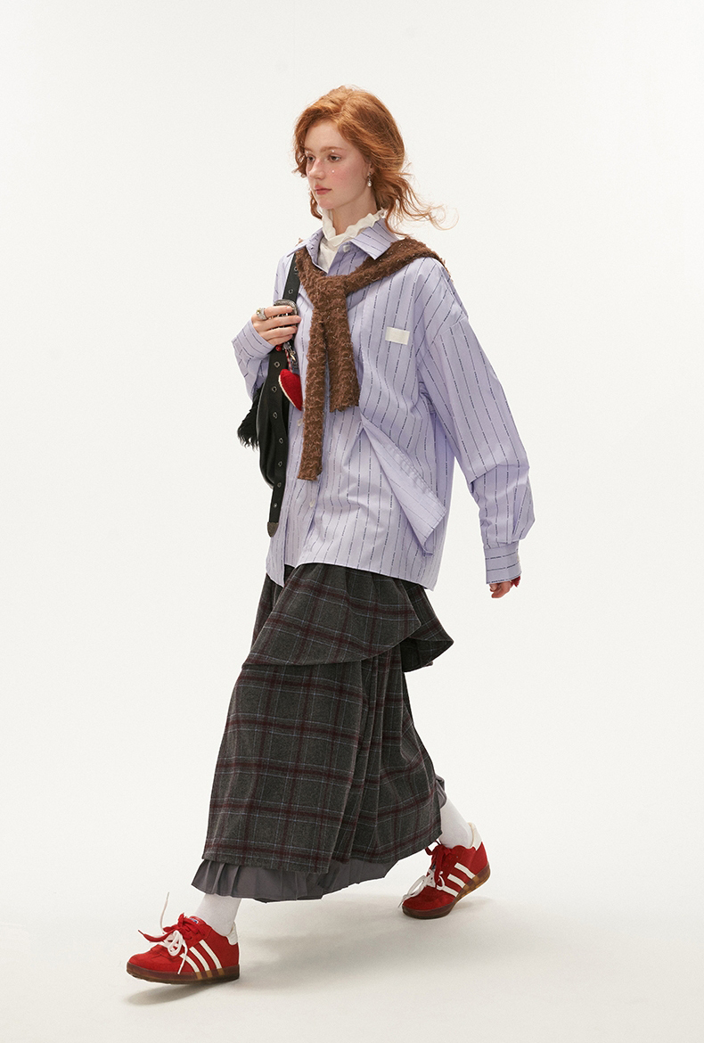Vertical Stiped Unblanced Layering Shirt