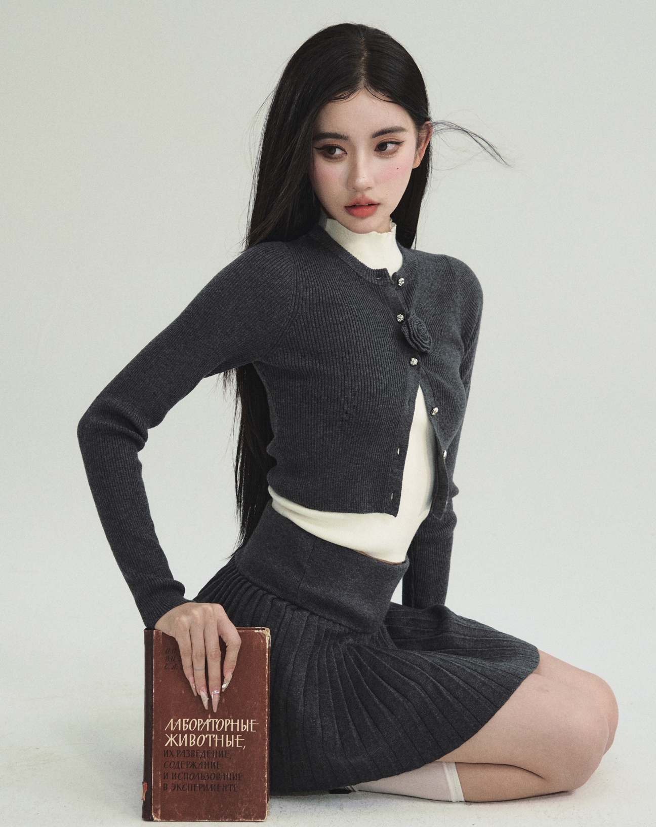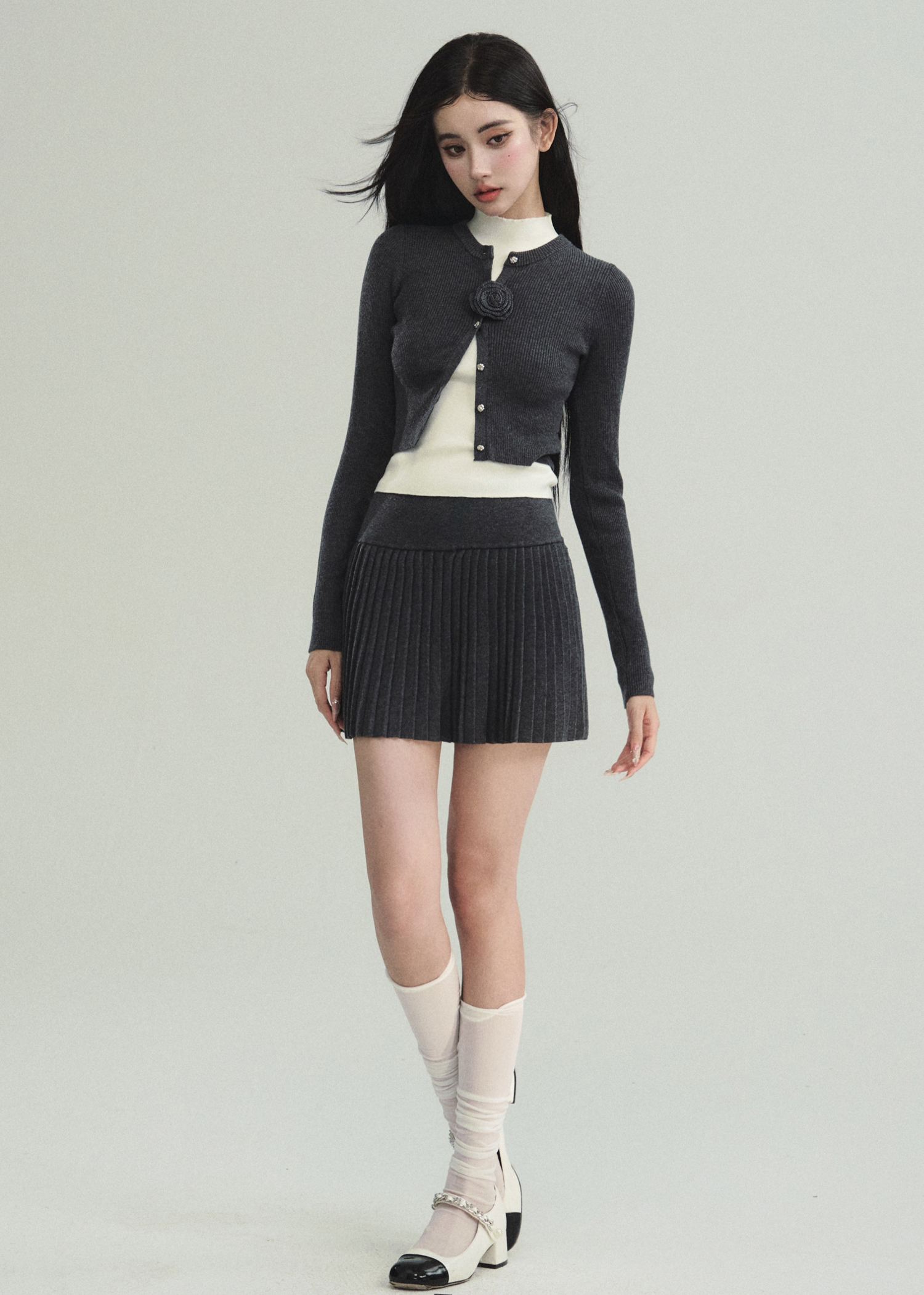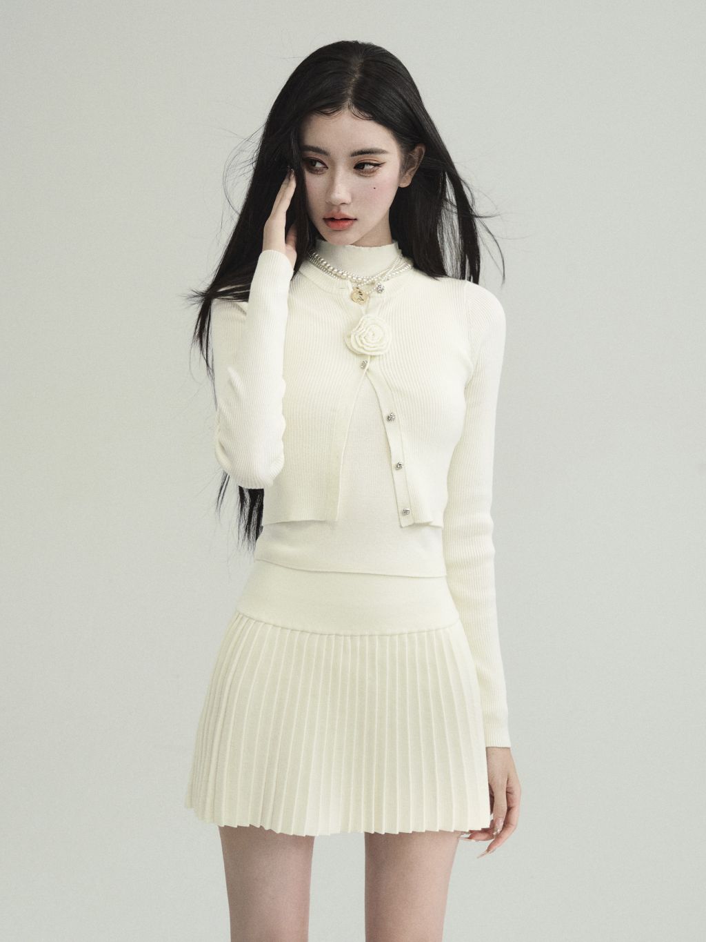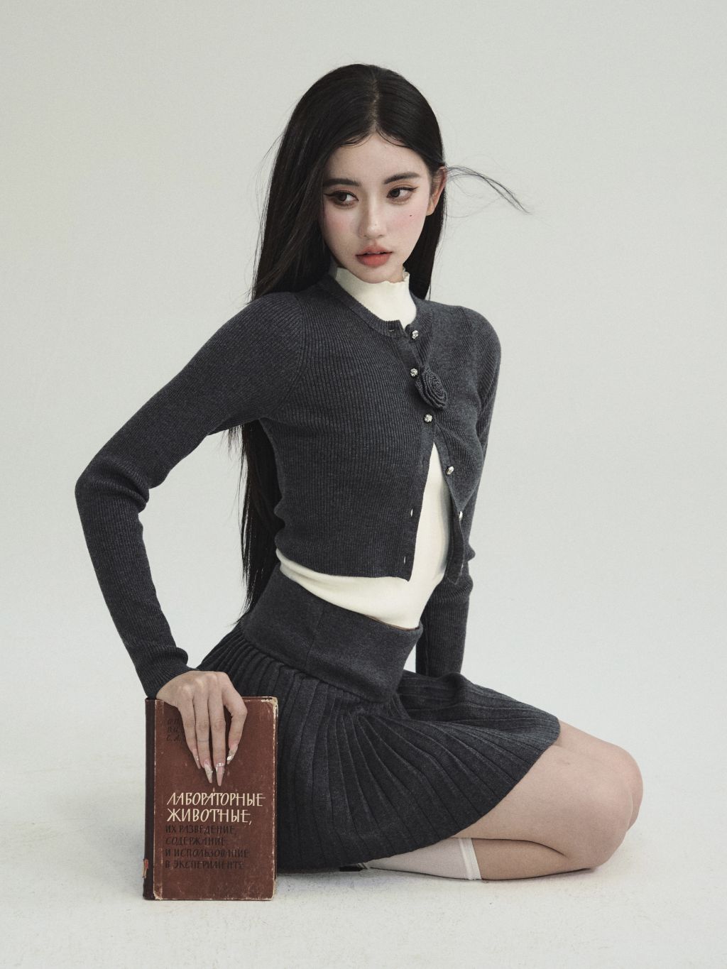 Rose Brooch Cardigan & Skirt 3 Set-up ( Sold Separately )