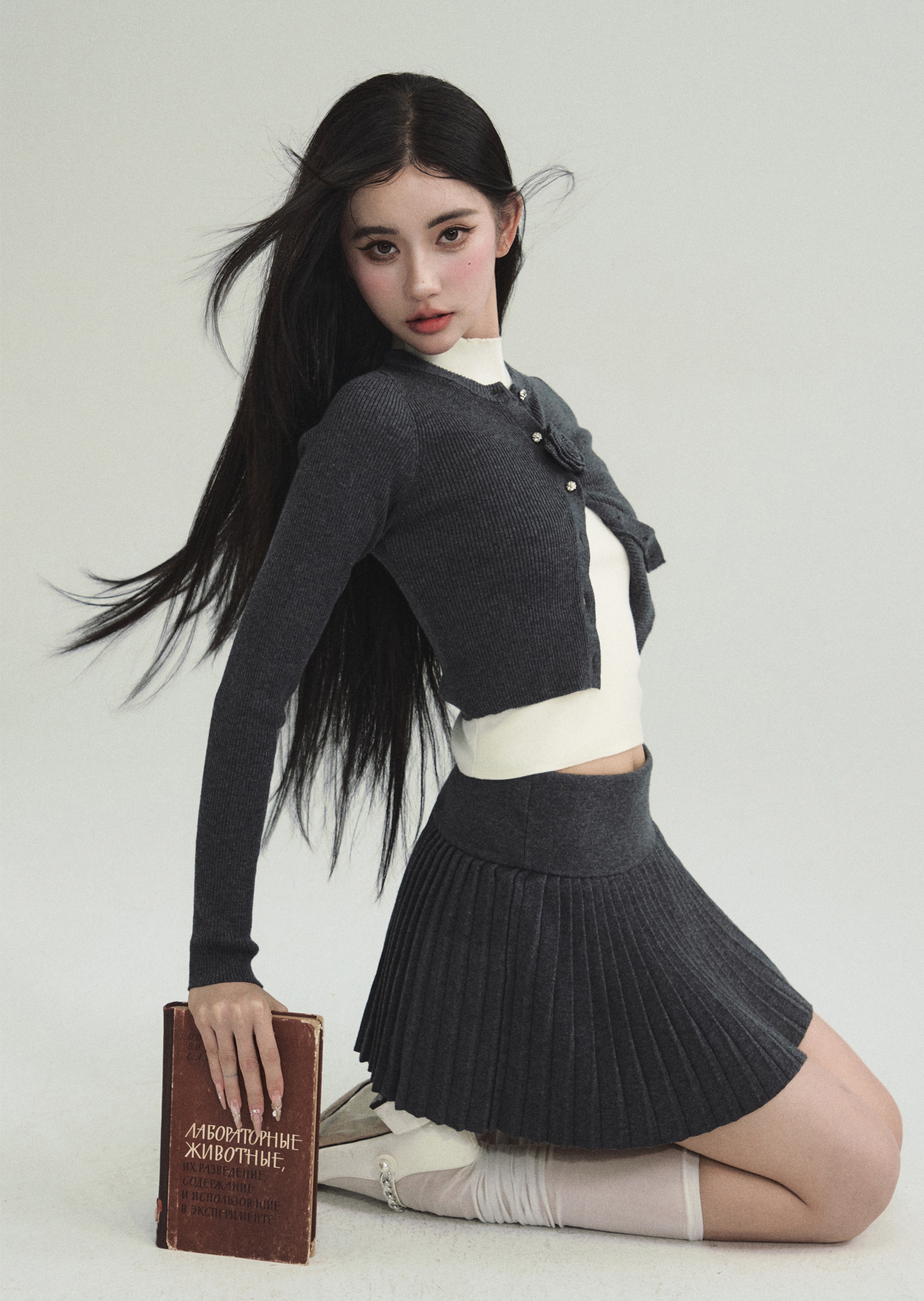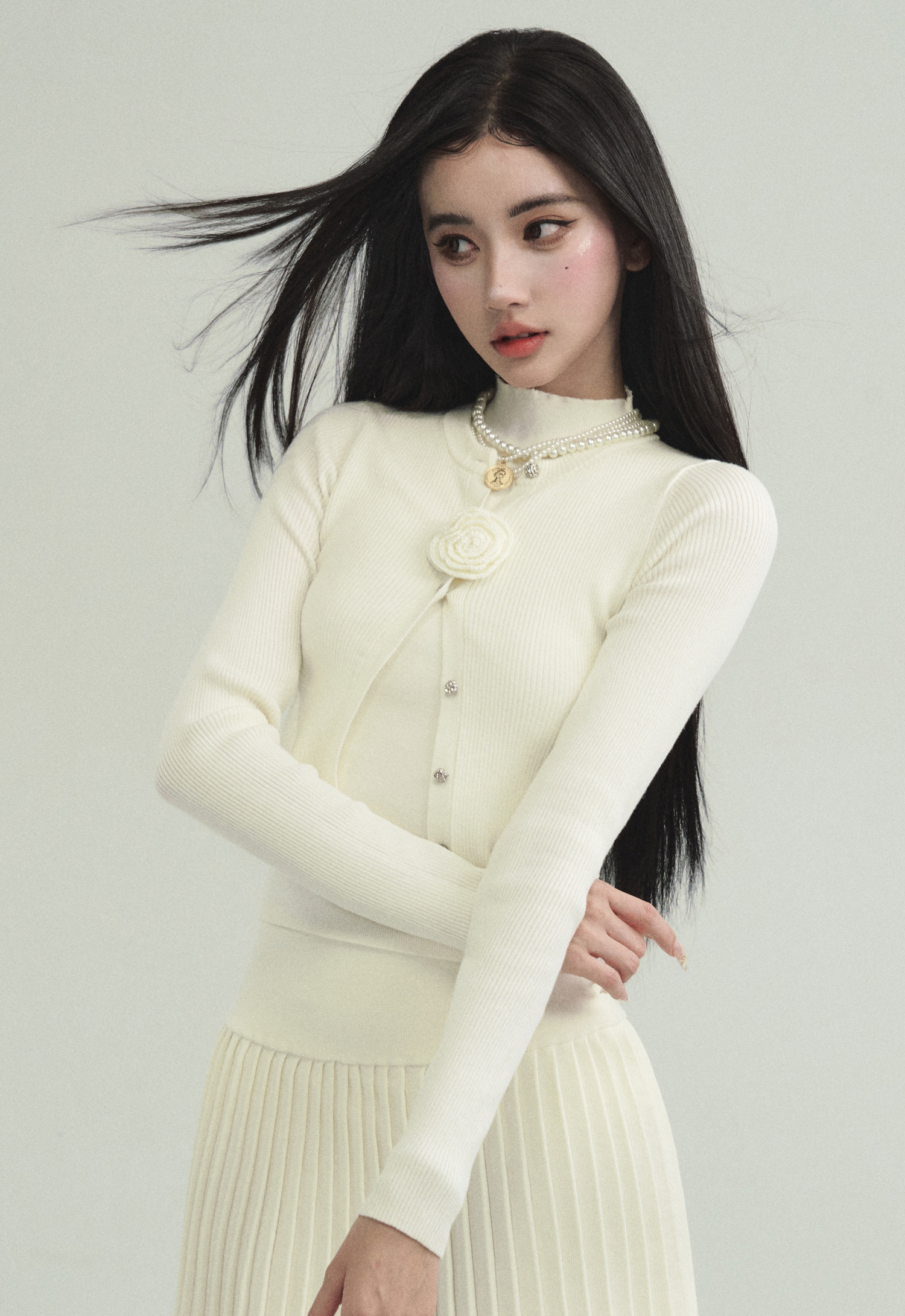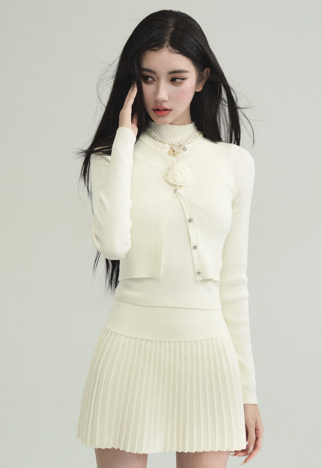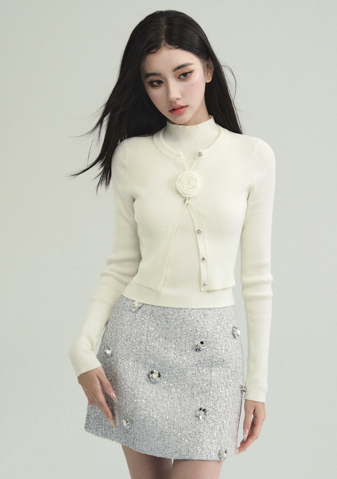Rose Brooch Cardigan & Skirt 3 Set-up ( Sold Separately )