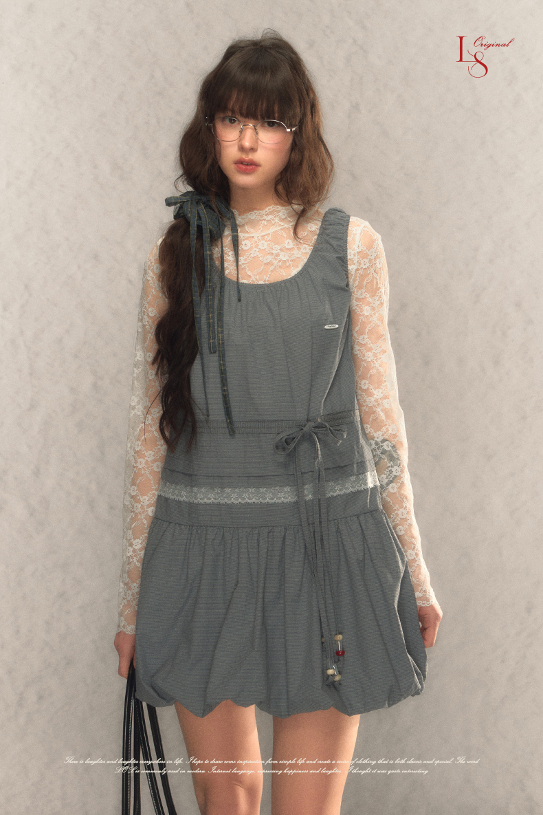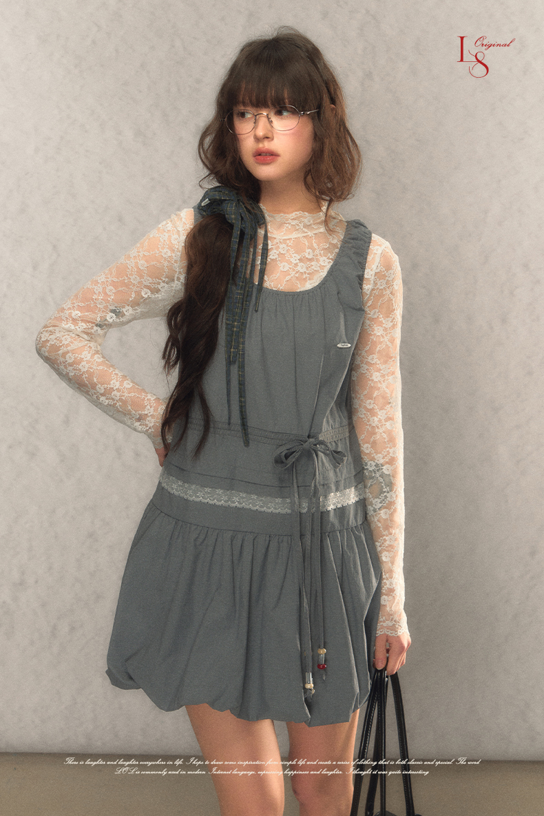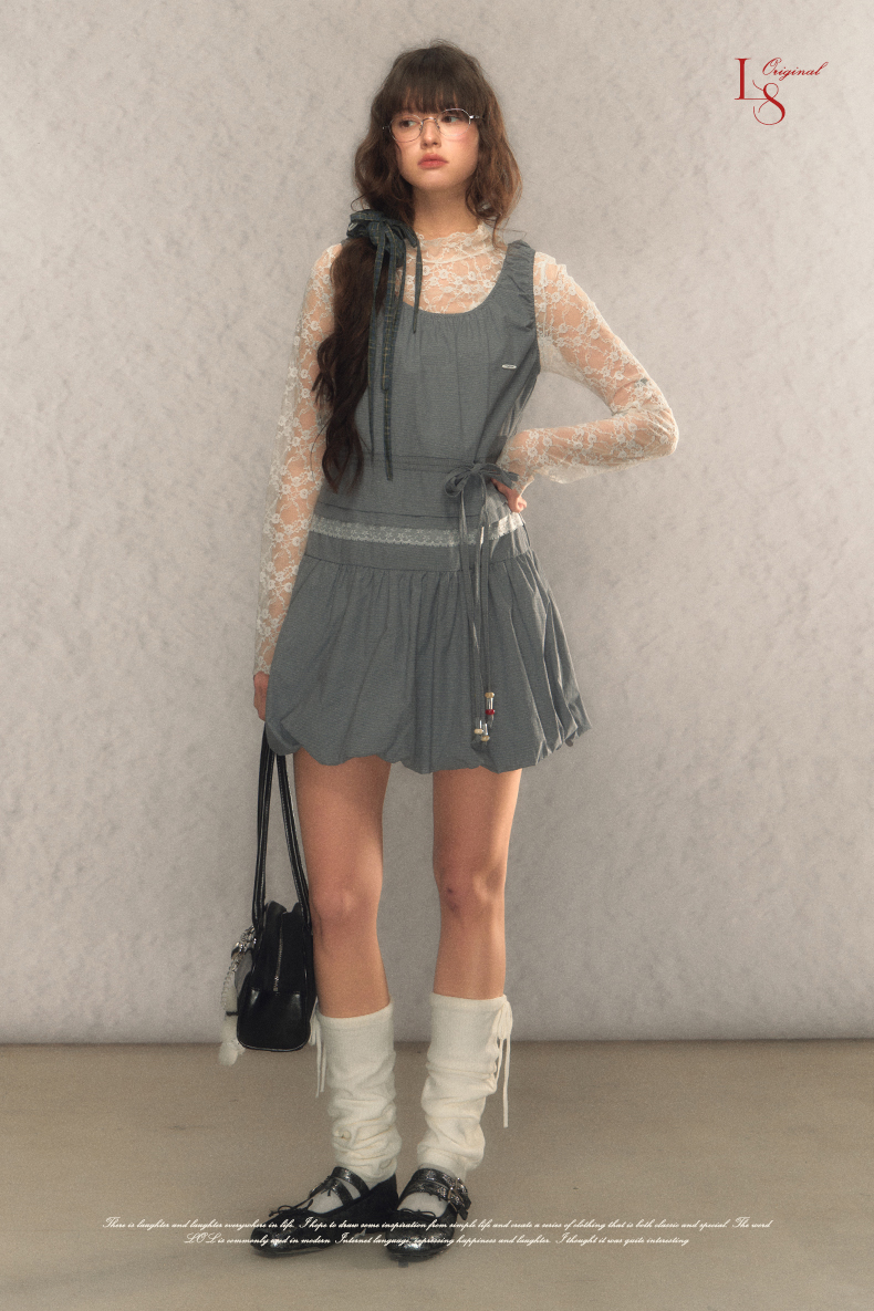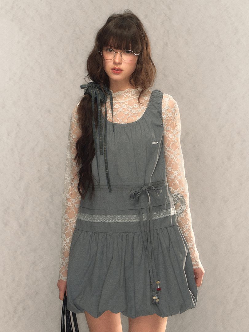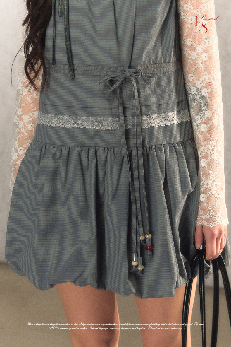 스트링이 돋보이는 미니 벌룬 드레스입니다.