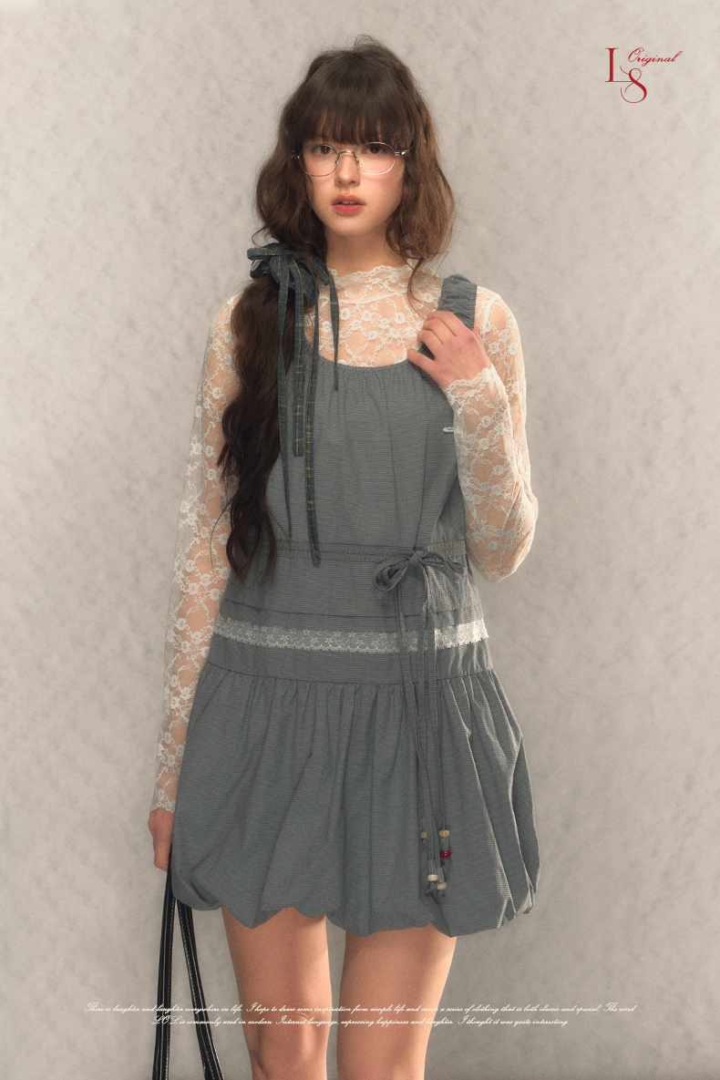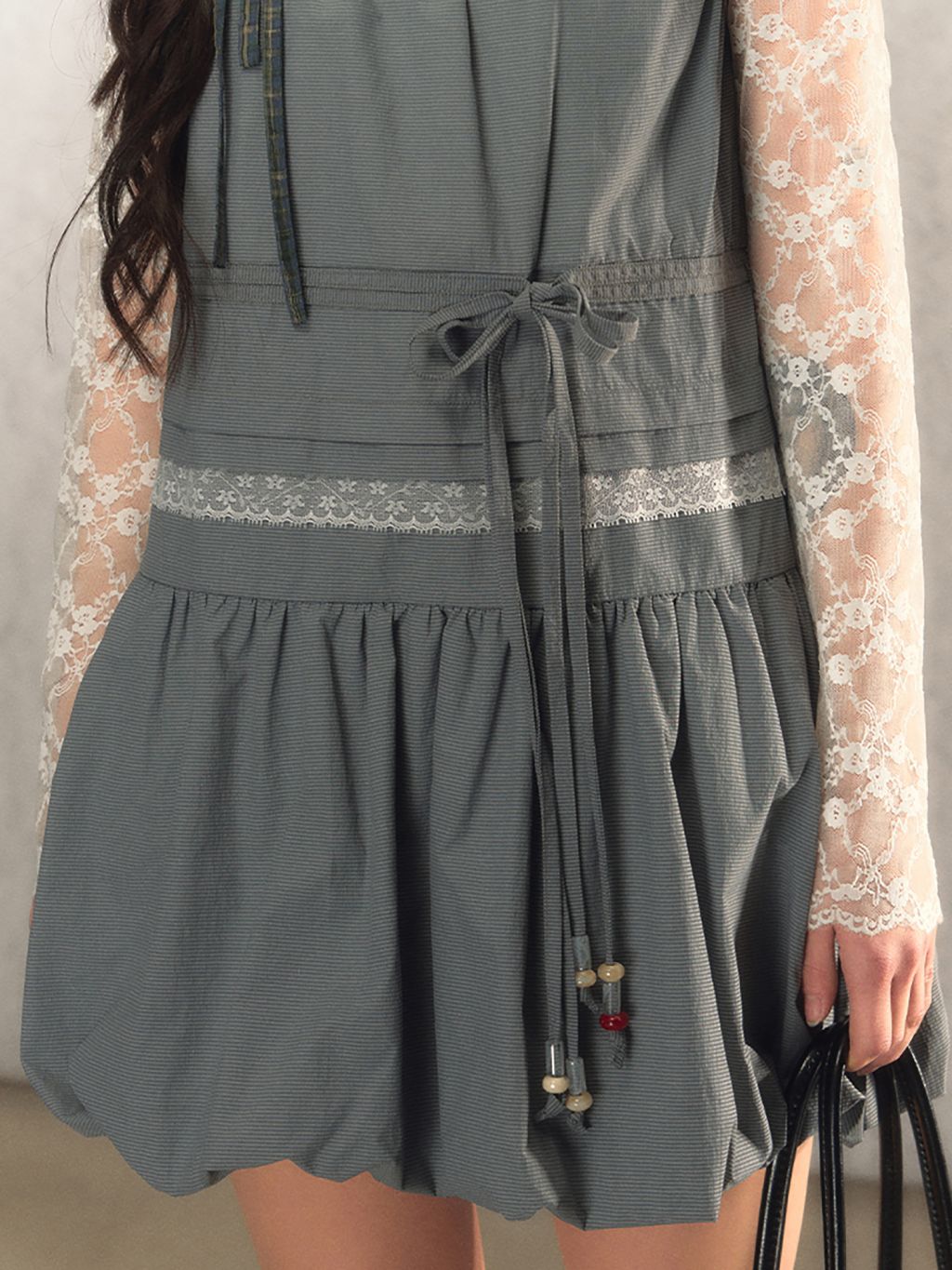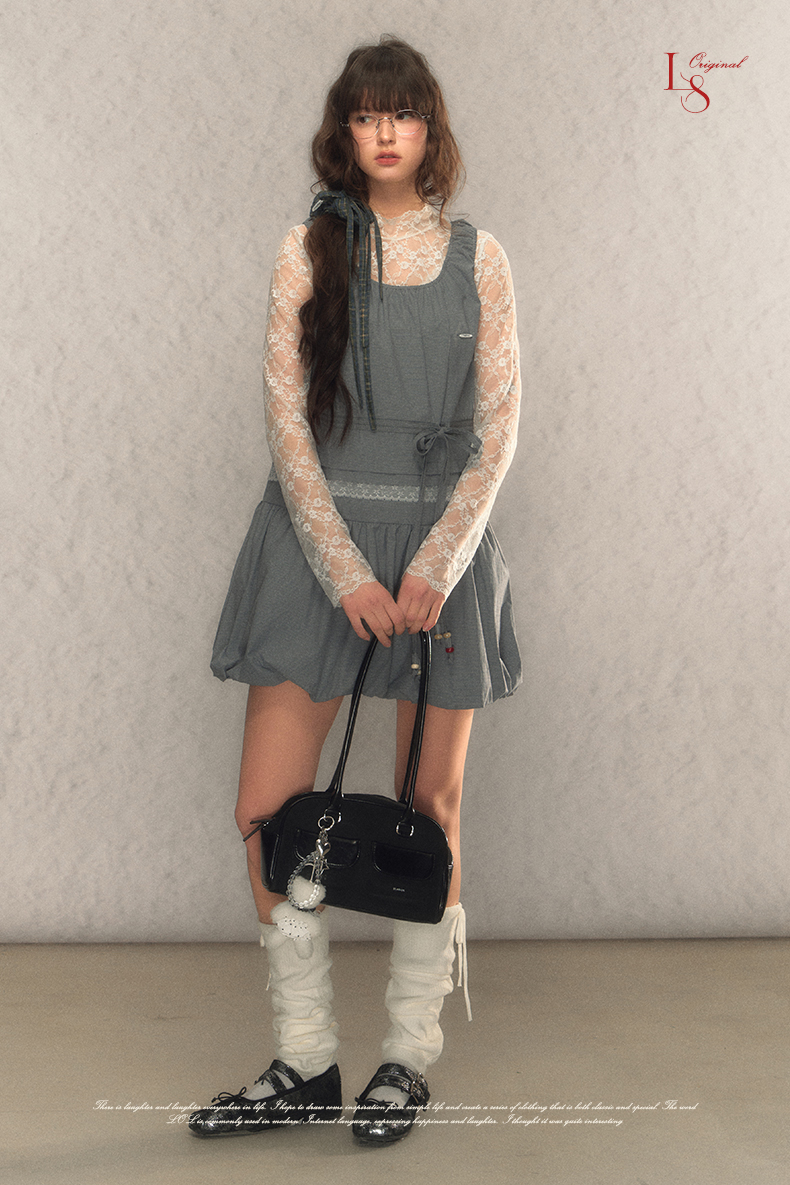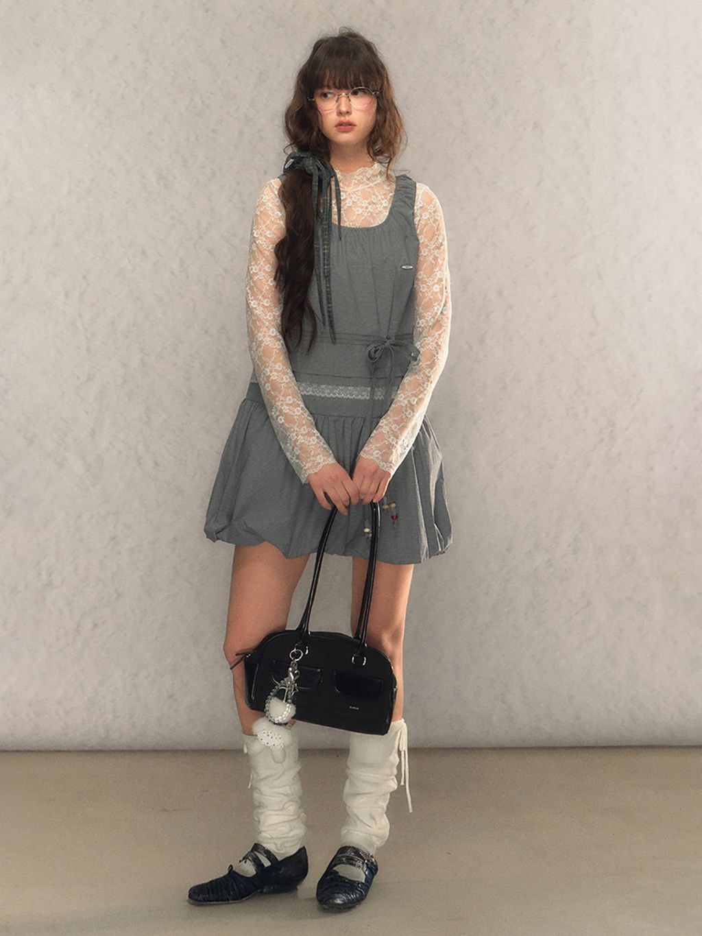 스트링이 돋보이는 미니 벌룬 드레스입니다.