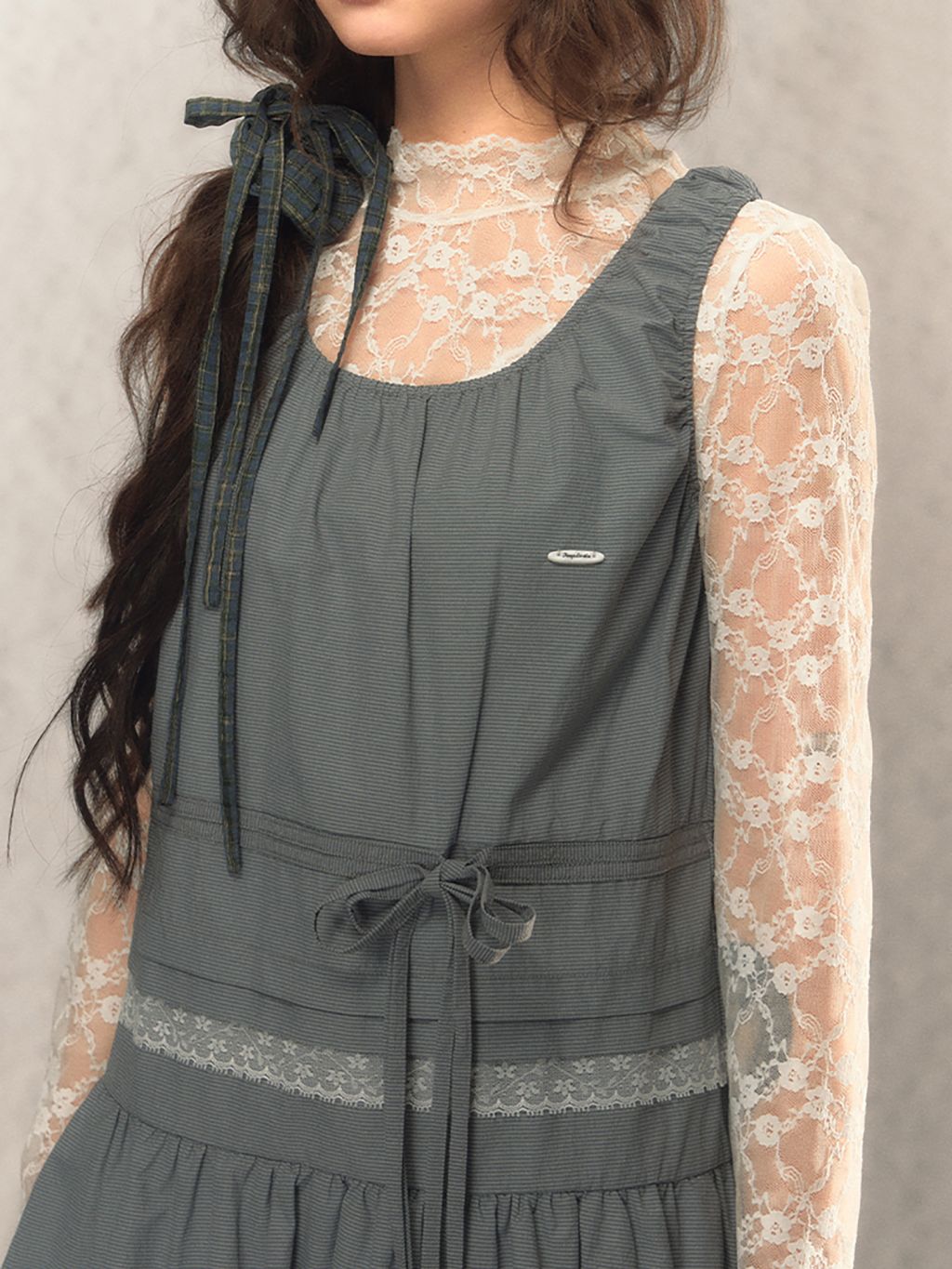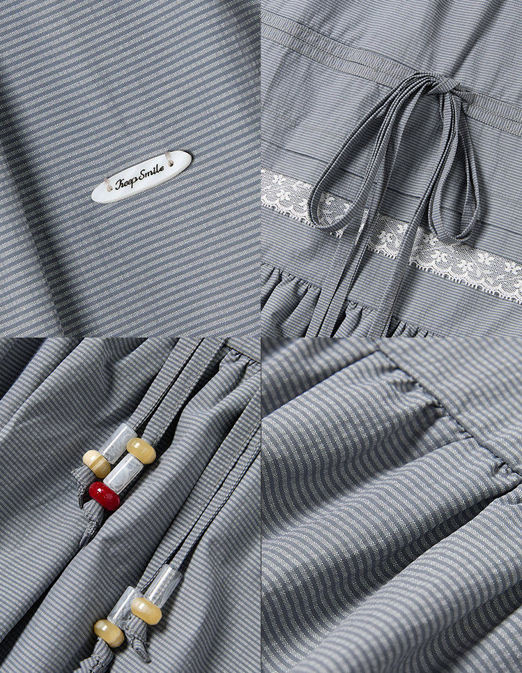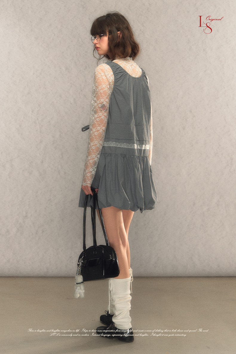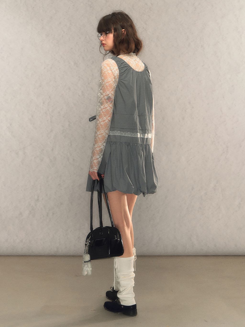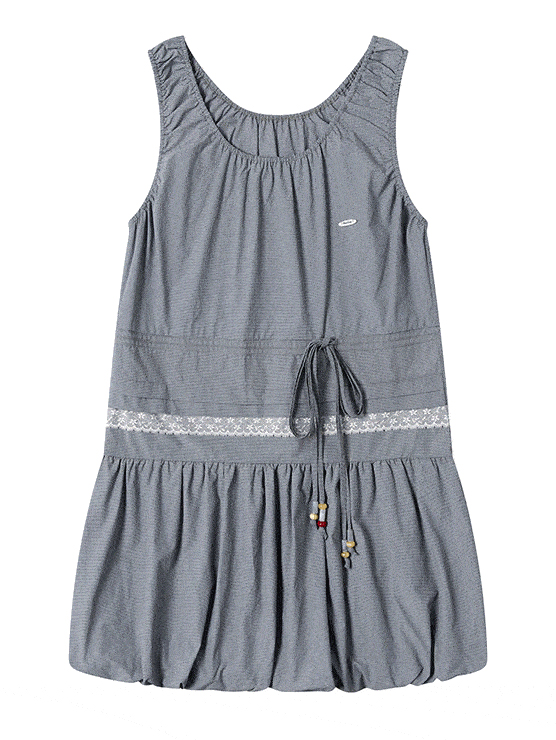 스트링이 돋보이는 미니 벌룬 드레스입니다.