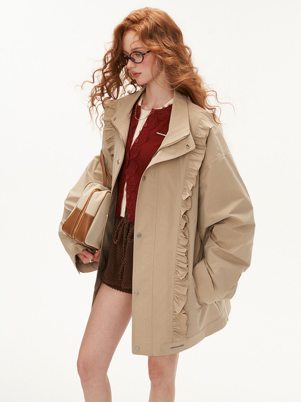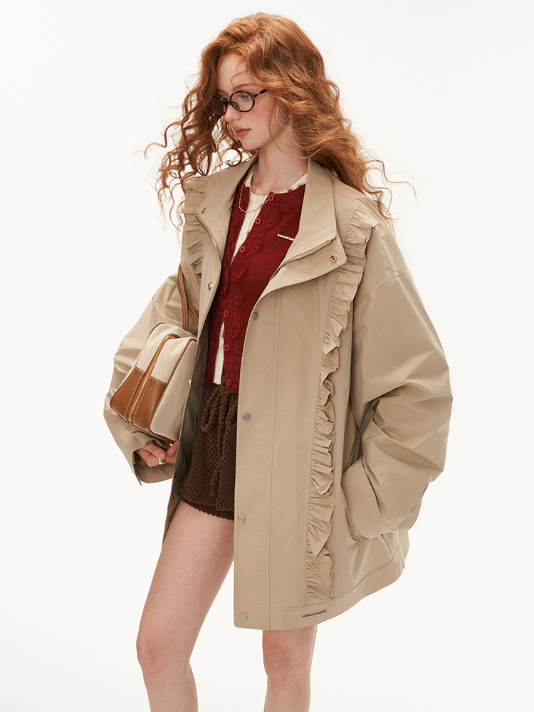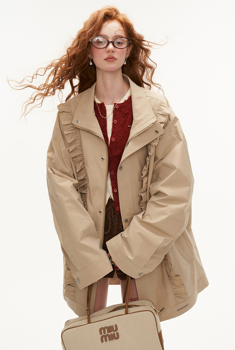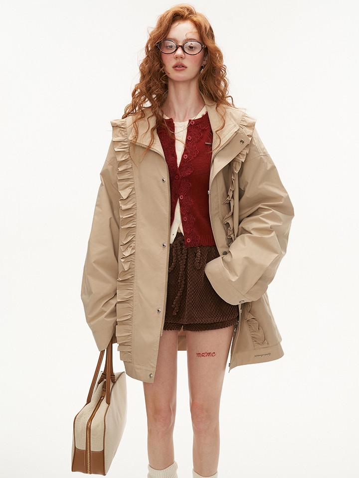 Khaki Frilled Edge Trench Coat