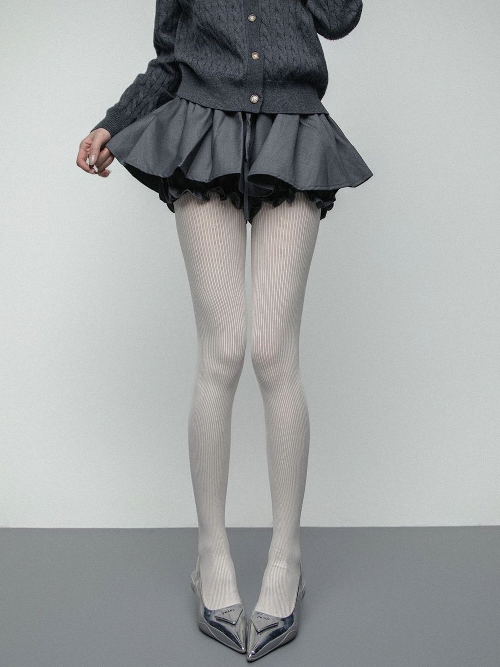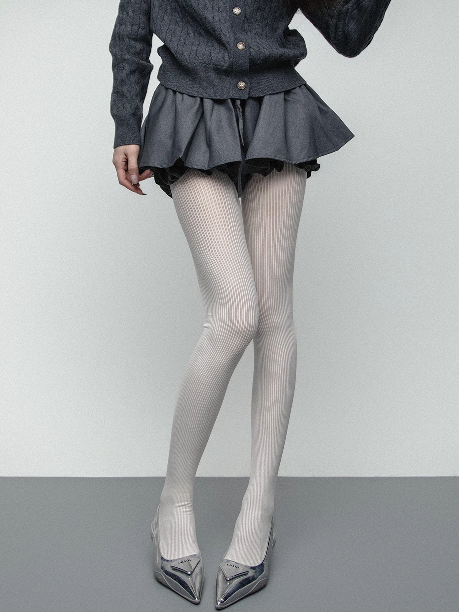시스루 골지 패턴의 스타킹입니다.