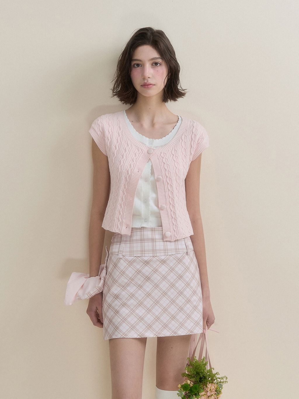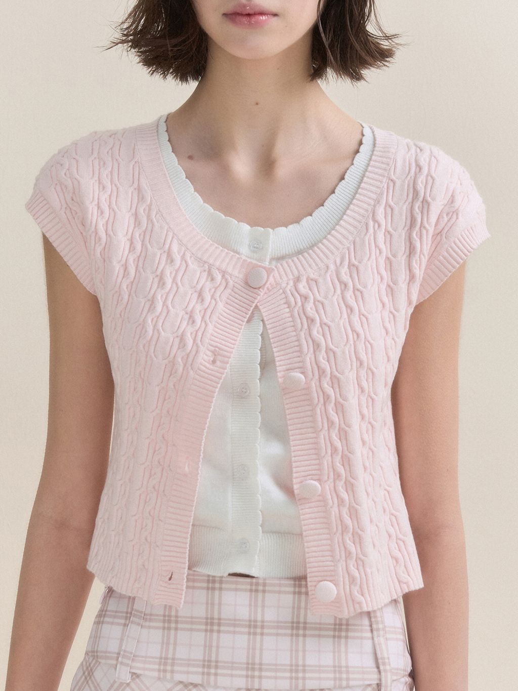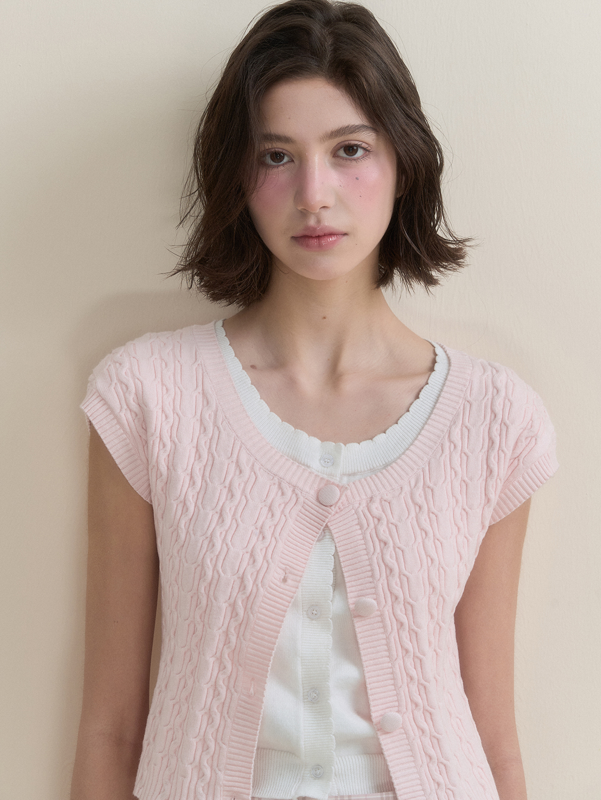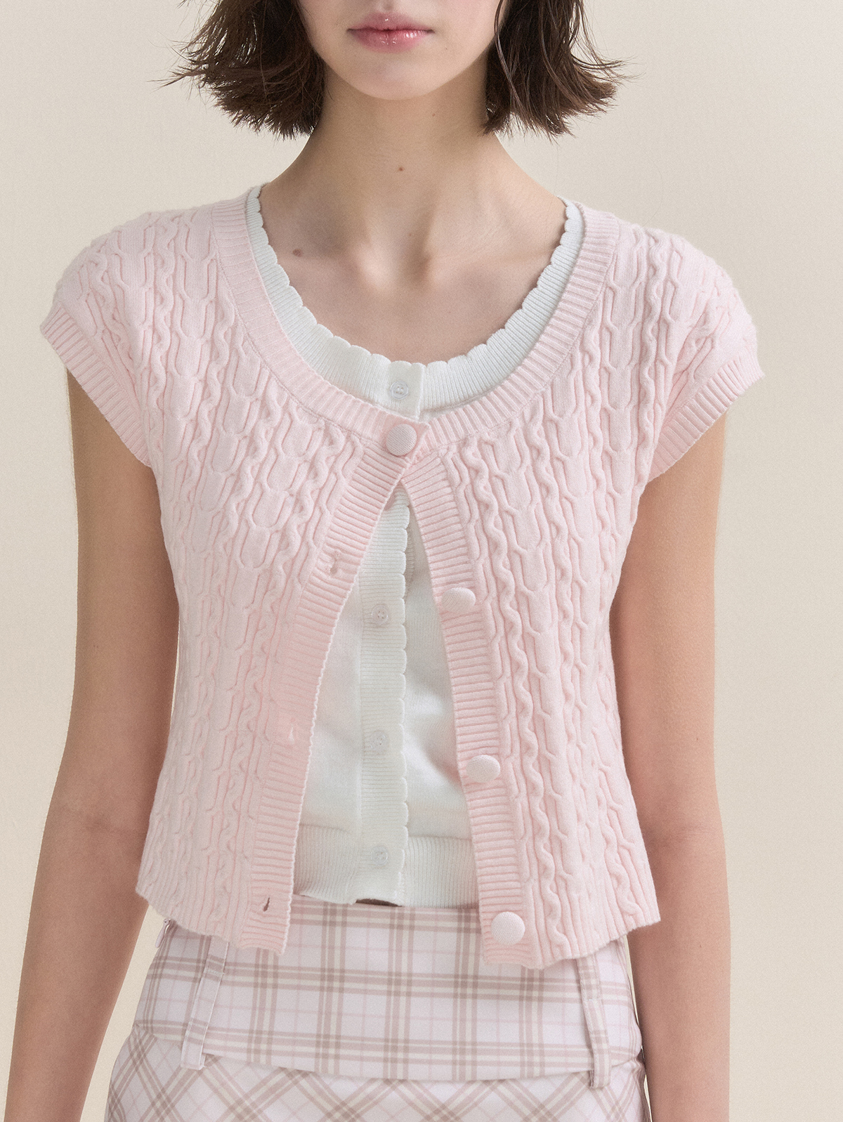 화사한 컬러감의 레이어드 숏슬리브 가디건입니다.