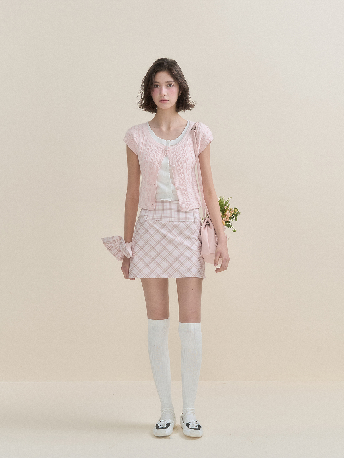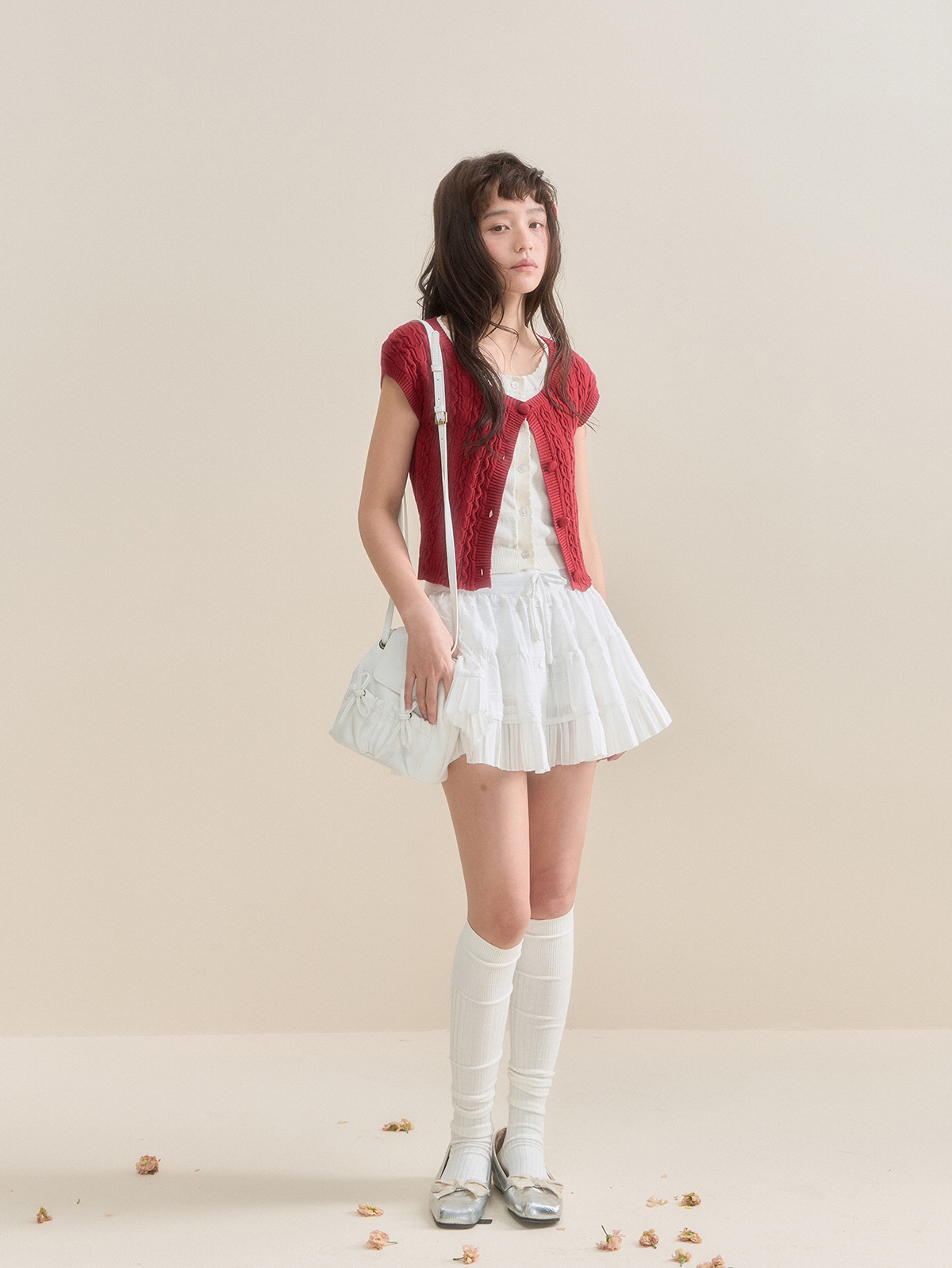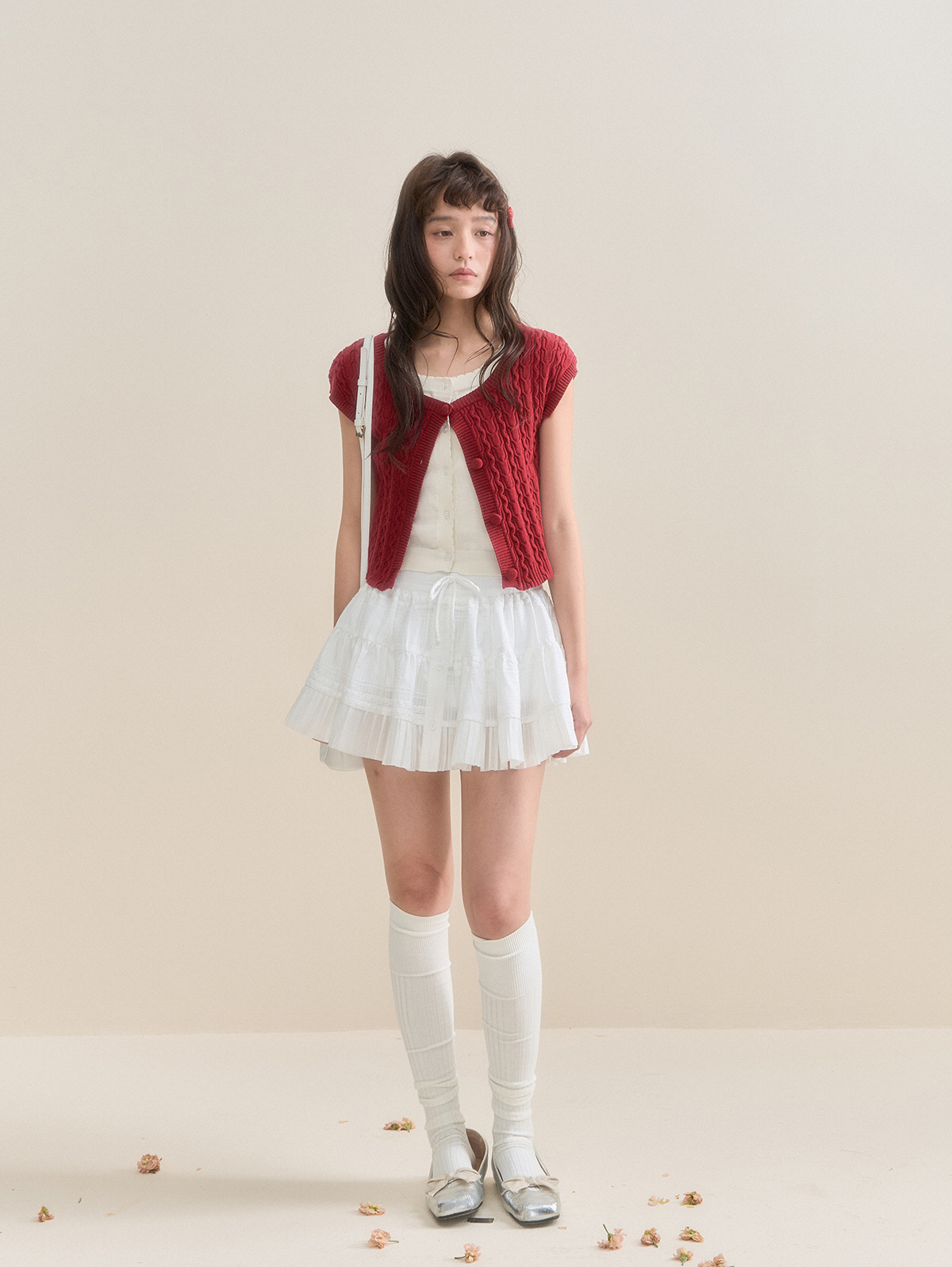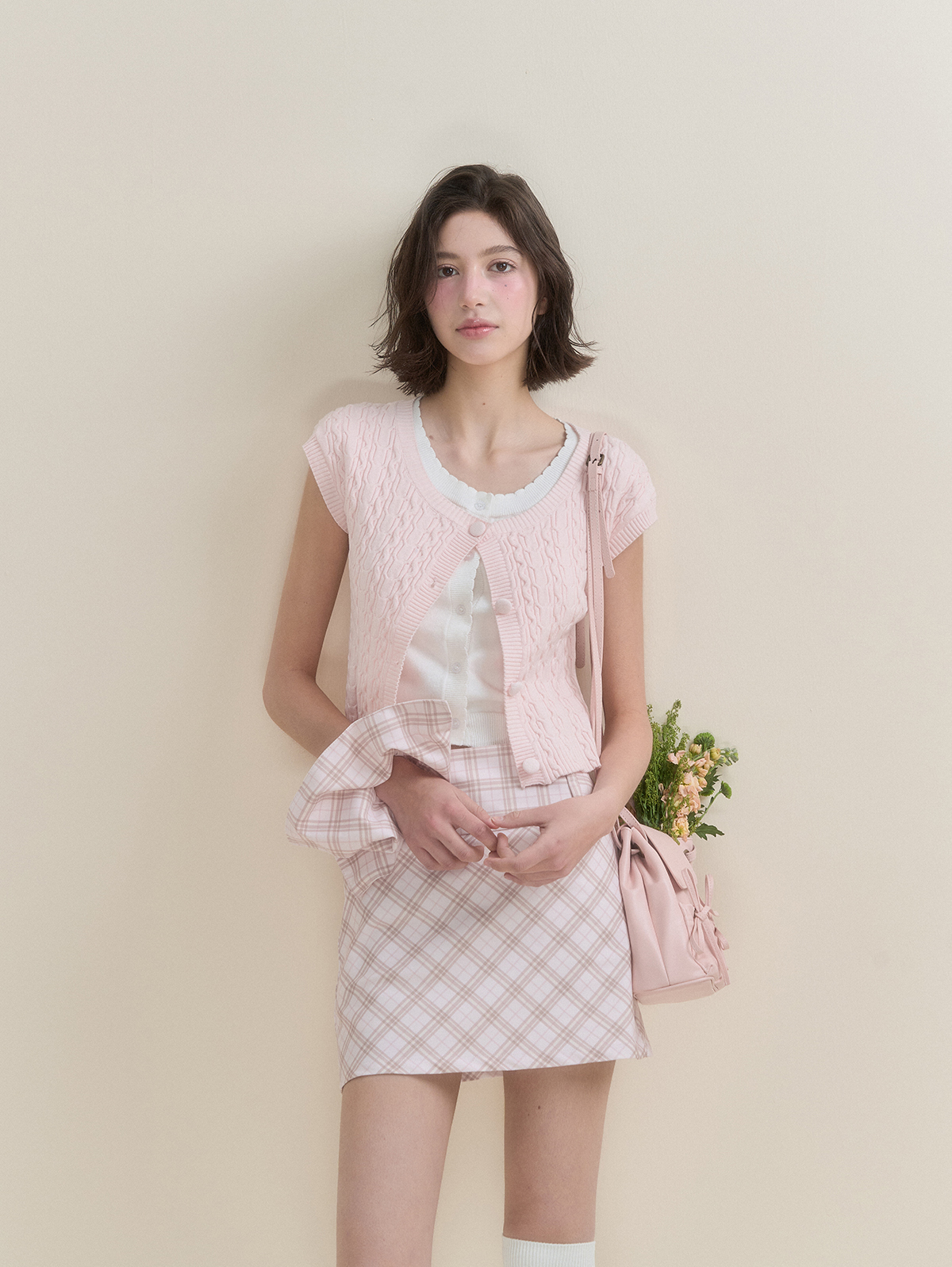 화사한 컬러감의 레이어드 숏슬리브 가디건입니다.