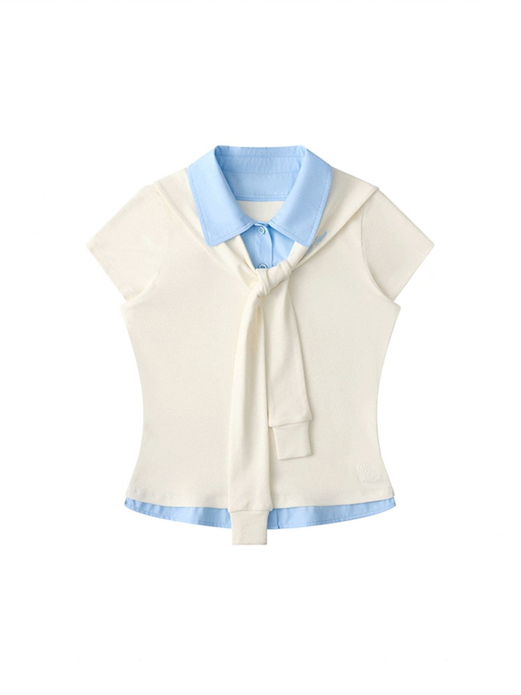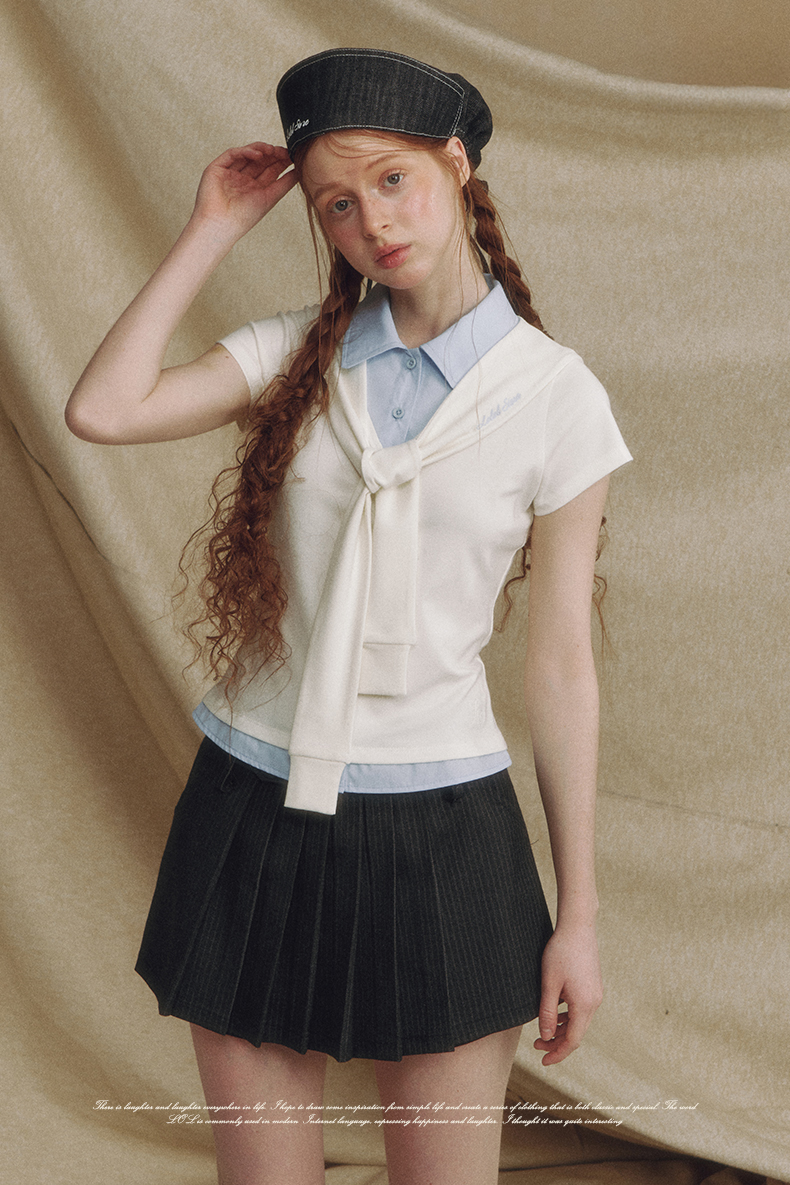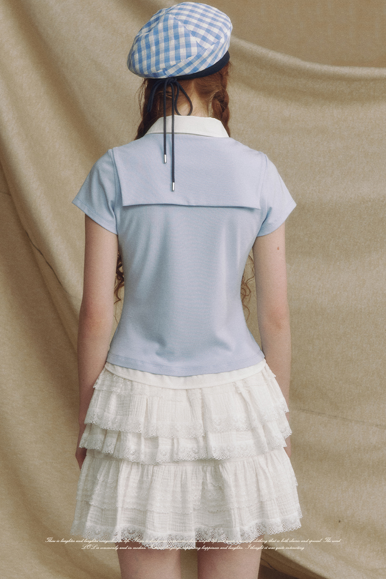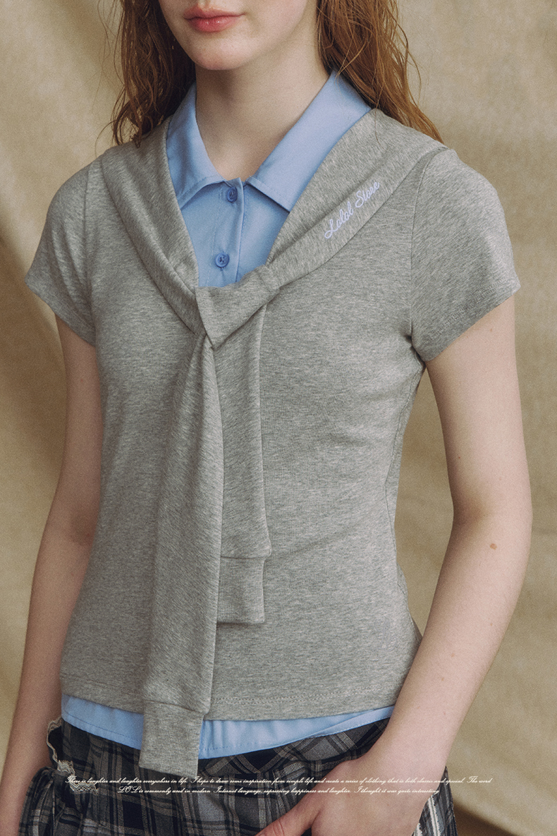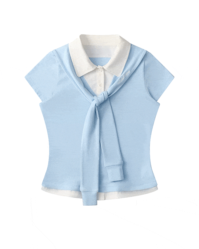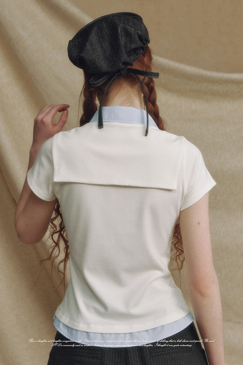 Fake 2-piece Sailor Collar Polo T-shirt