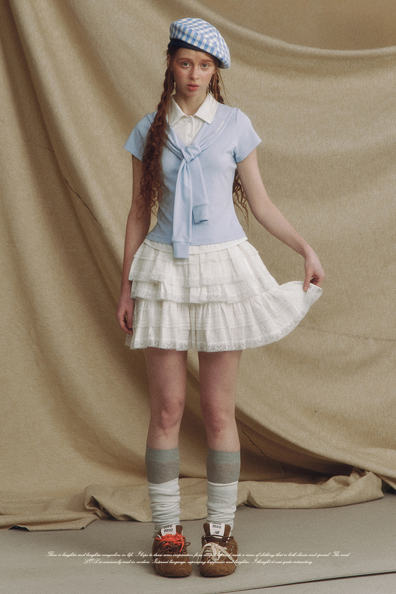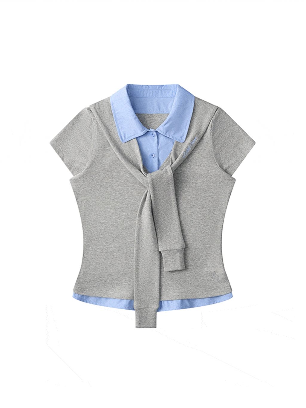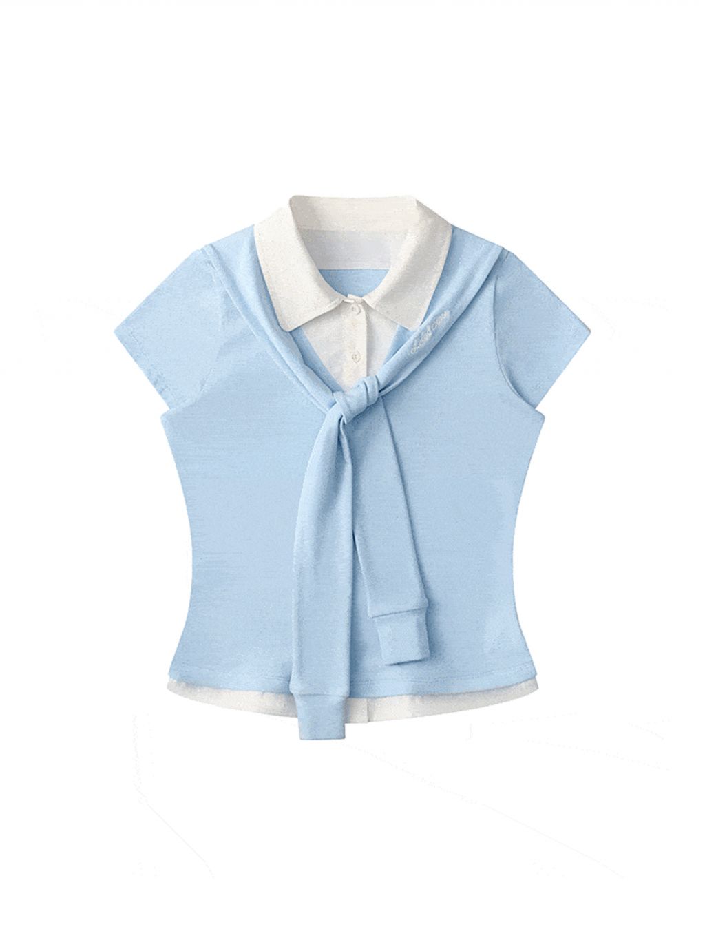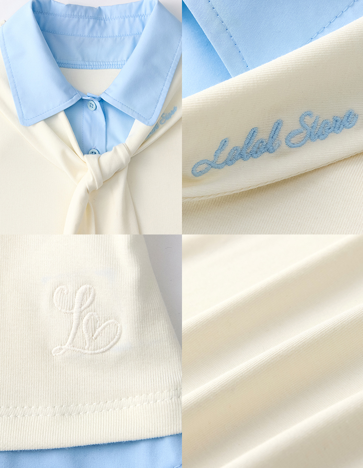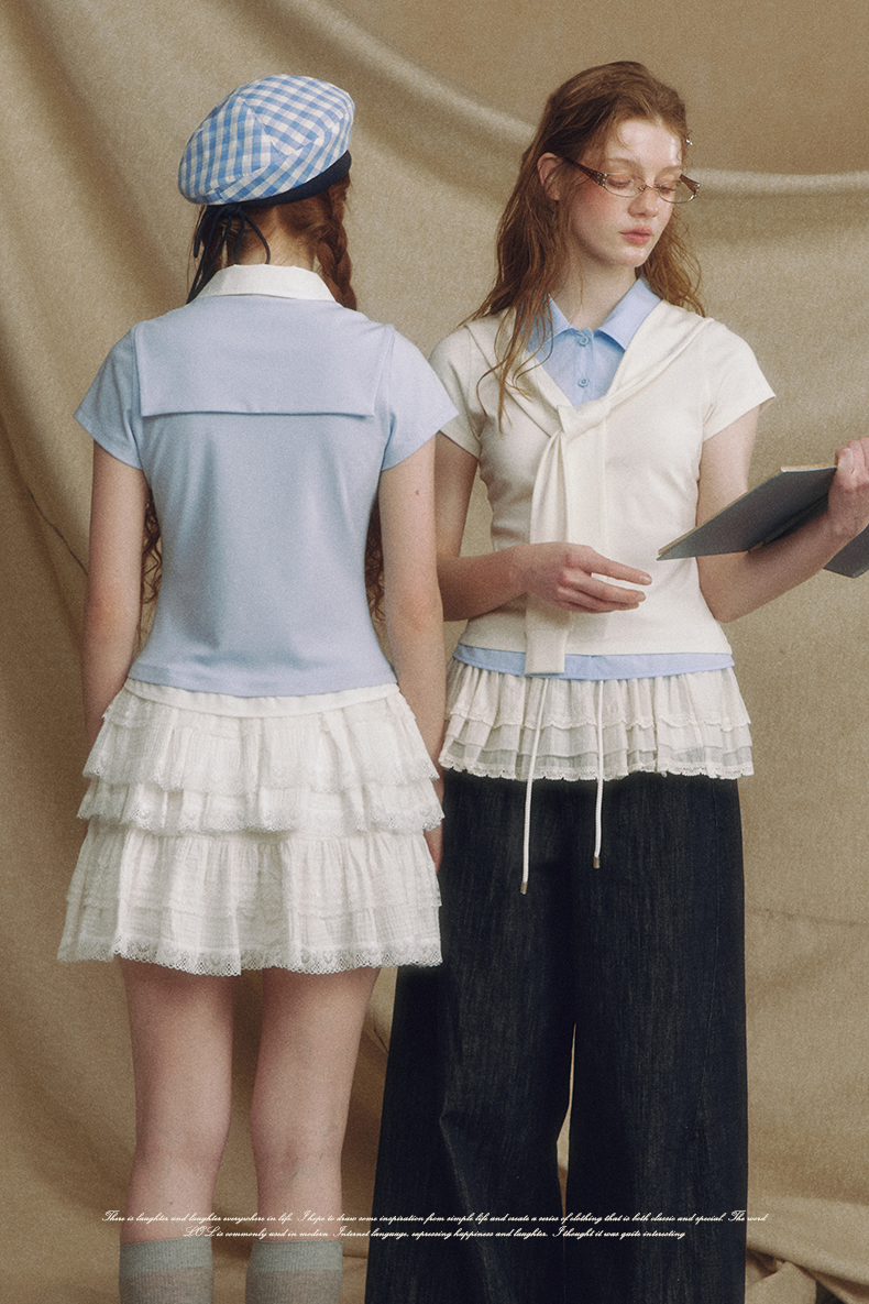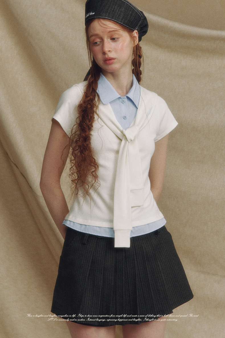 Fake 2-piece Sailor Collar Polo T-shirt