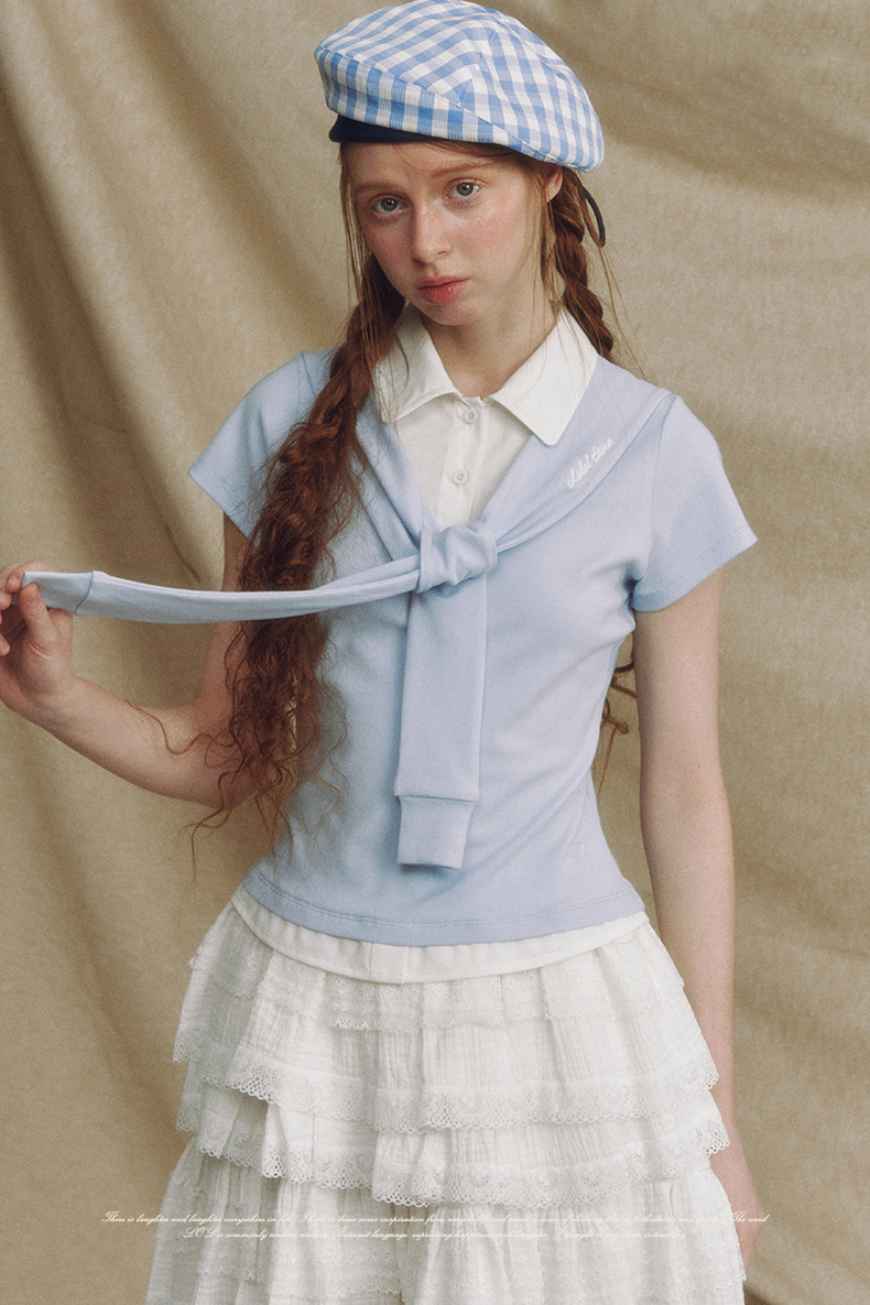 레이어드 느낌의 세일러 카라 폴로 티셔츠입니다.