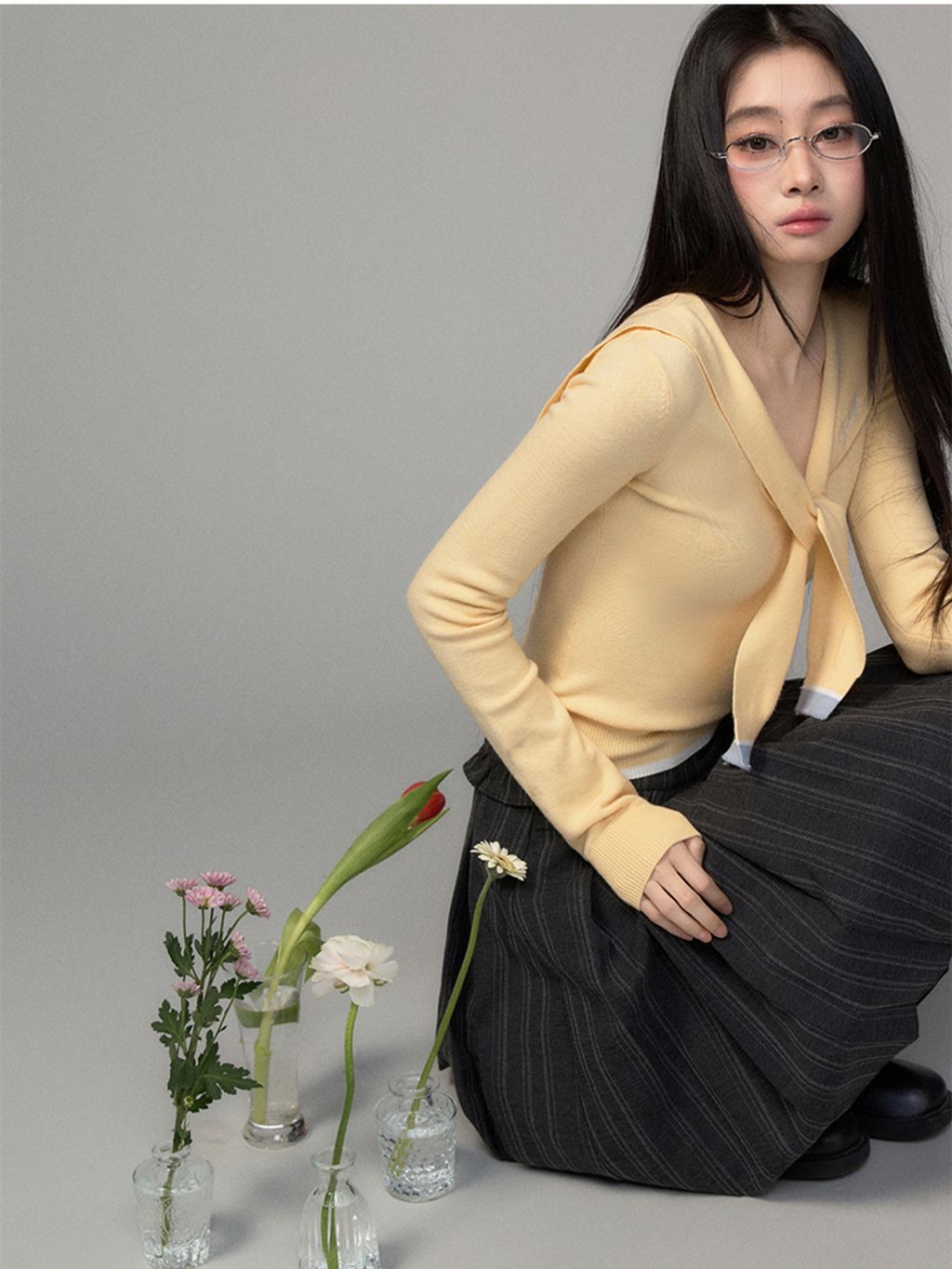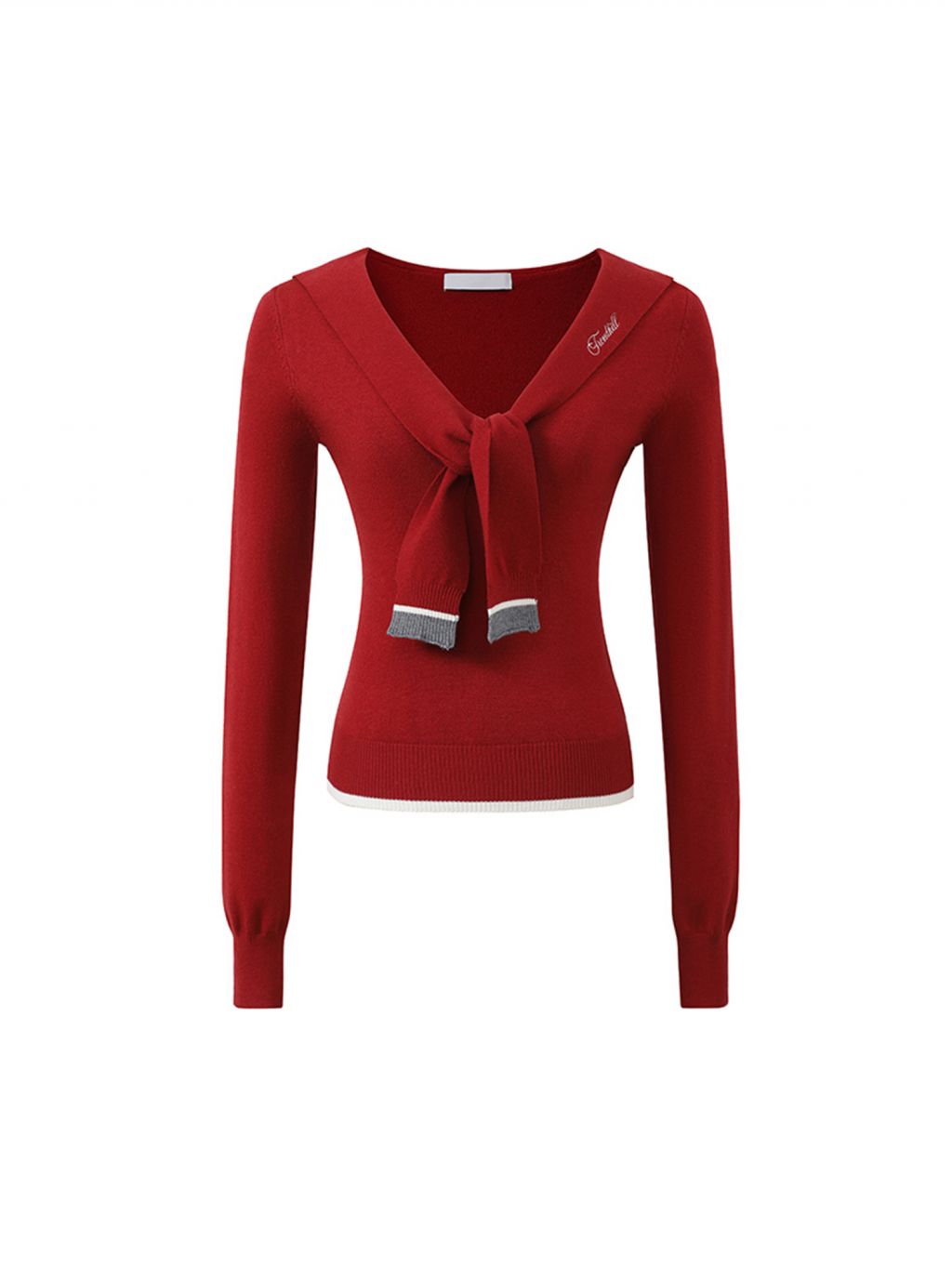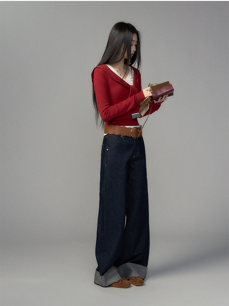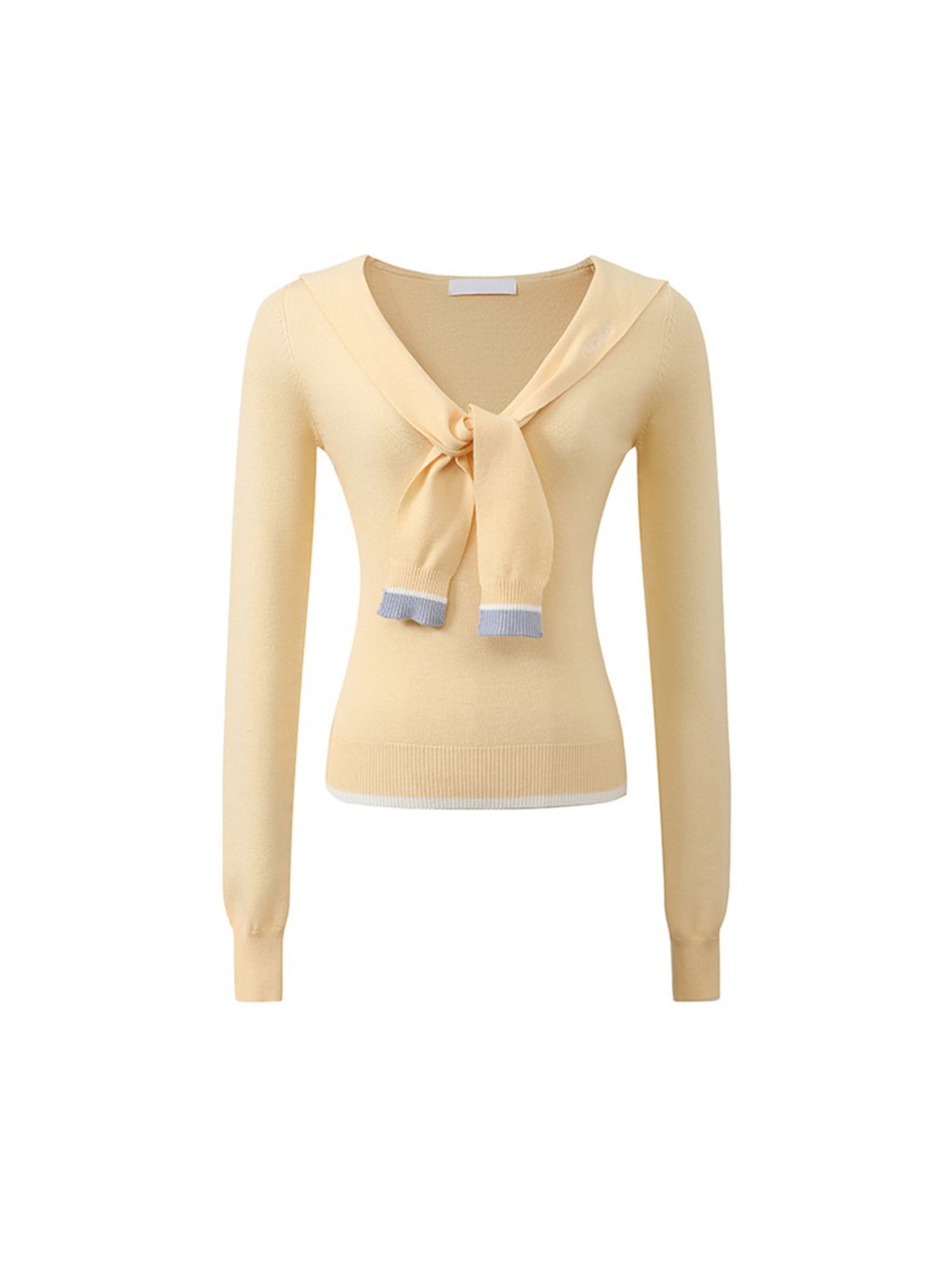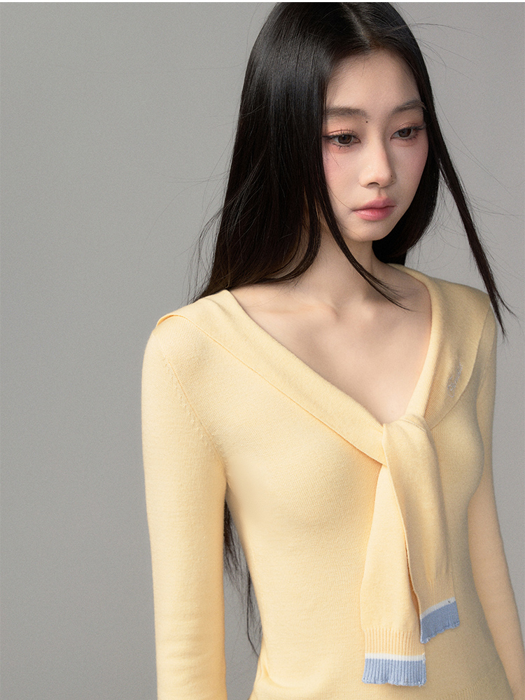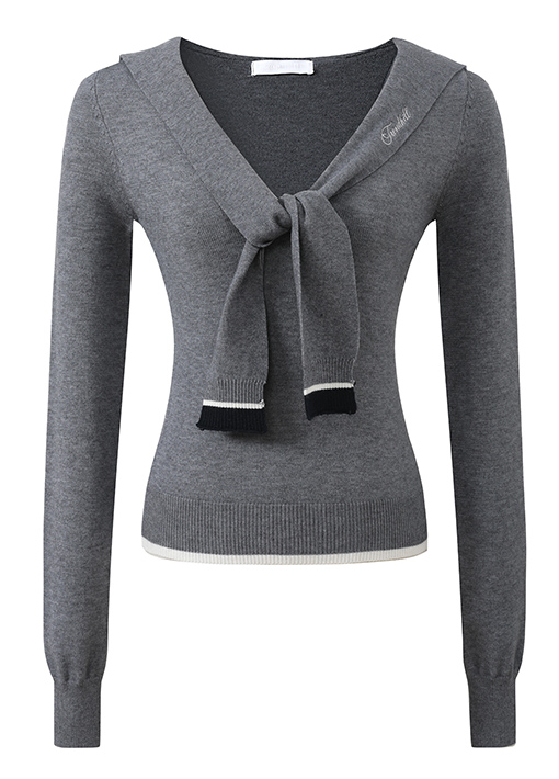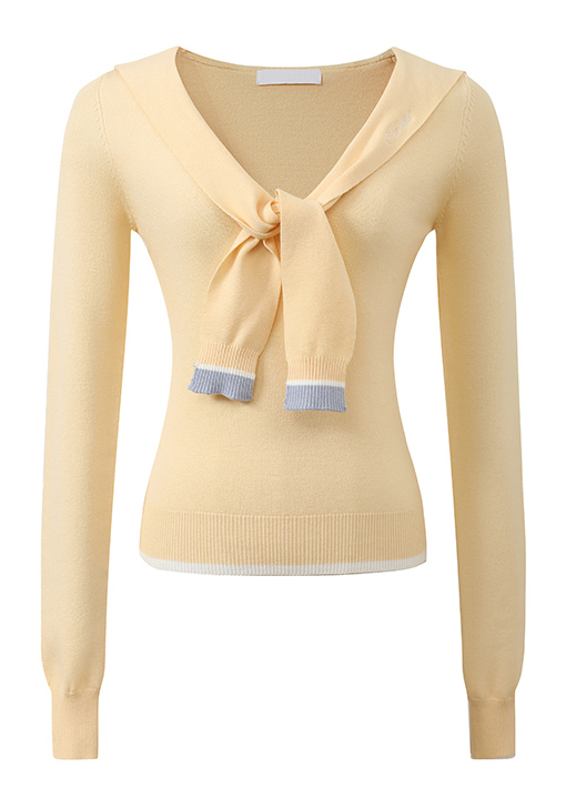 슬림한 실루엣의 세일러 카라 스웨터입니다.