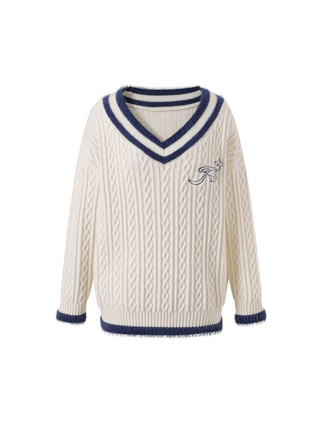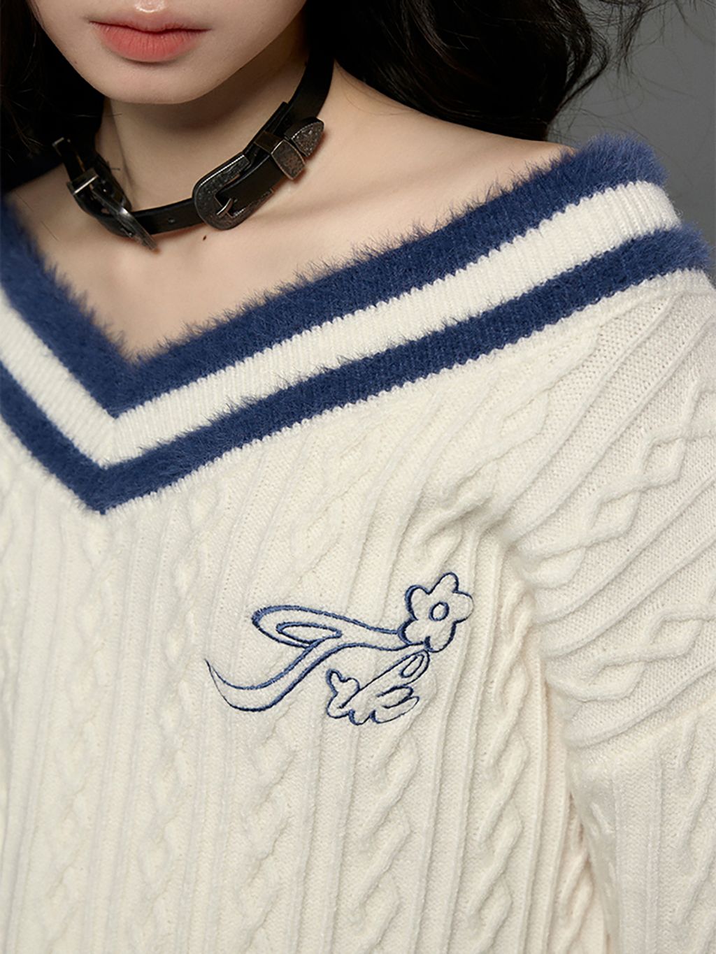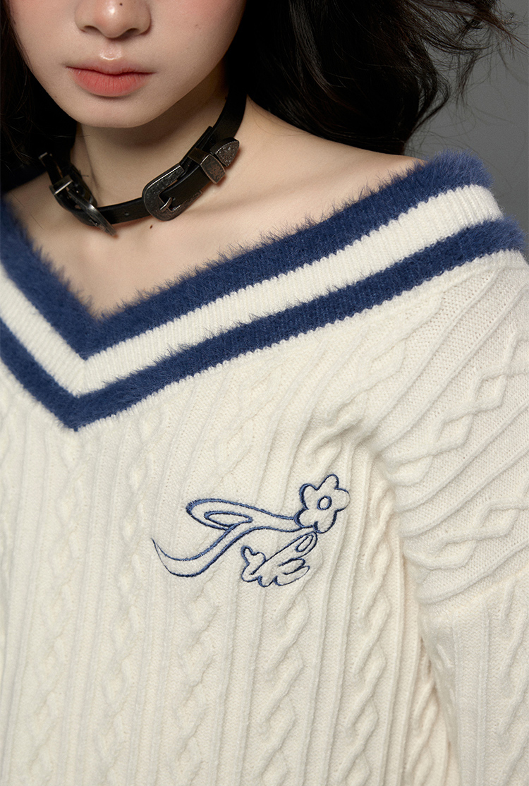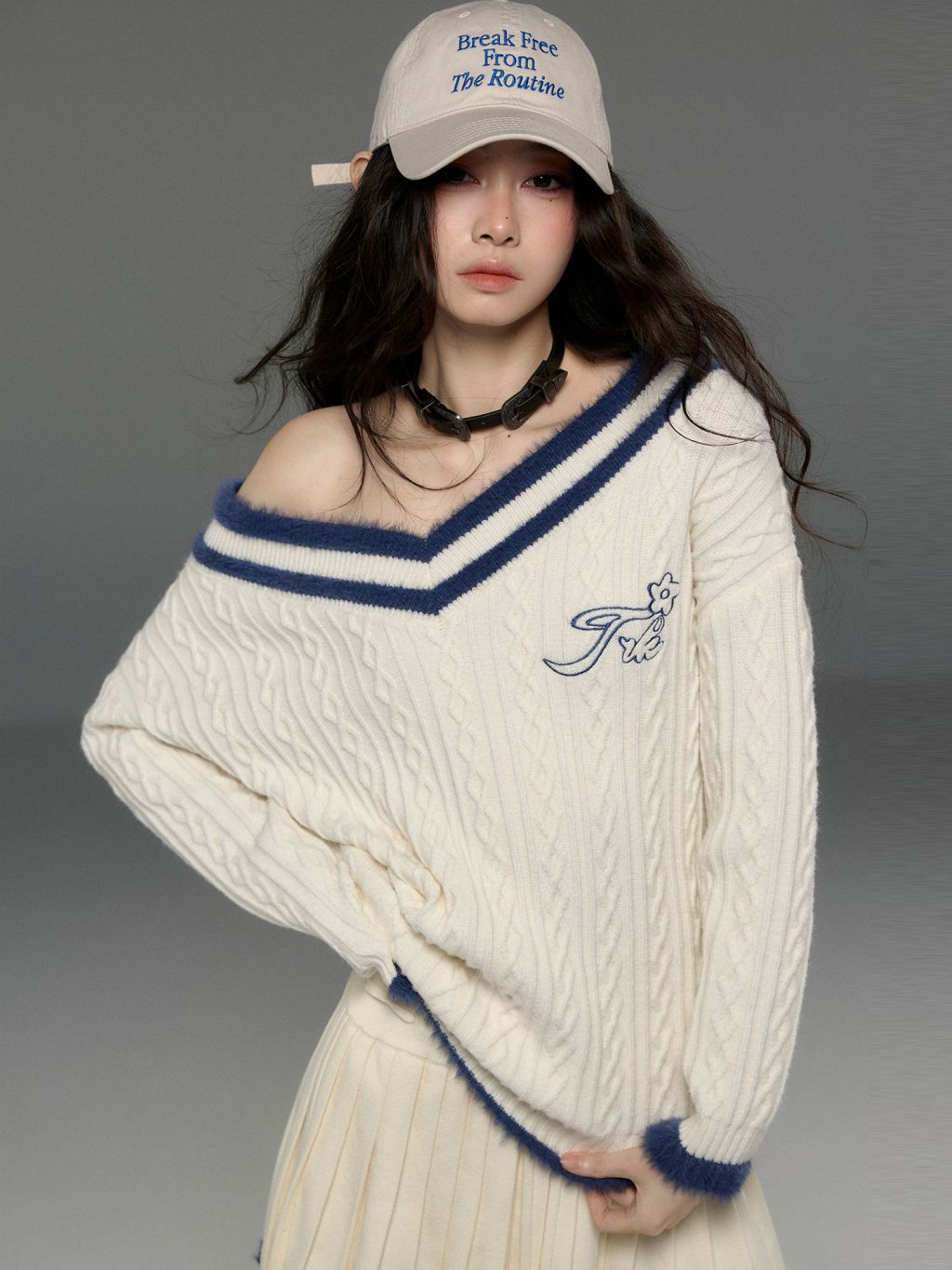 브이넥 니트&플리츠 스커트 셋업입니다.