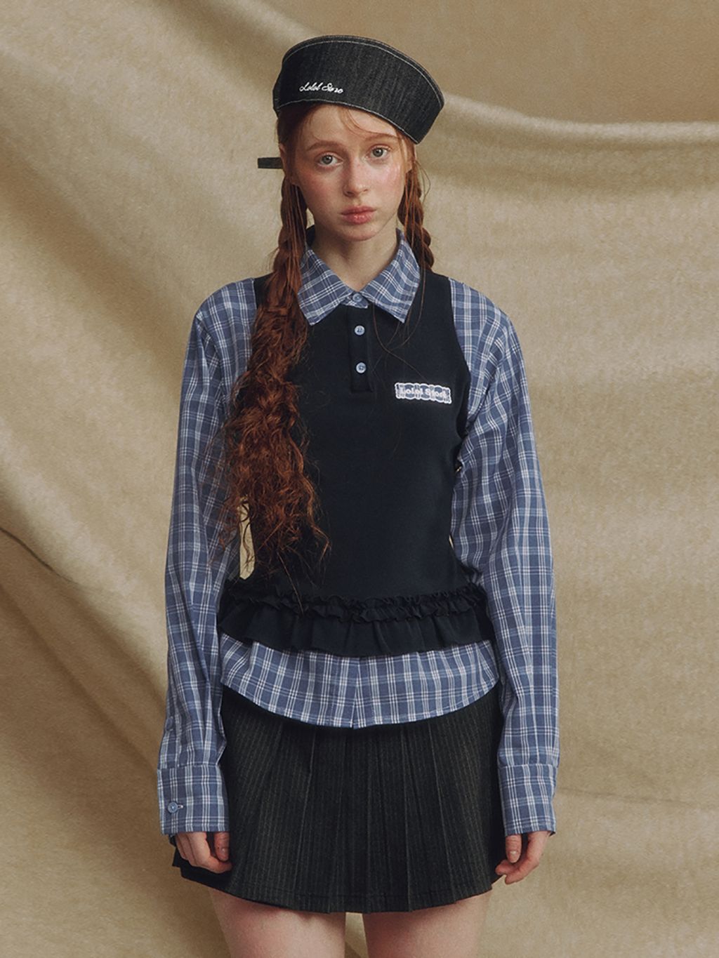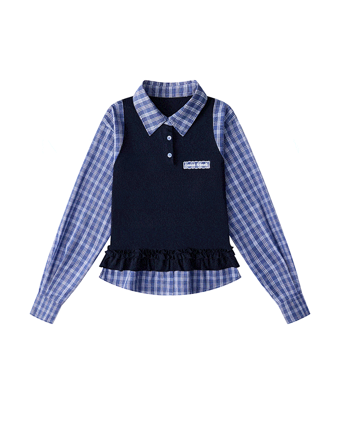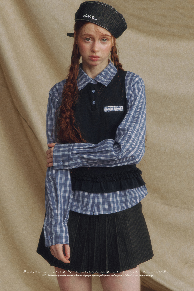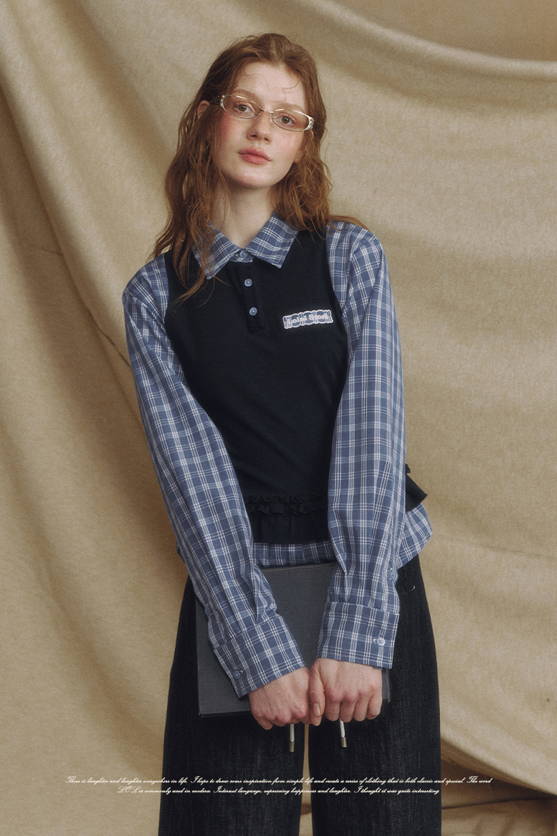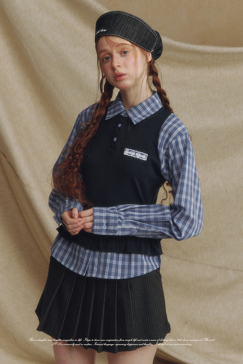 클래식한 체크 패턴의 페이크 투피스 체크 셔츠&베스트입니다.