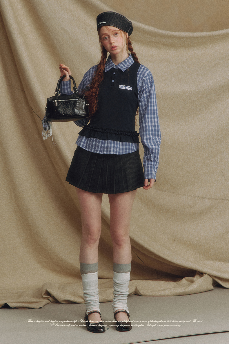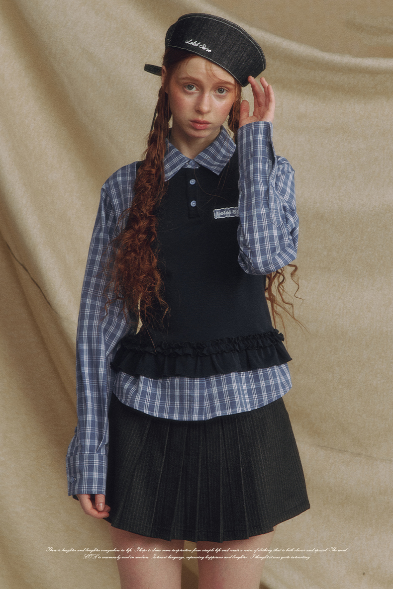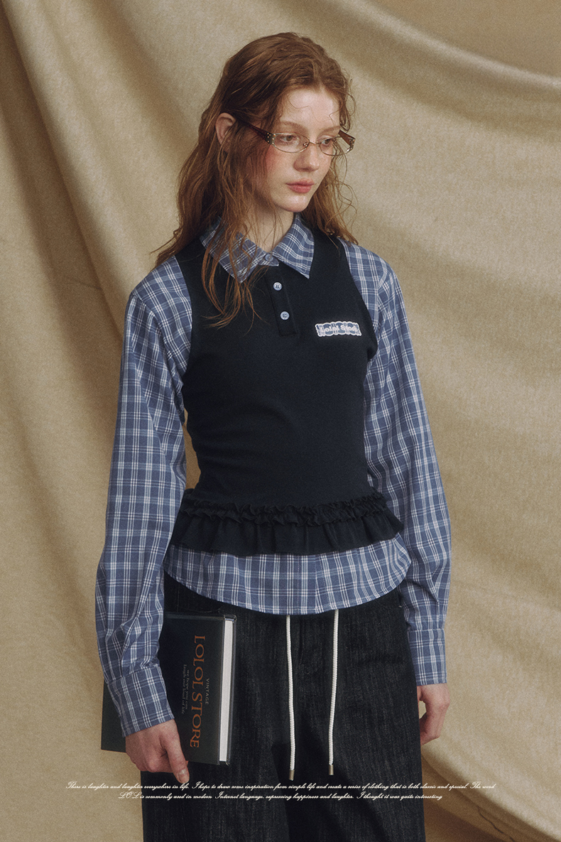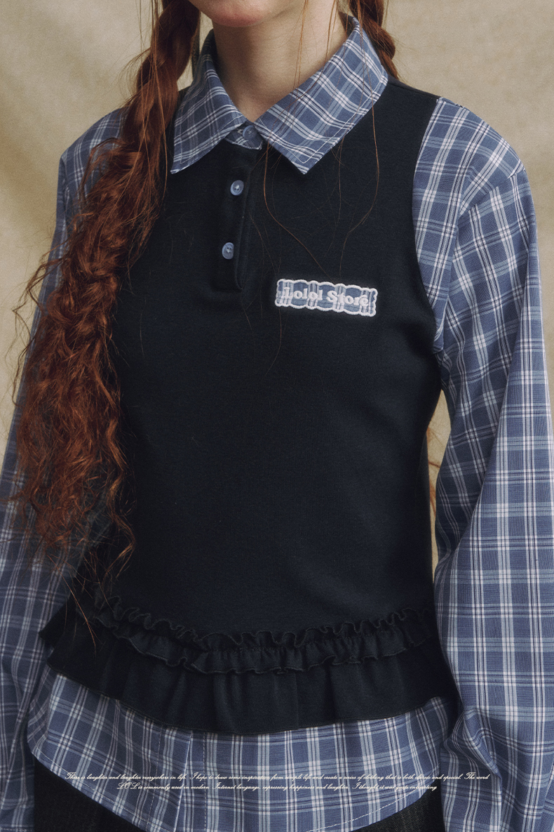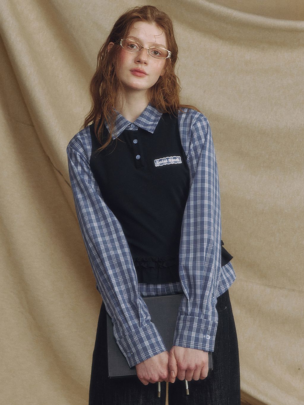 클래식한 체크 패턴의 페이크 투피스 체크 셔츠&베스트입니다.