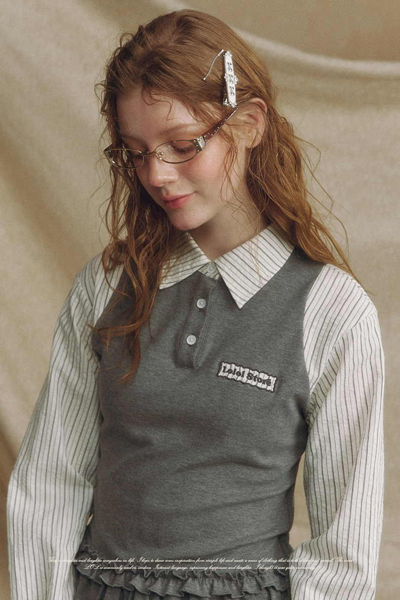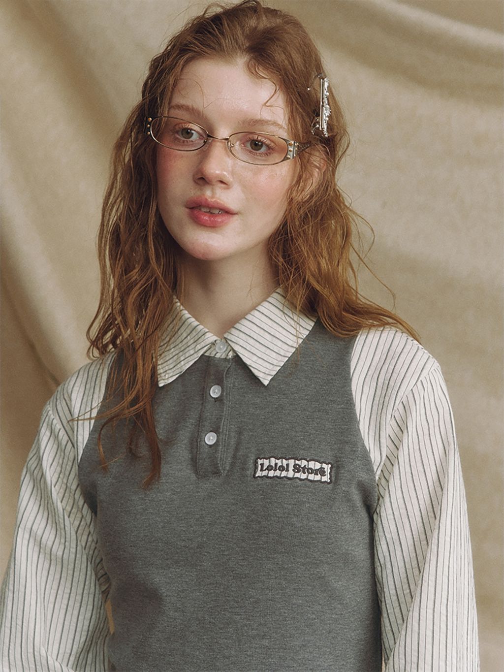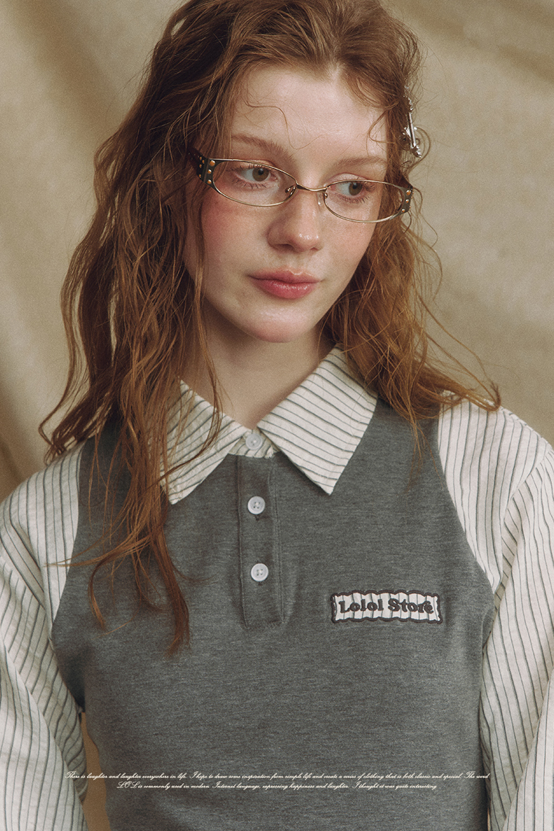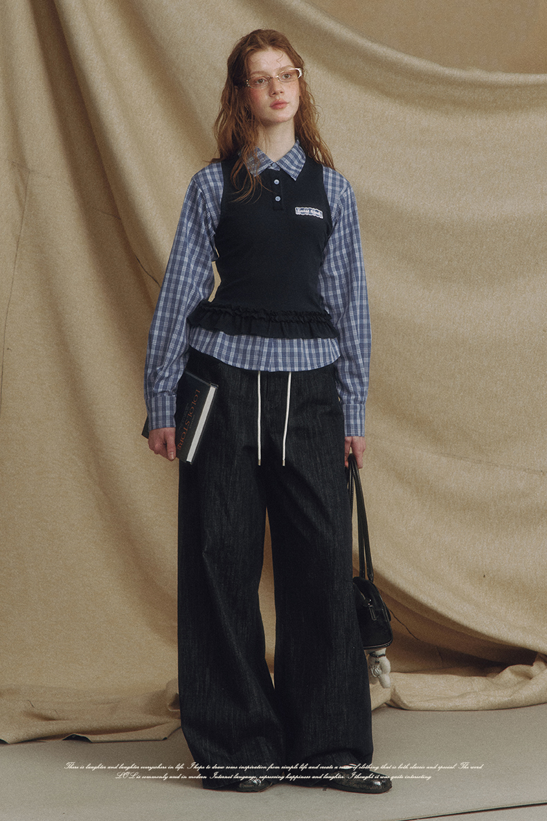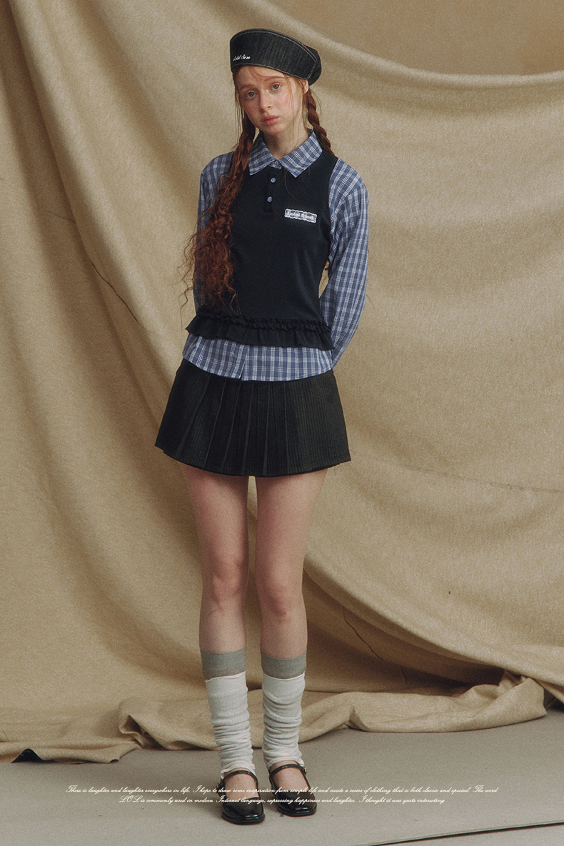 클래식한 체크 패턴의 페이크 투피스 체크 셔츠&베스트입니다.