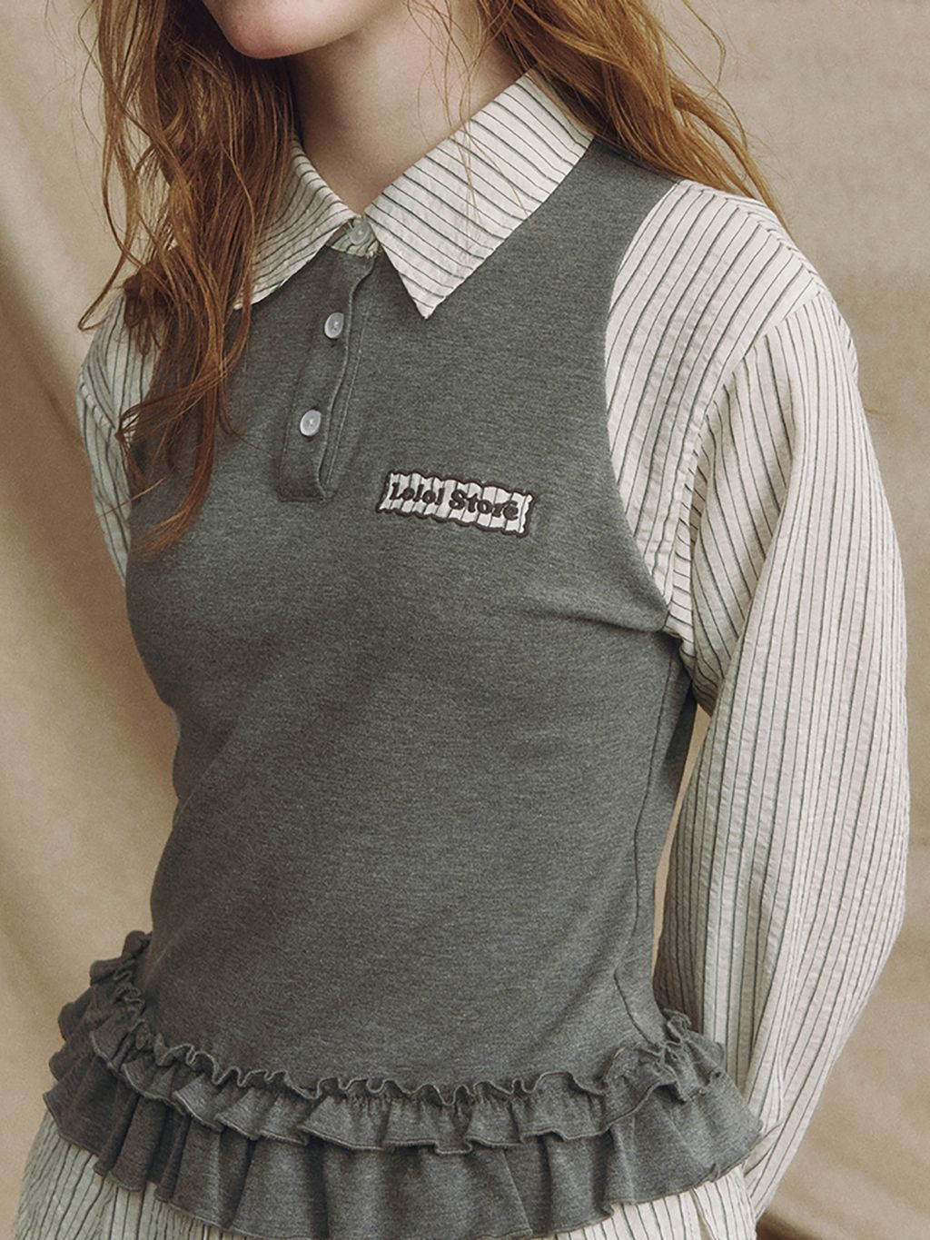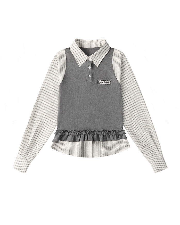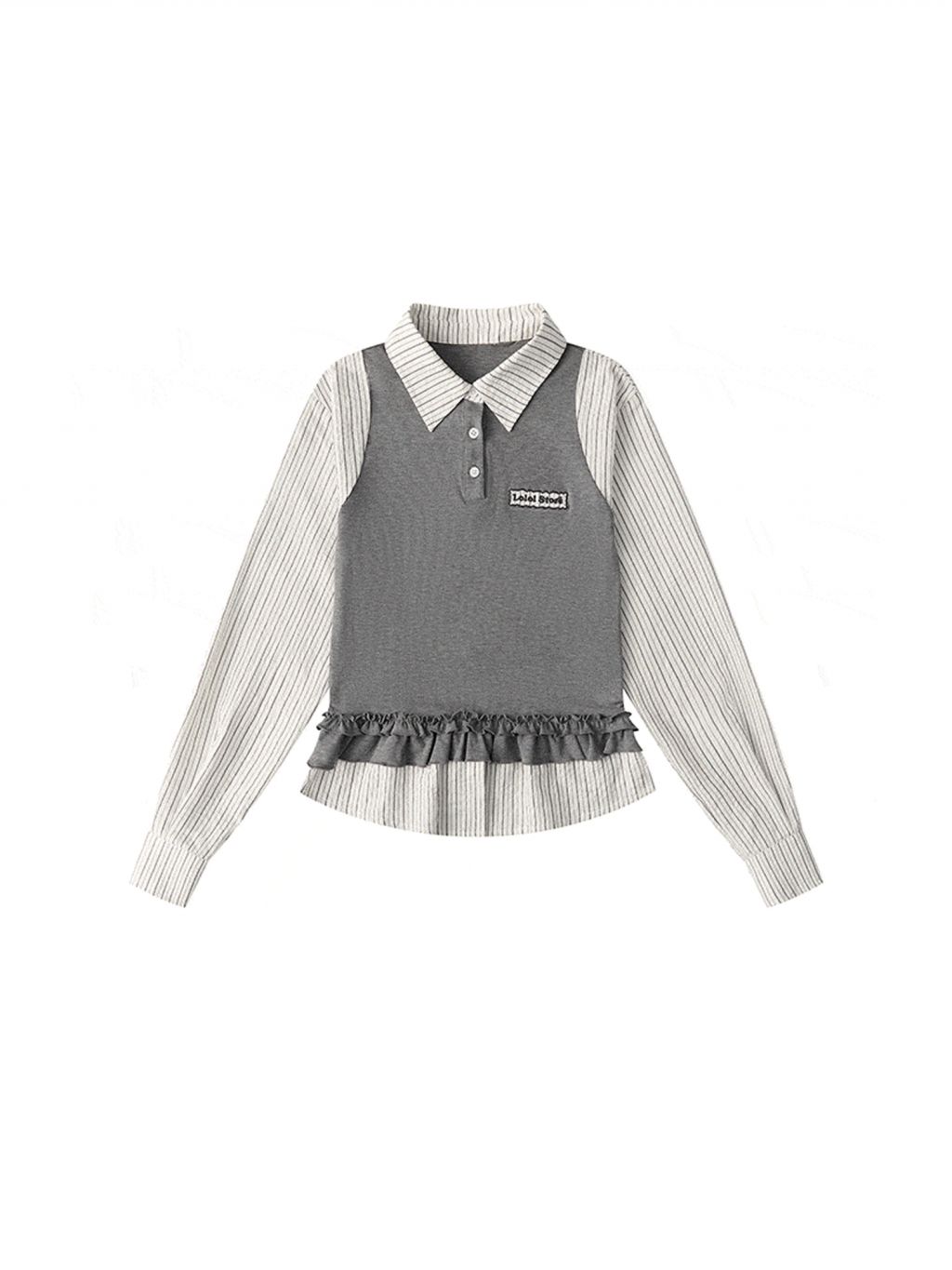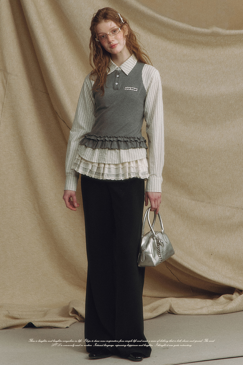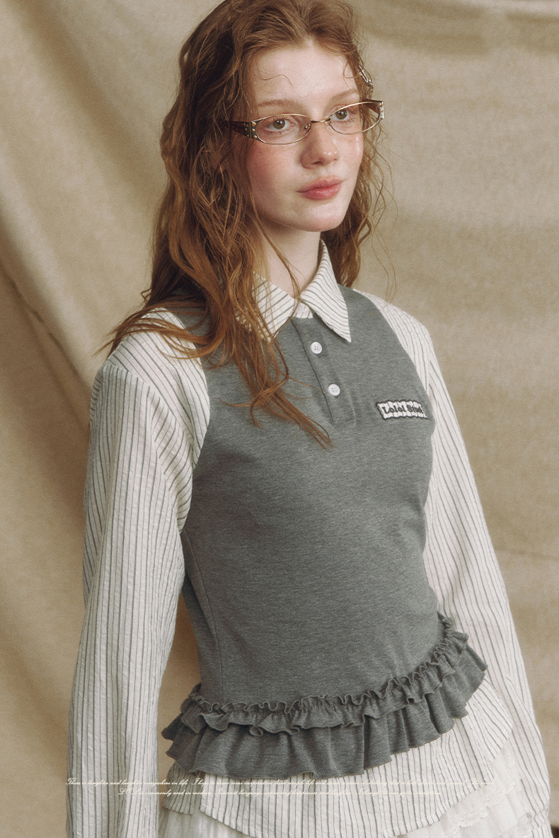 클래식한 체크 패턴의 페이크 투피스 체크 셔츠&베스트입니다.