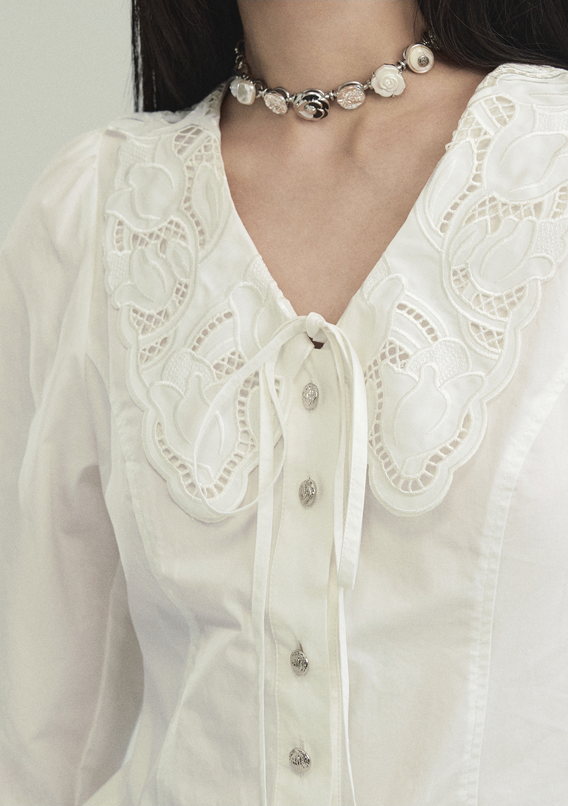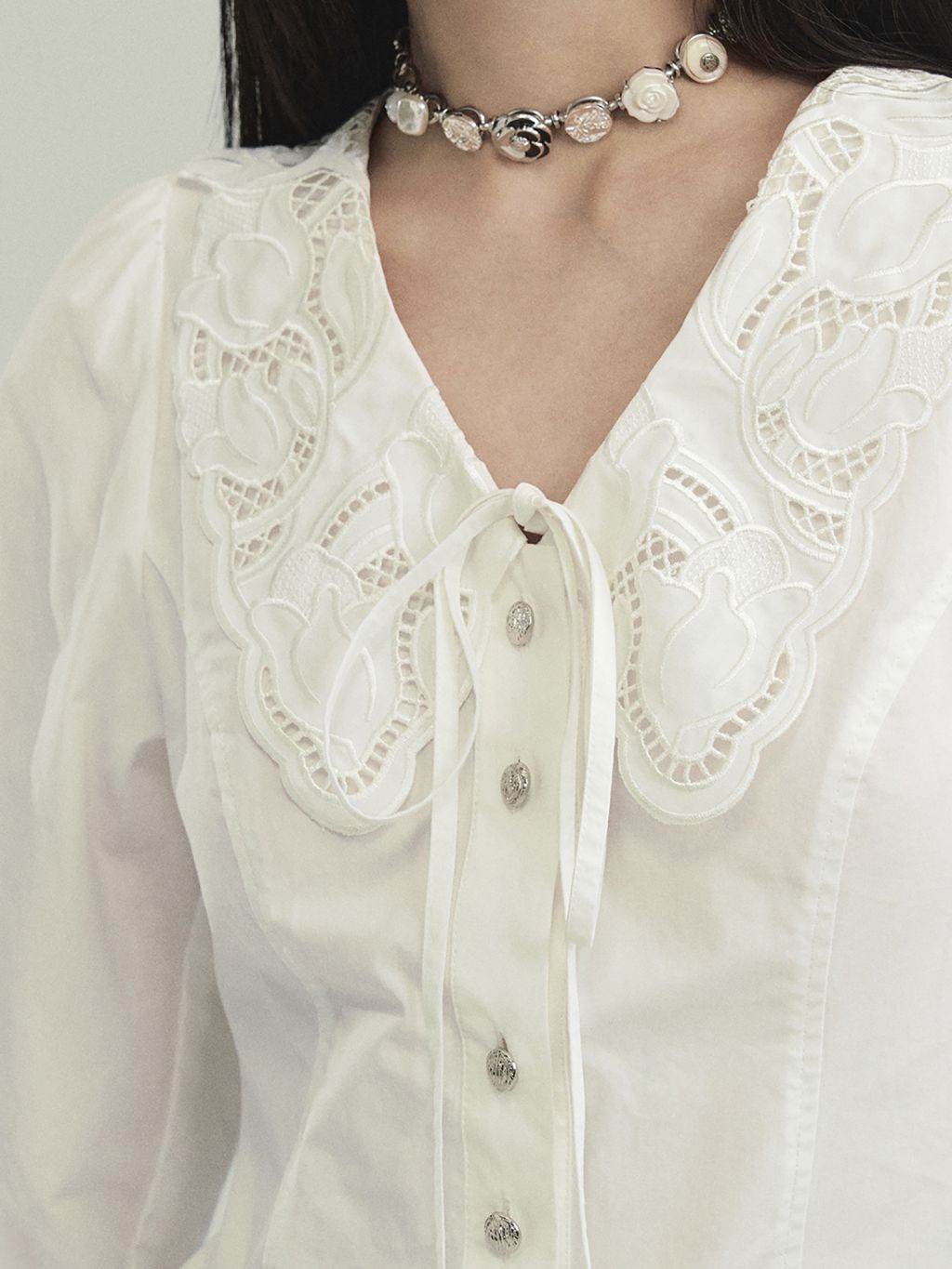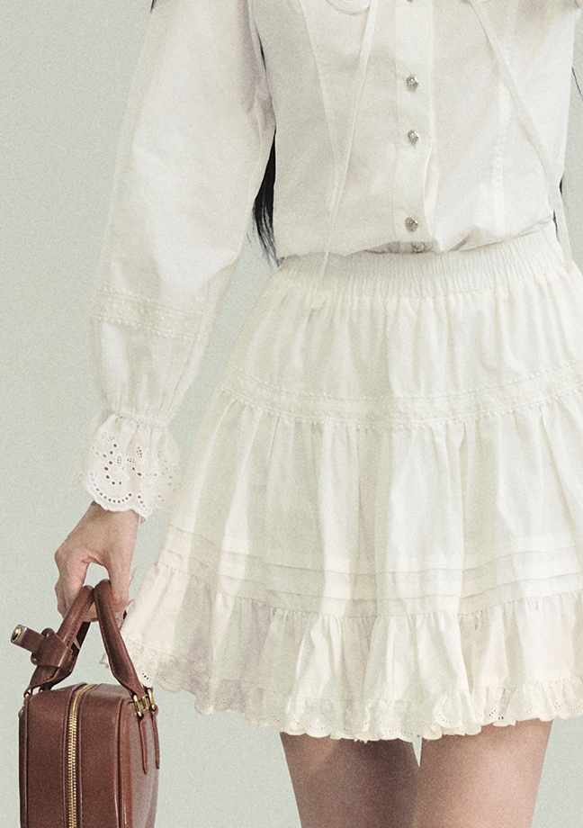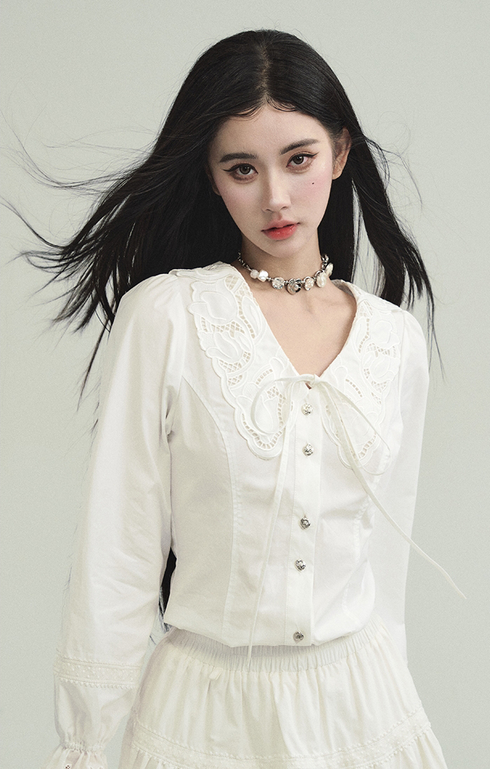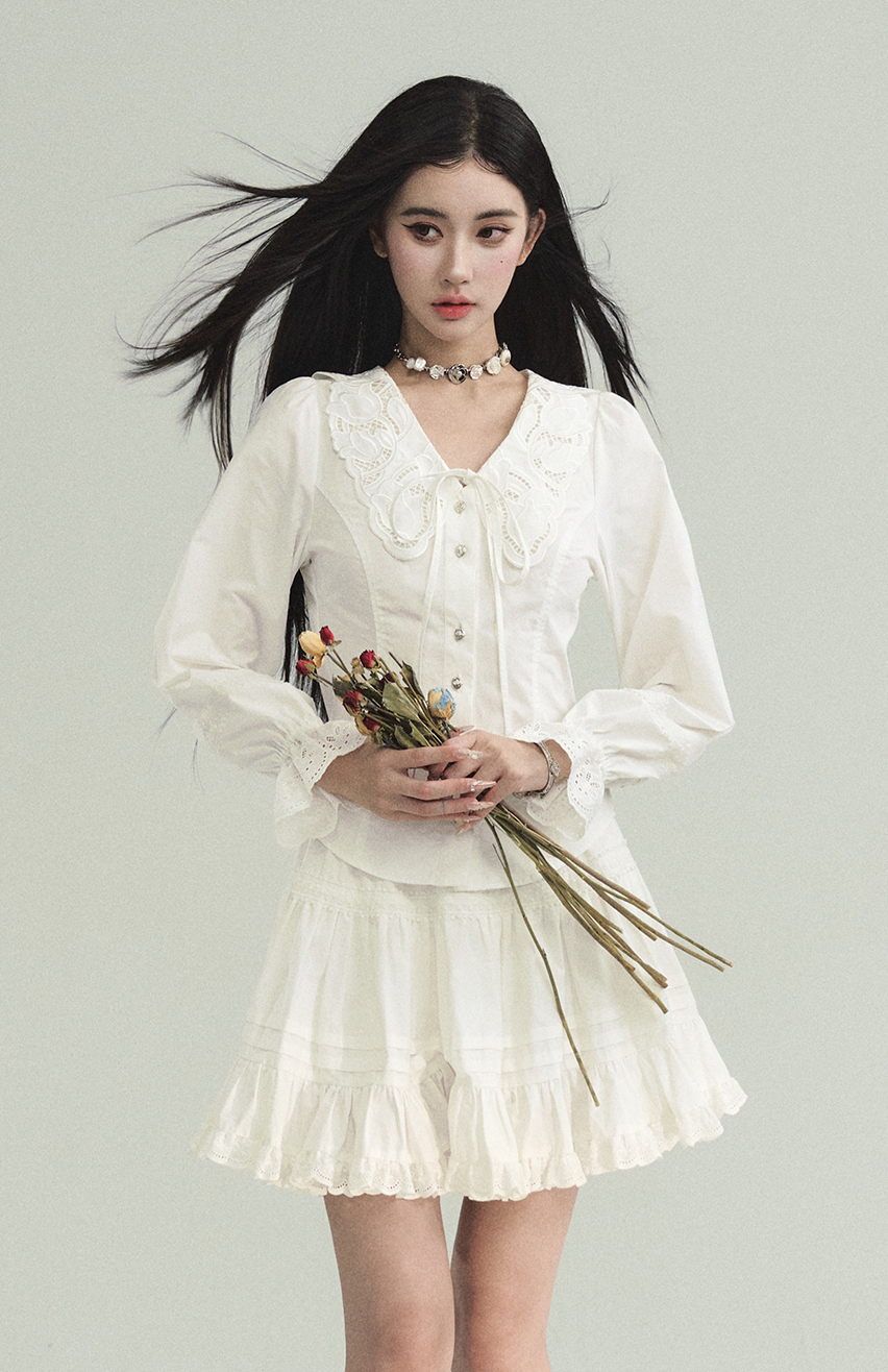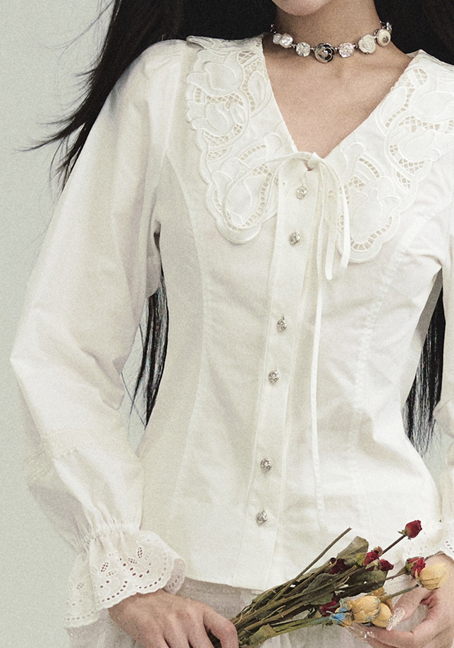 Cream Lace Punching Blouse
