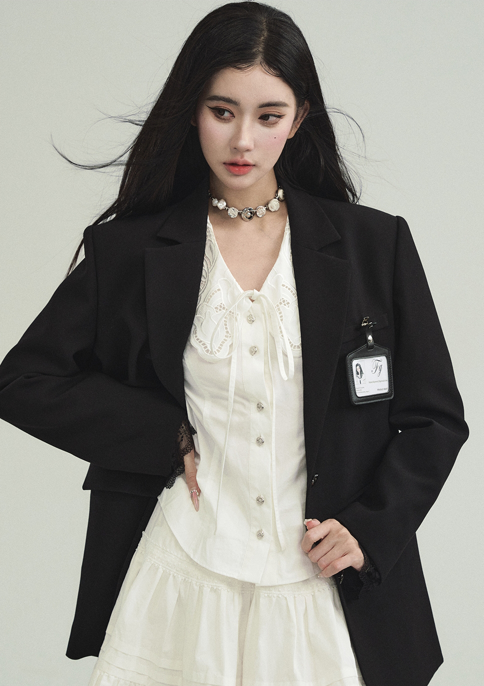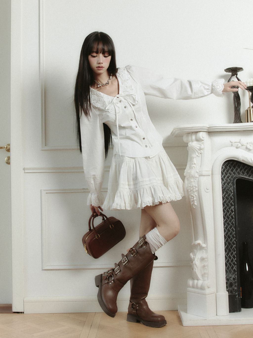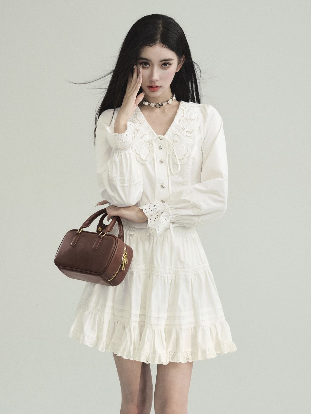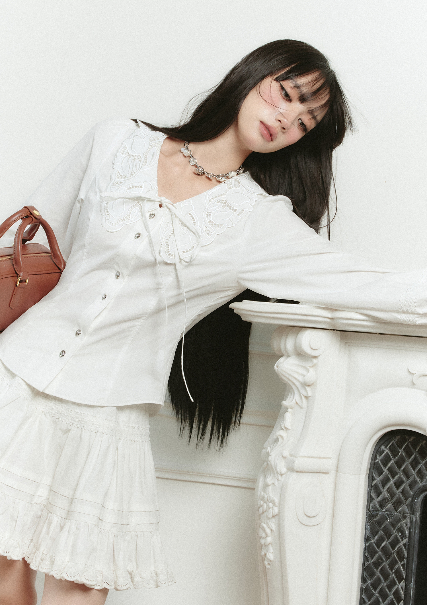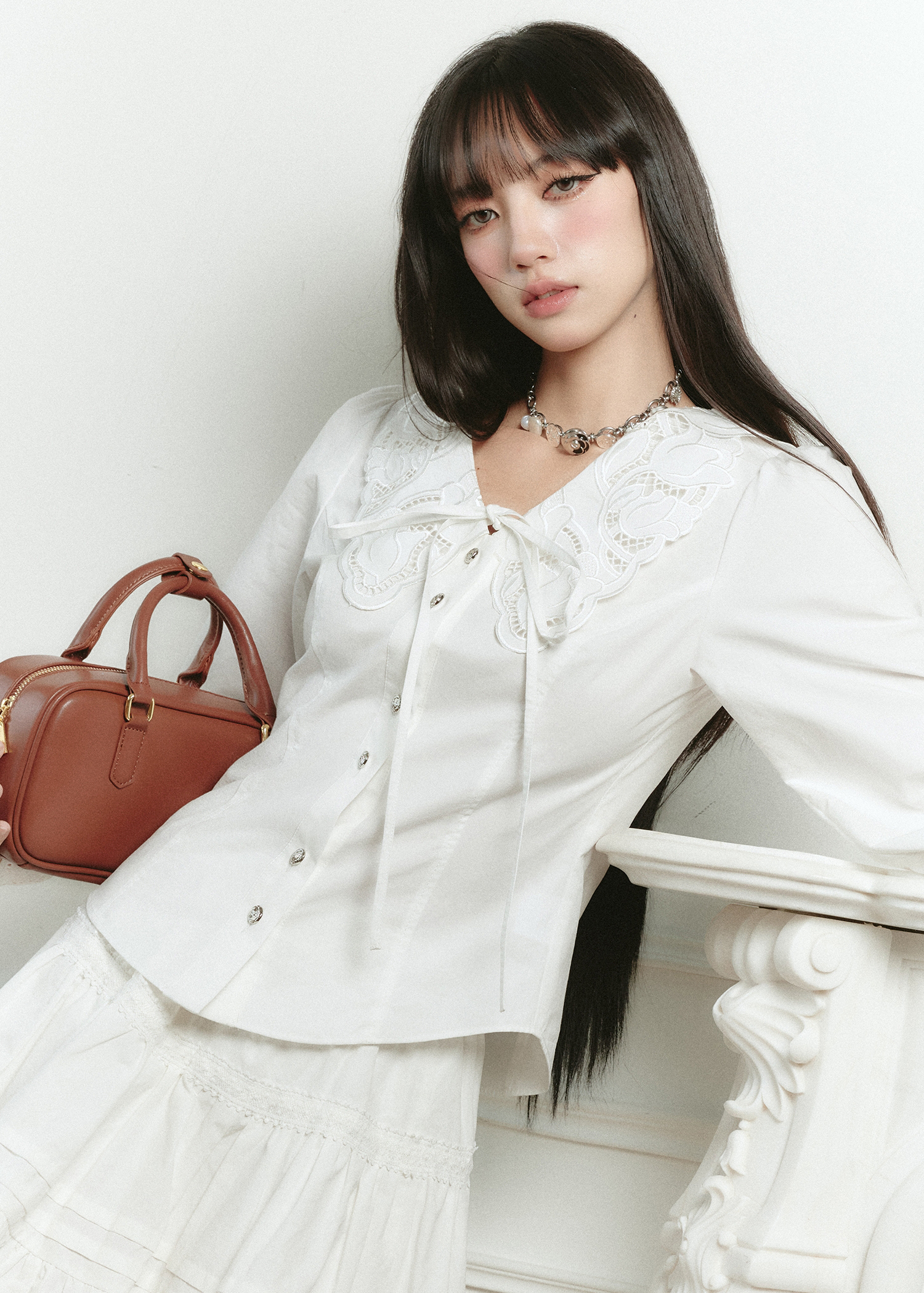 Cream Lace Punching Blouse
