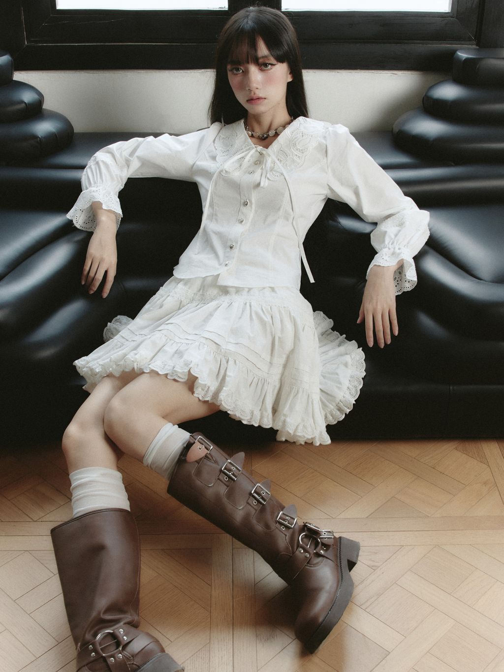 코지하게 입기 좋은 레이스 플라워 스웻셔츠입니다.