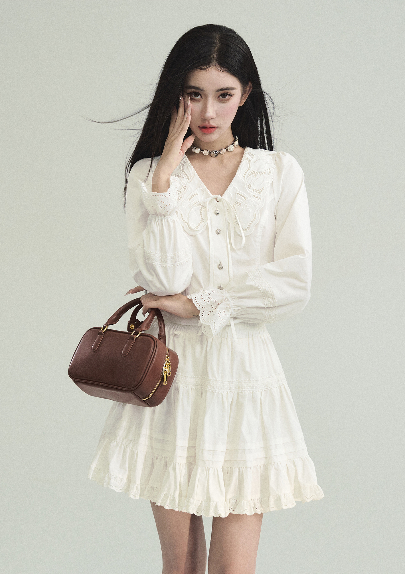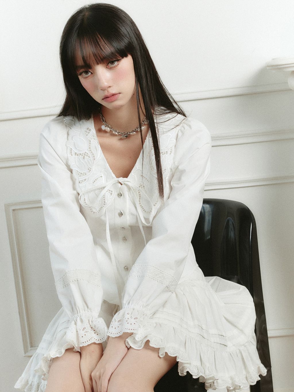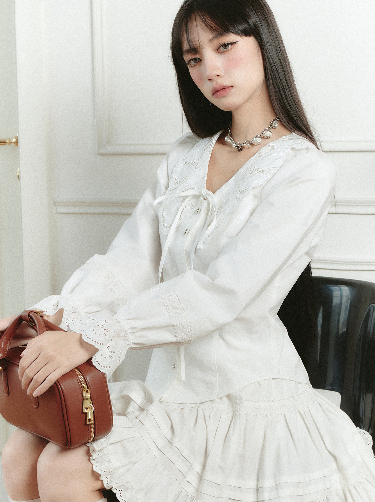 - 풍성한 소매 프릴 디테일