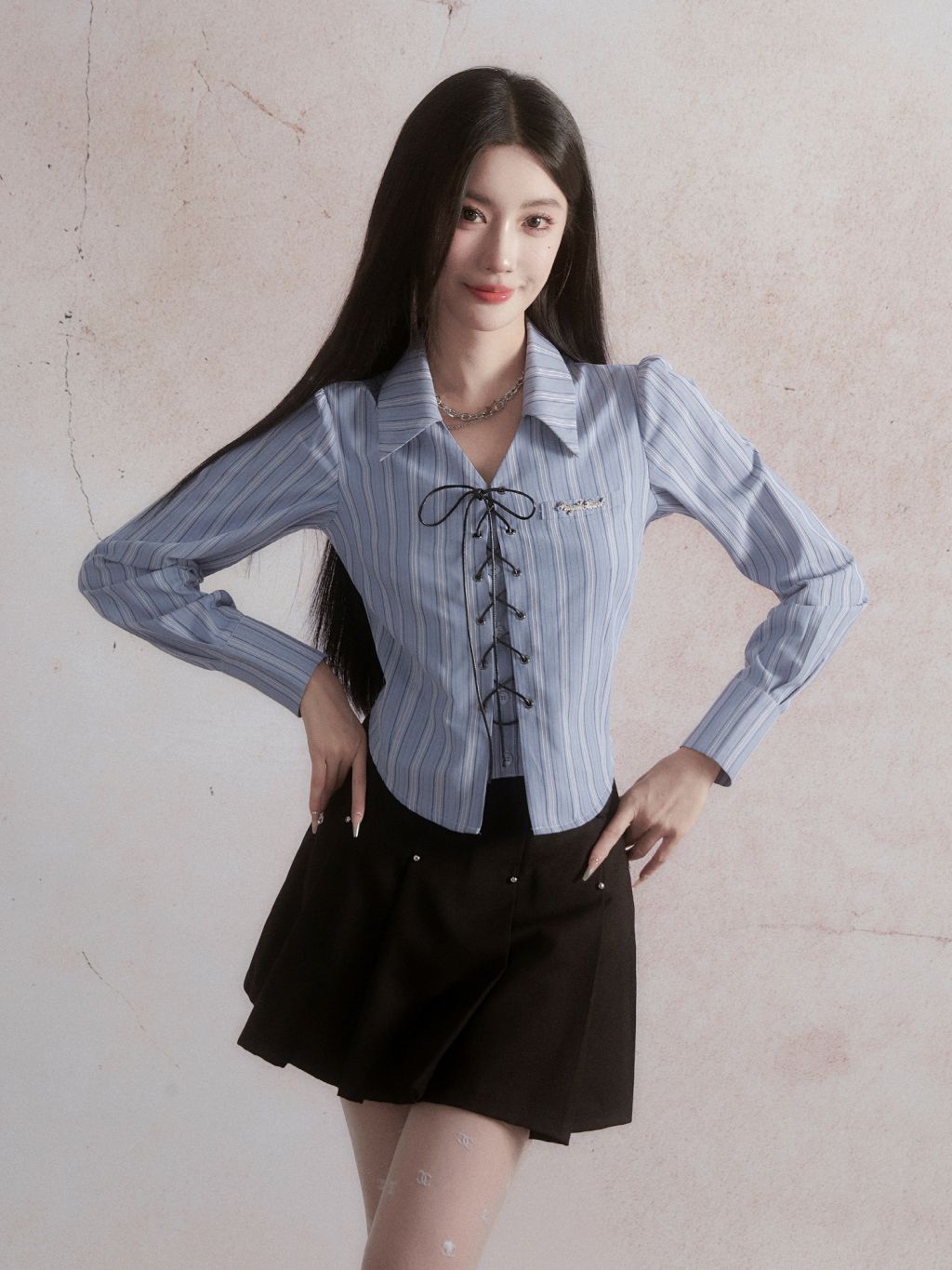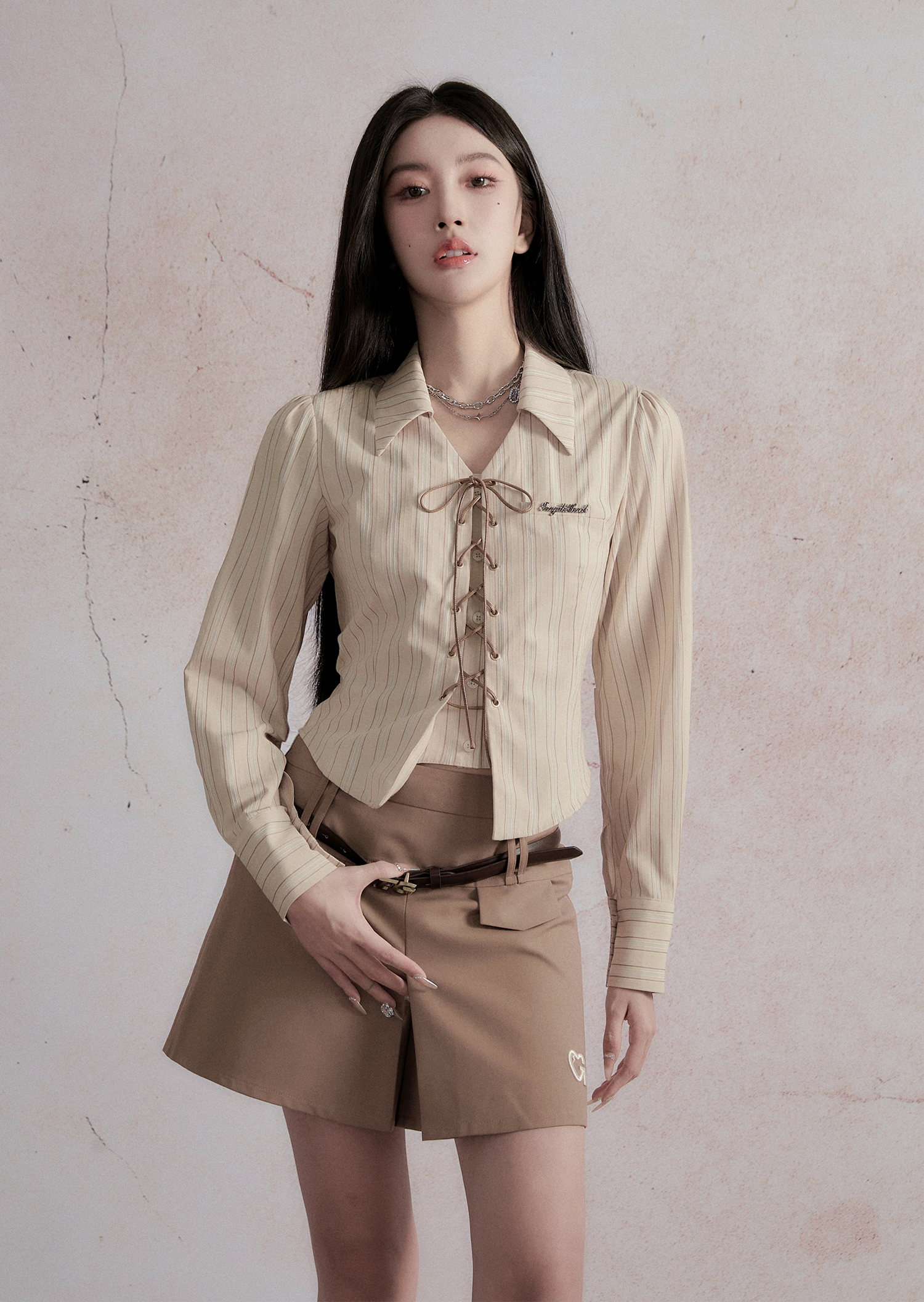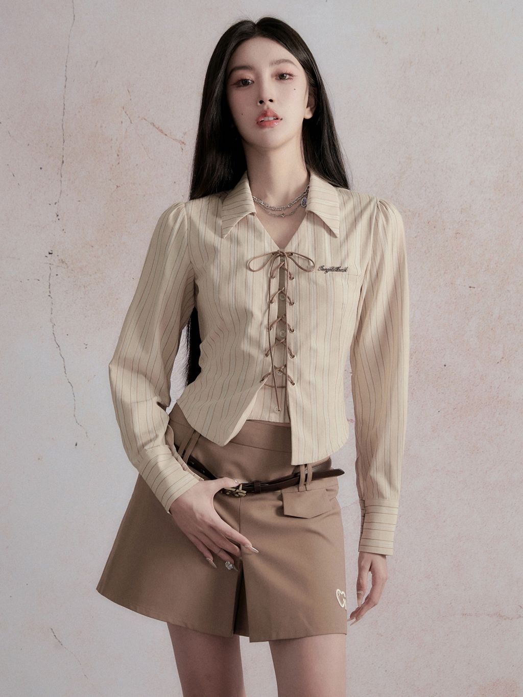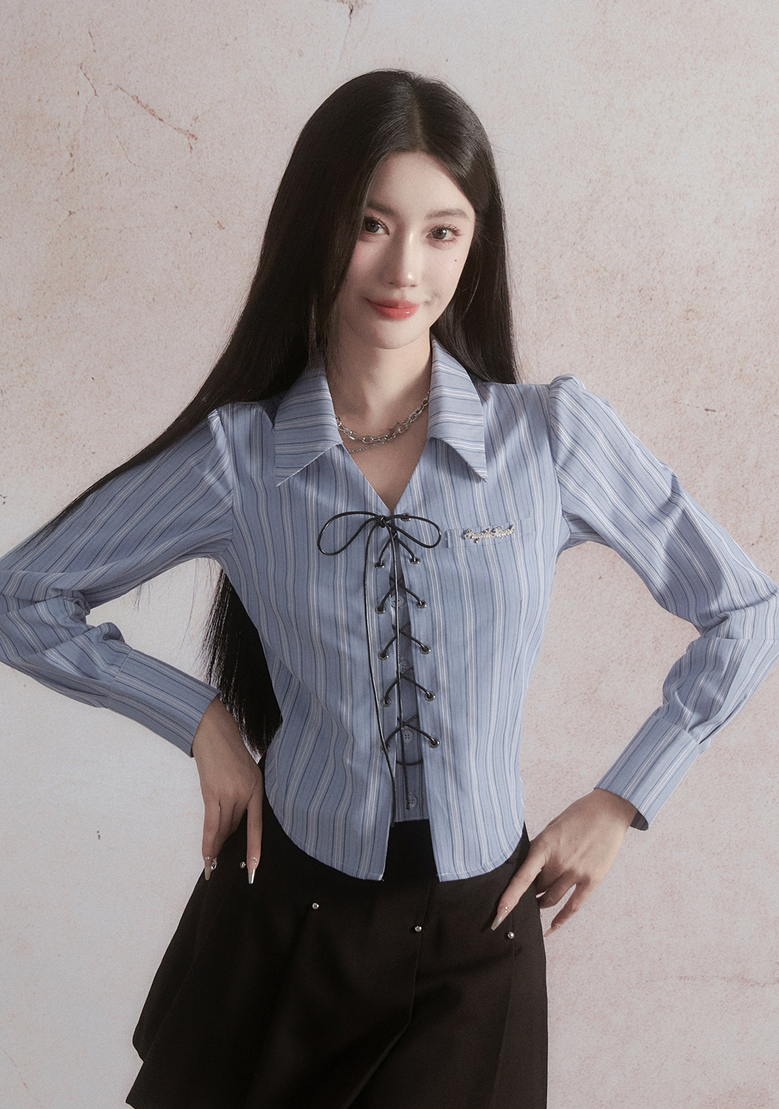 Vertical Stripe Lace-up Shirt