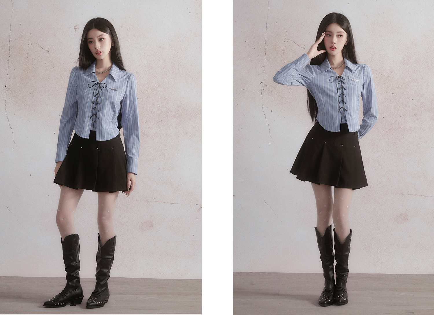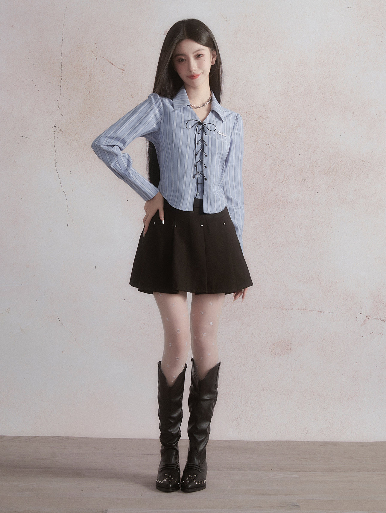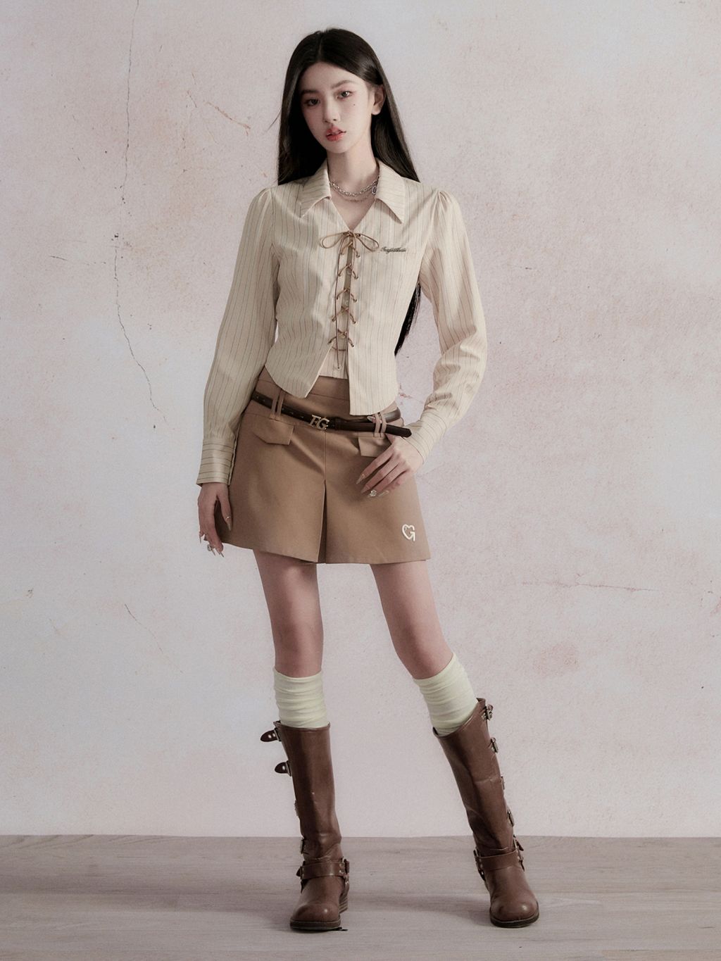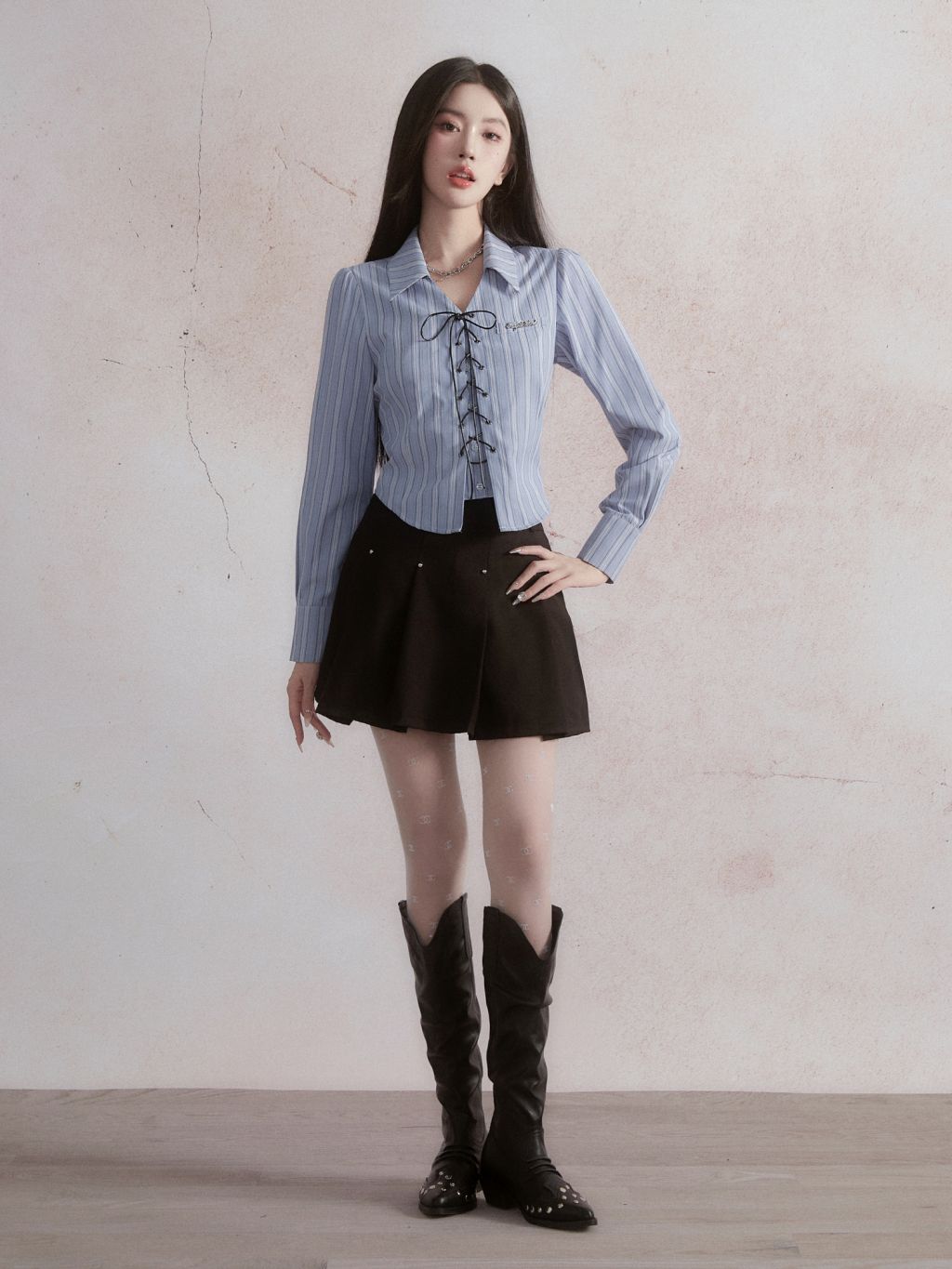 Vertical Stripe Lace-up Shirt