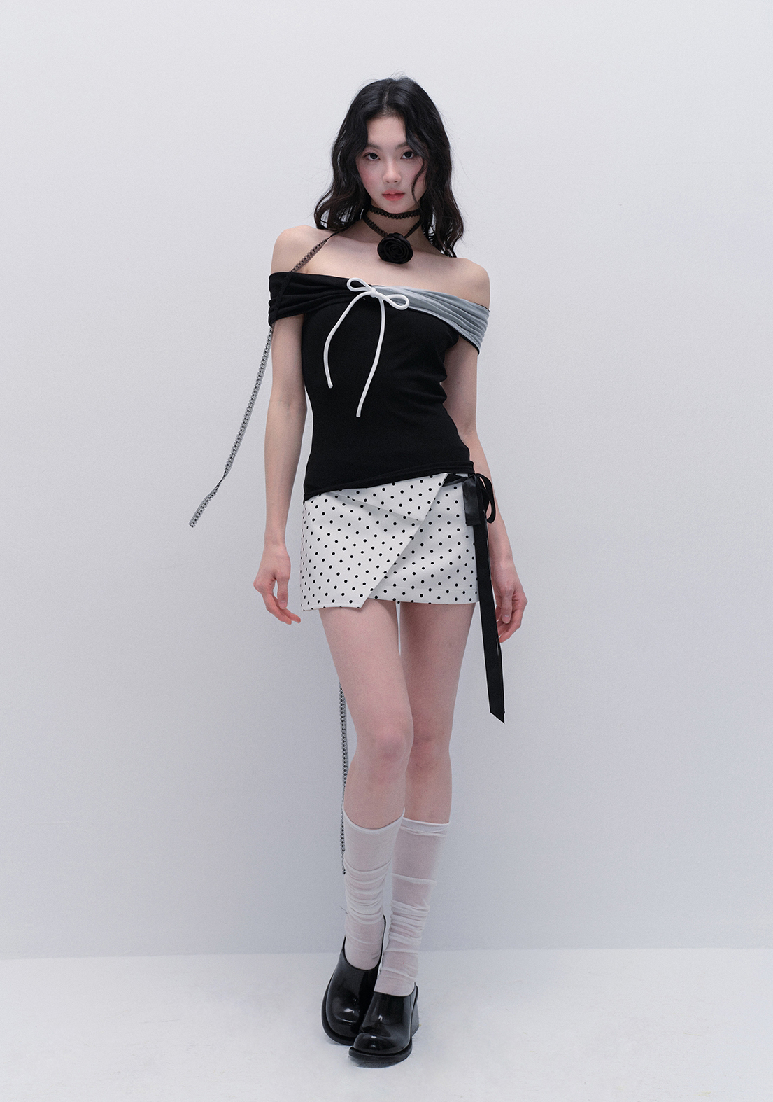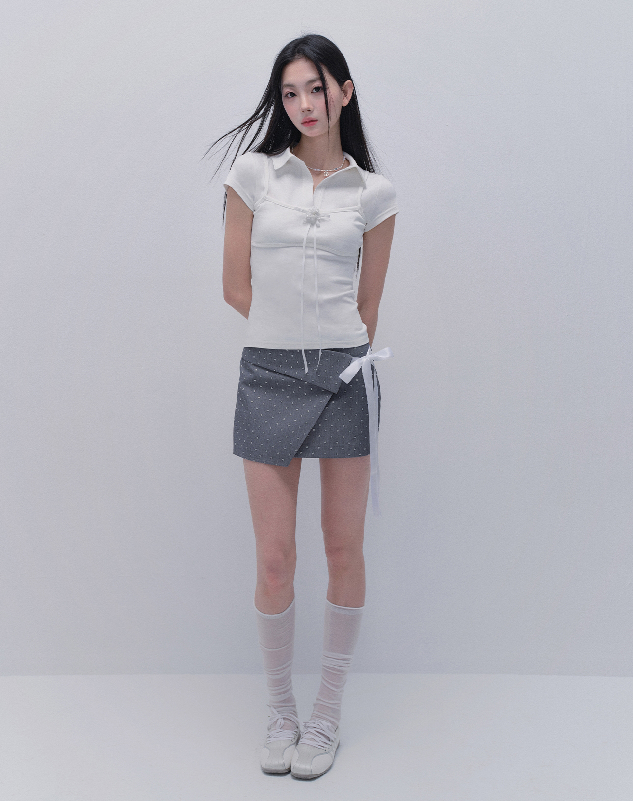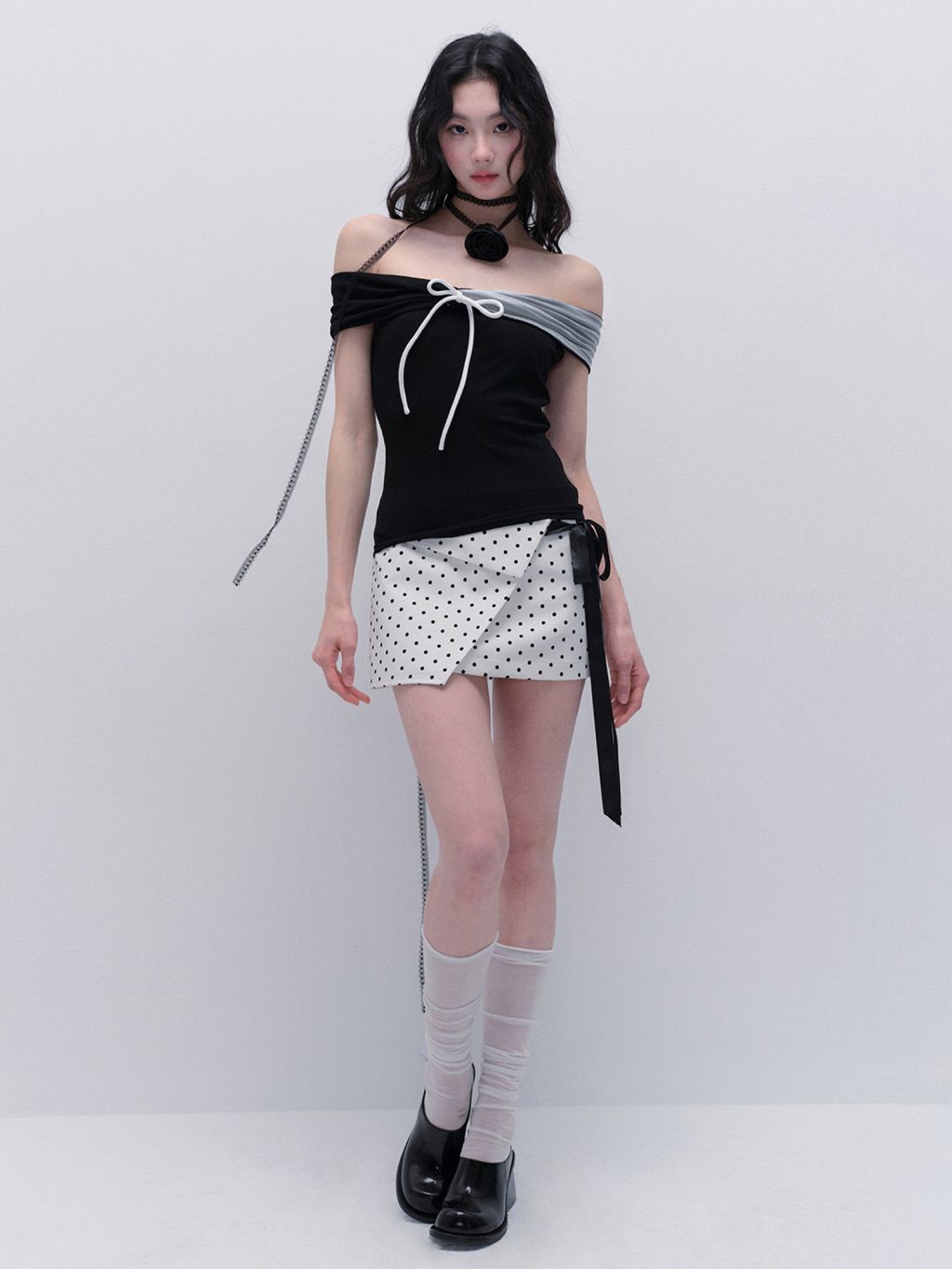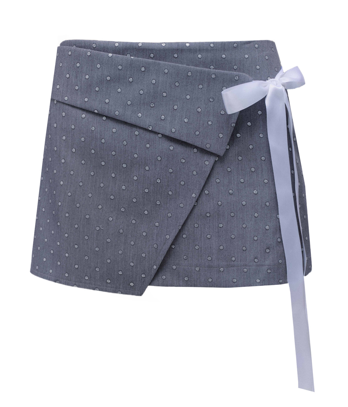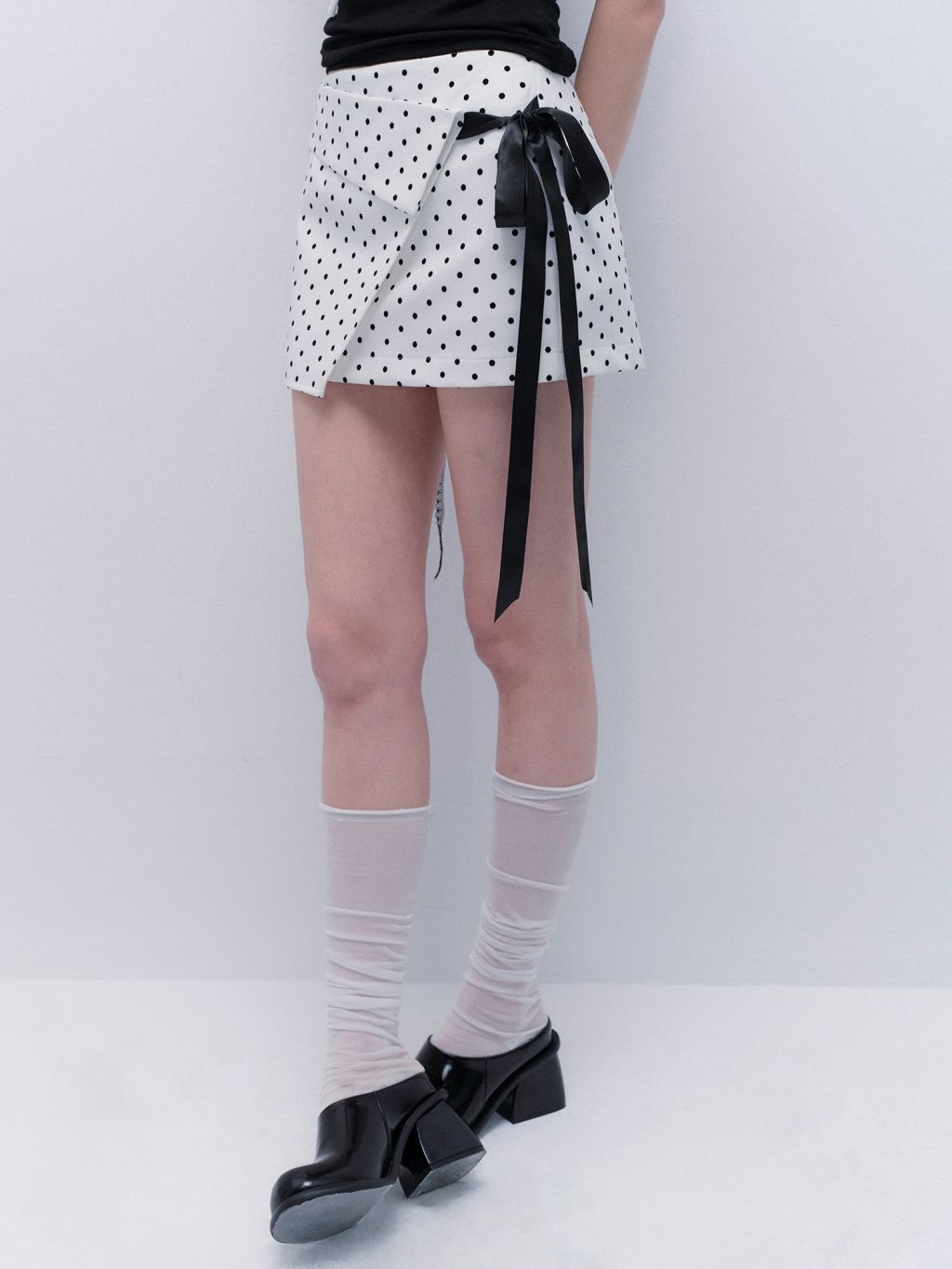 도트 패턴이 돋보이는 리본 랩 스커트입니다.