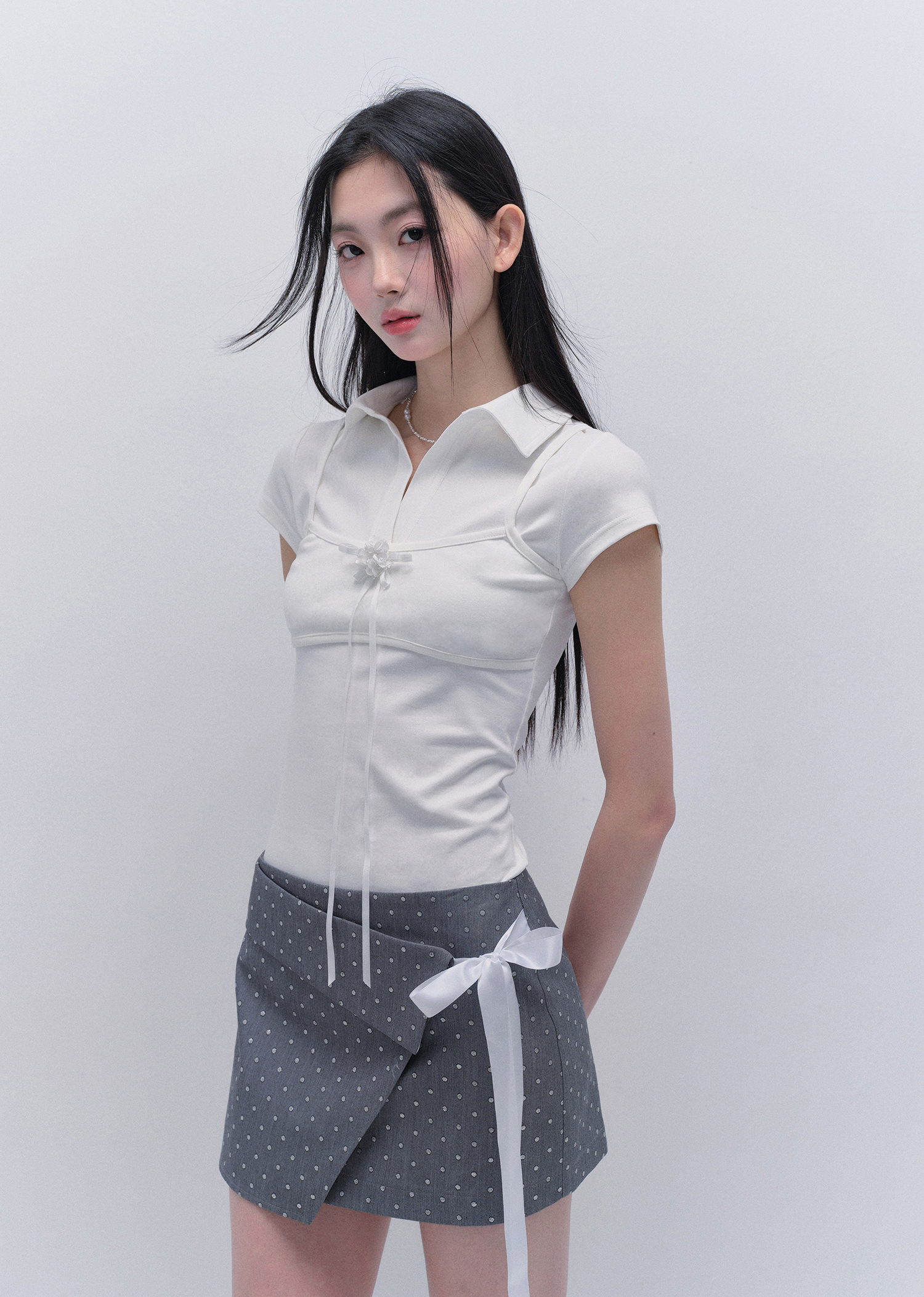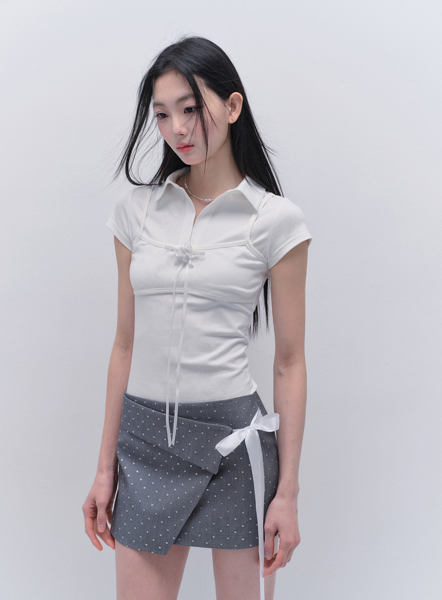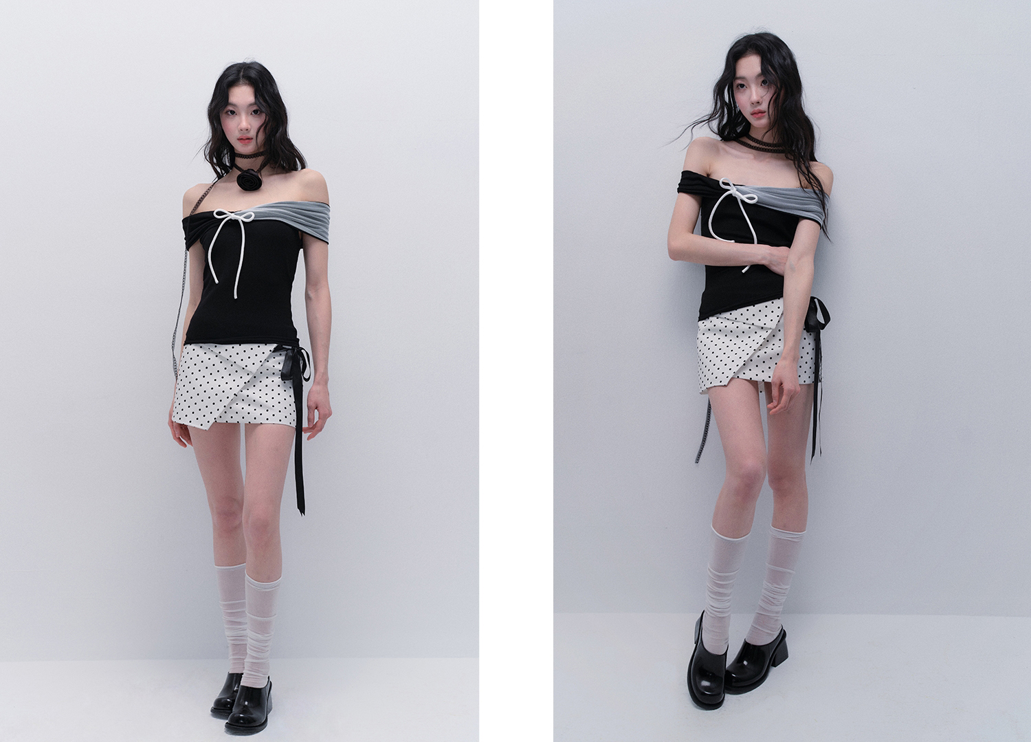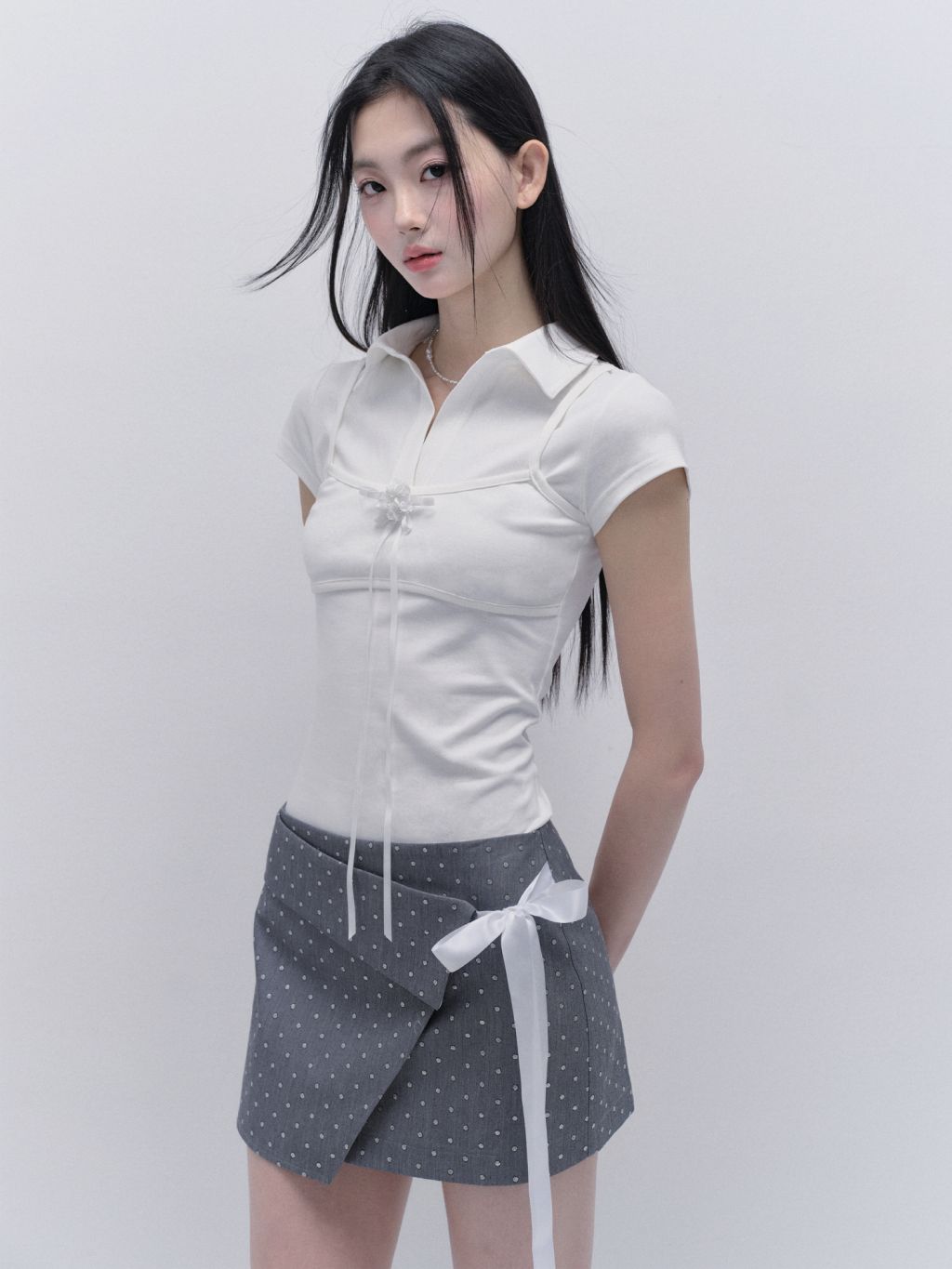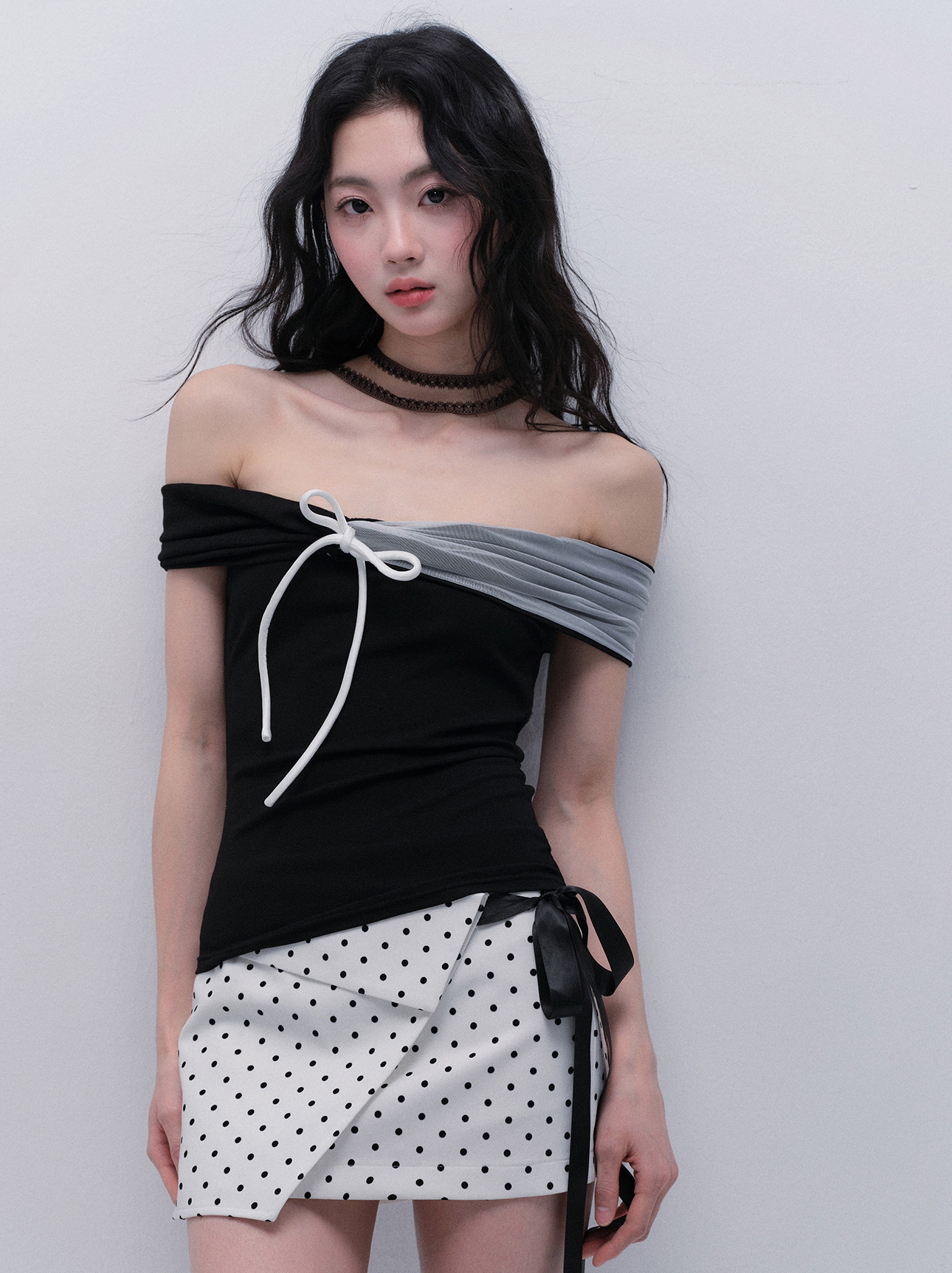 도트 패턴이 돋보이는 리본 랩 스커트입니다.