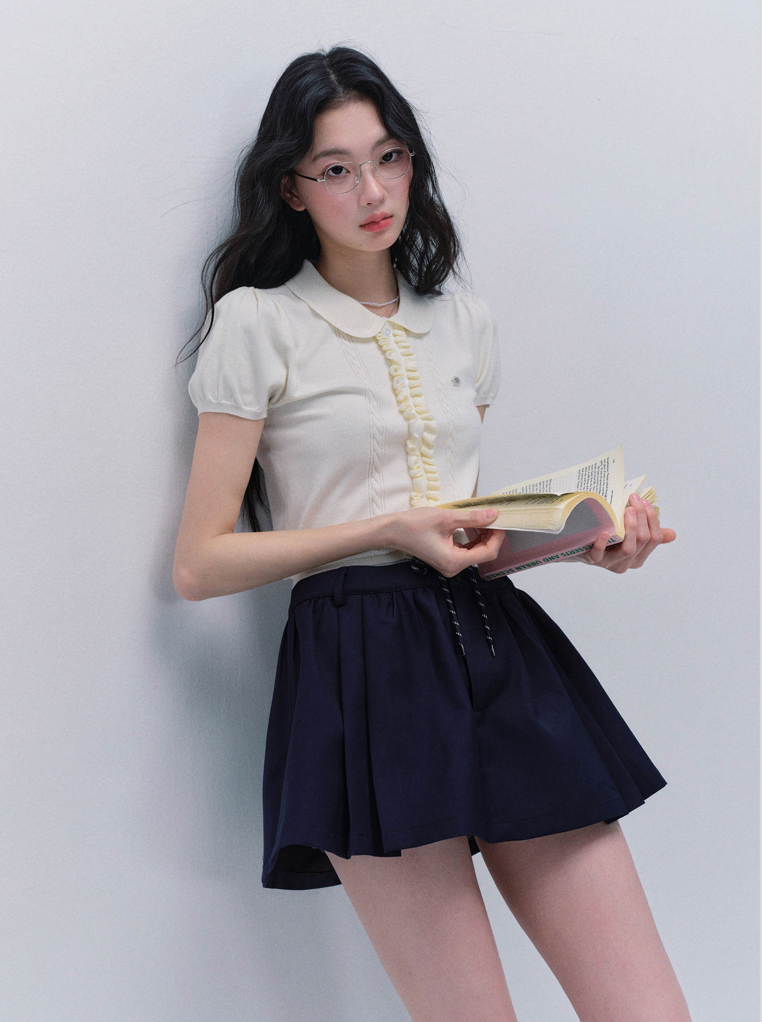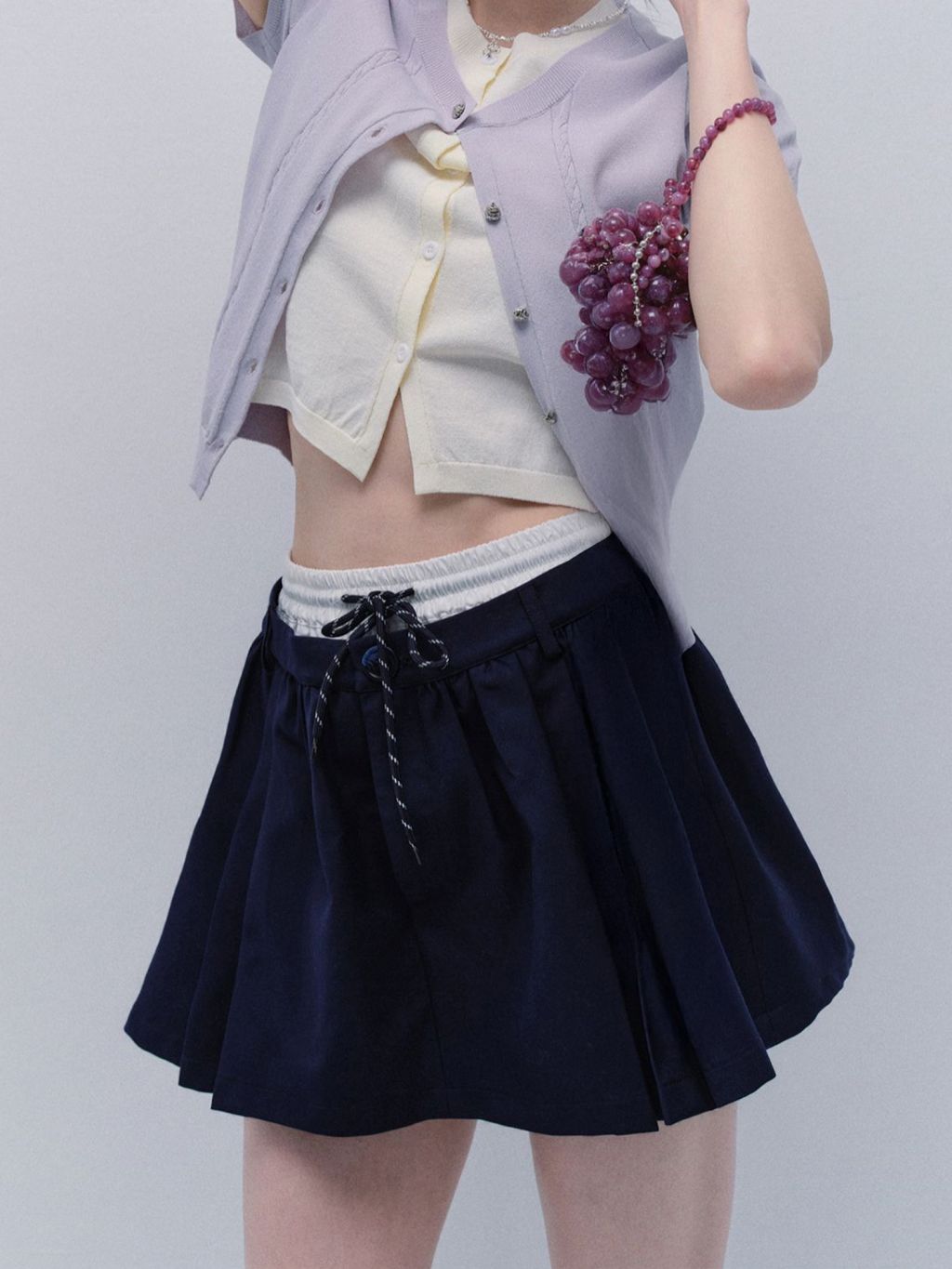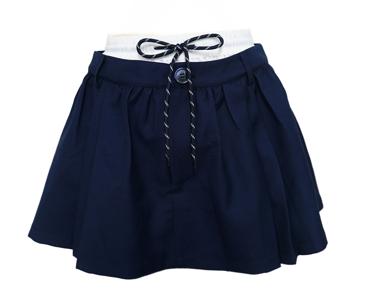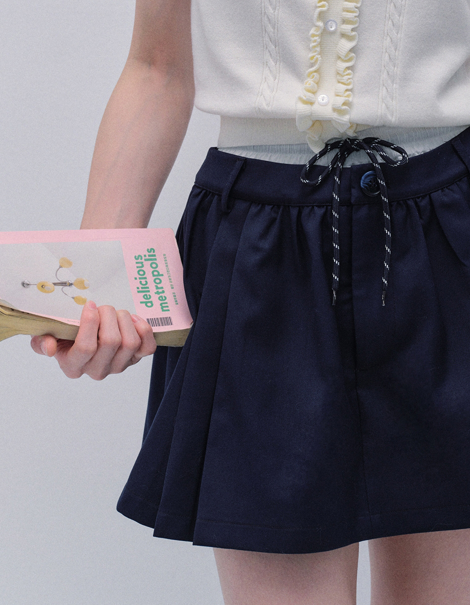 캐주얼한 무드의 더블 웨이스트 플리츠 스커트 팬츠입니다.