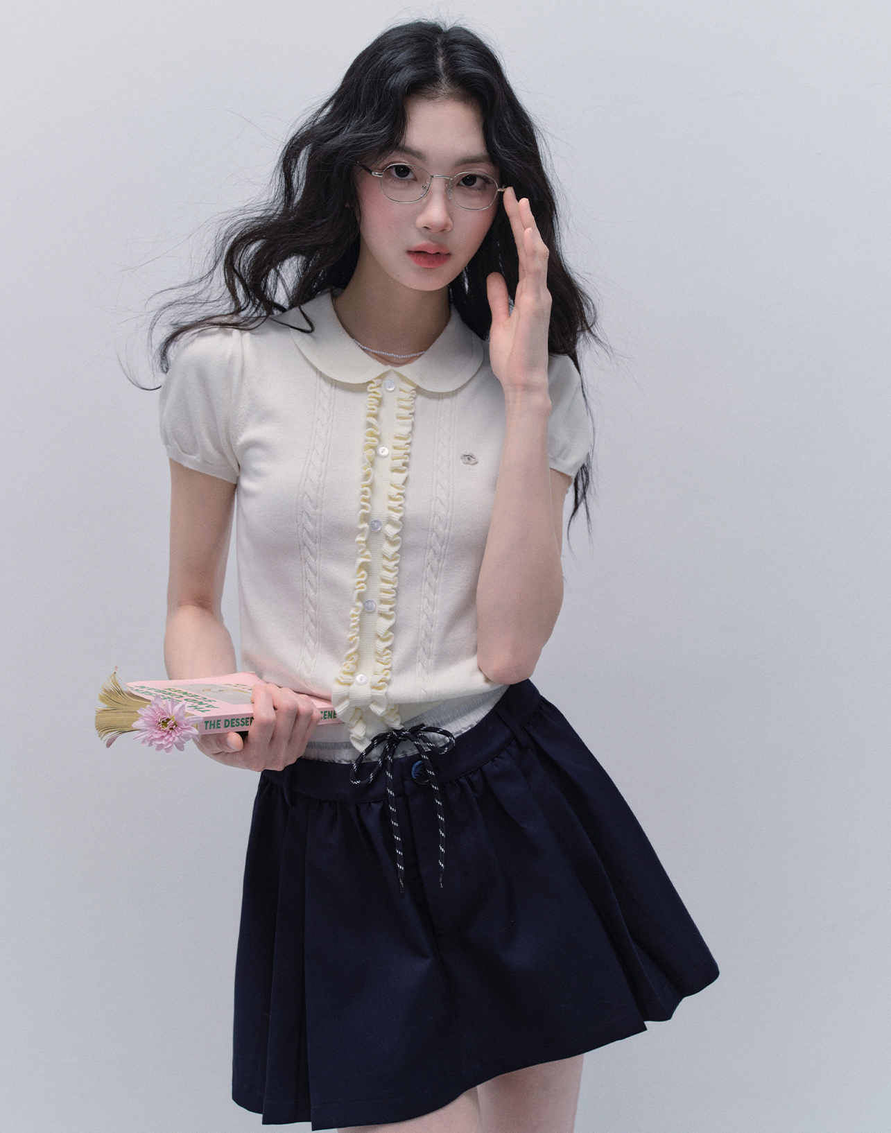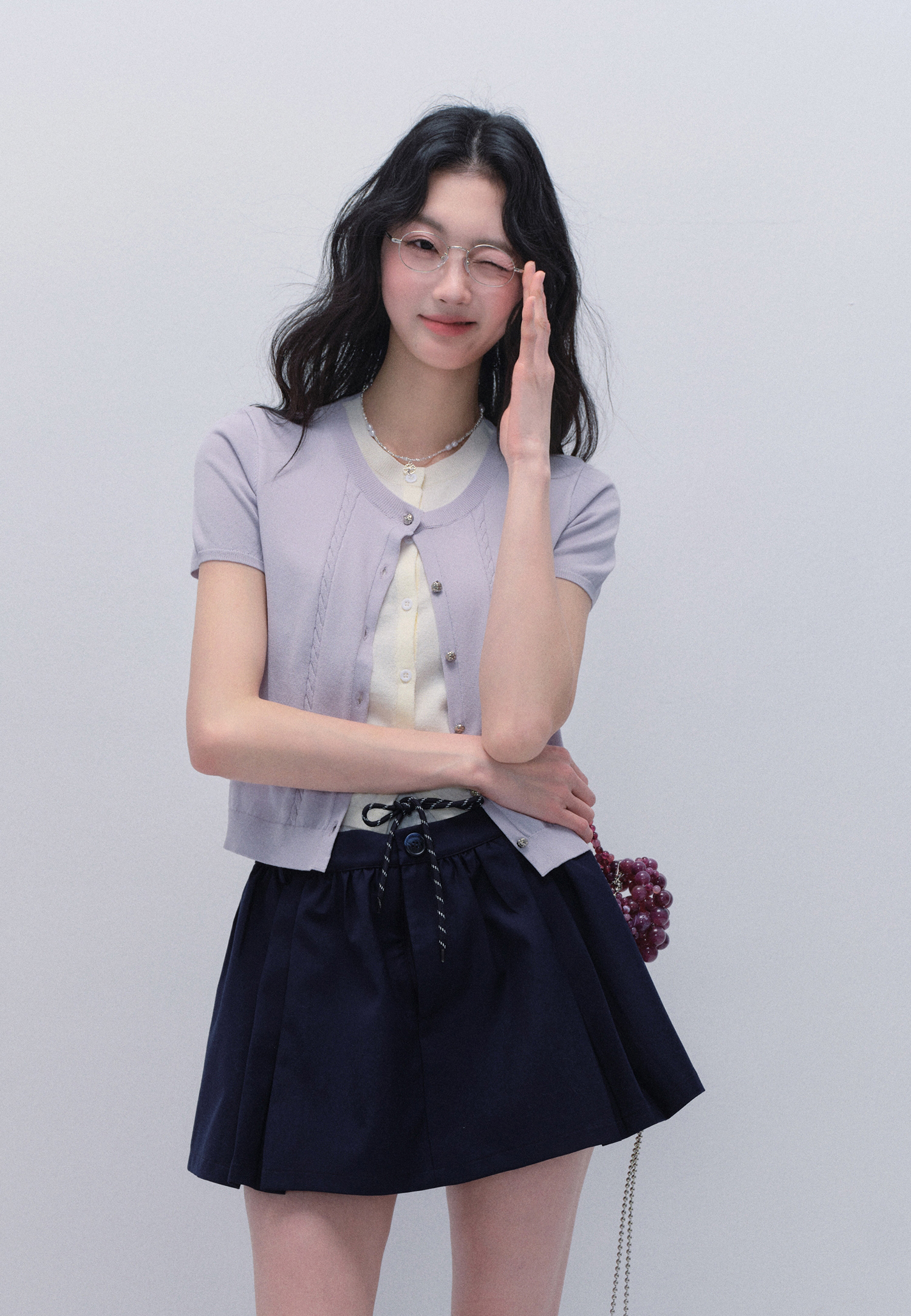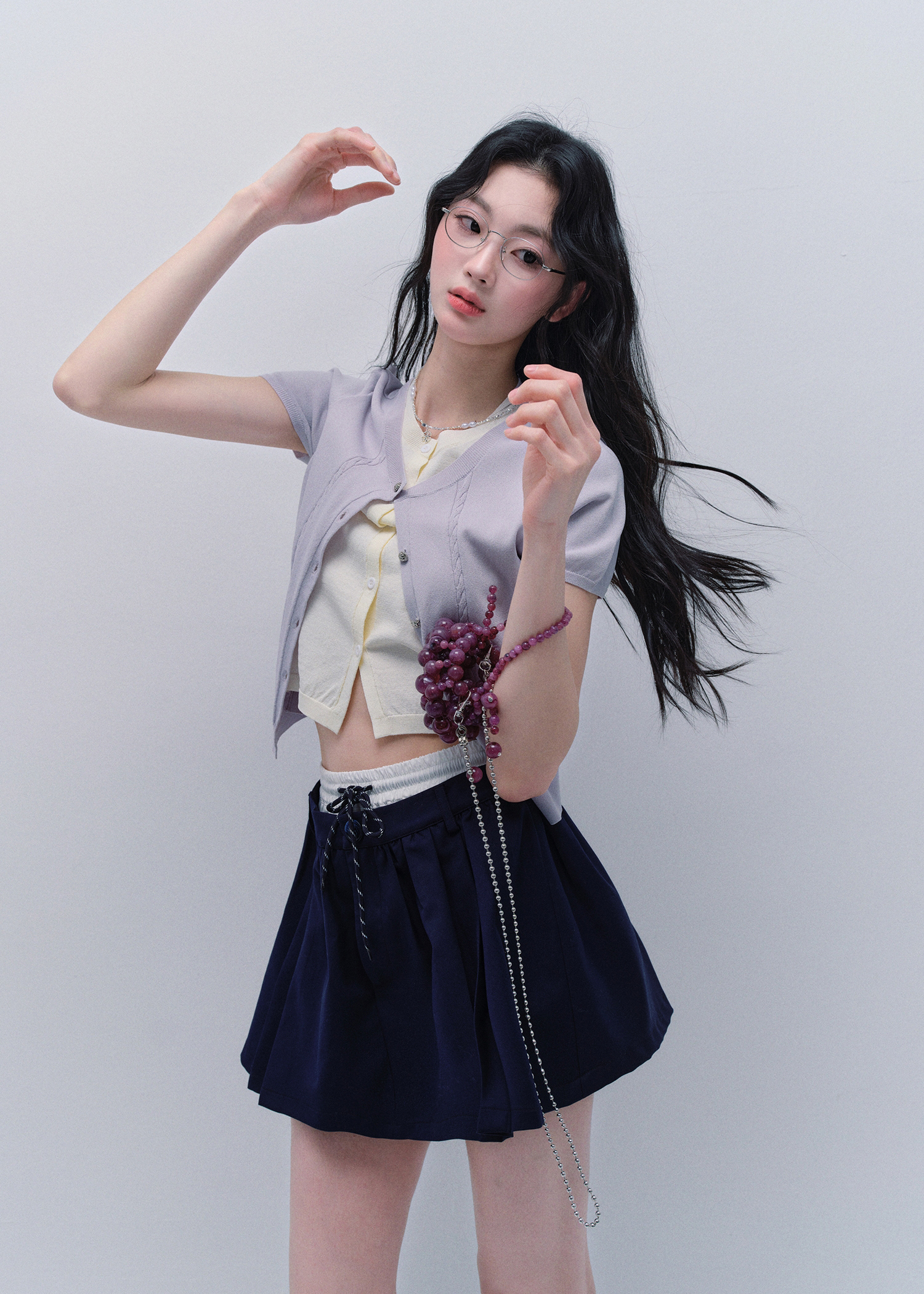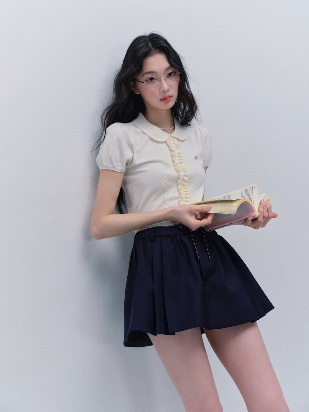 캐주얼한 무드의 더블 웨이스트 플리츠 스커트 팬츠입니다.