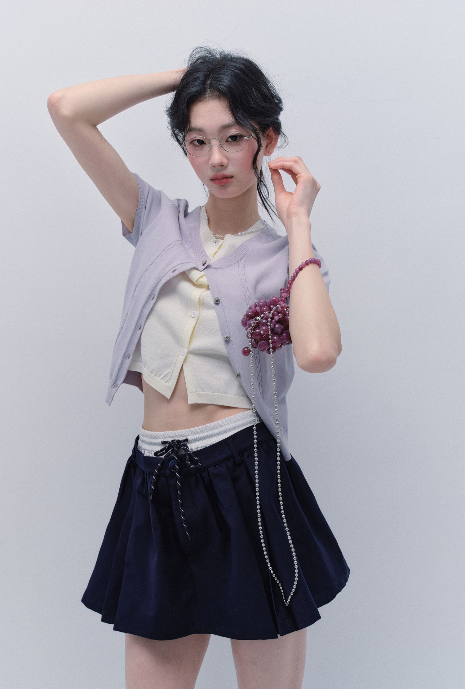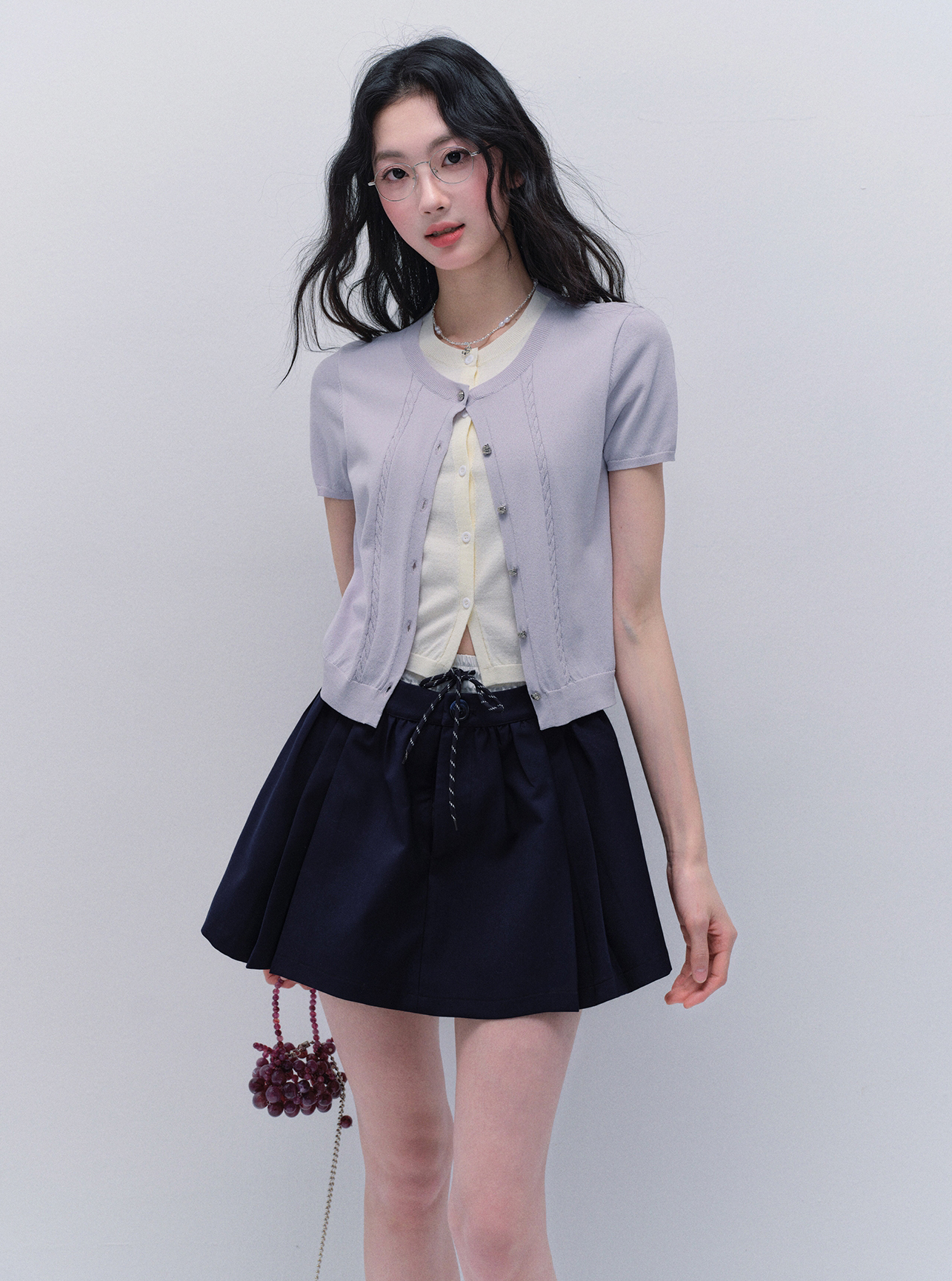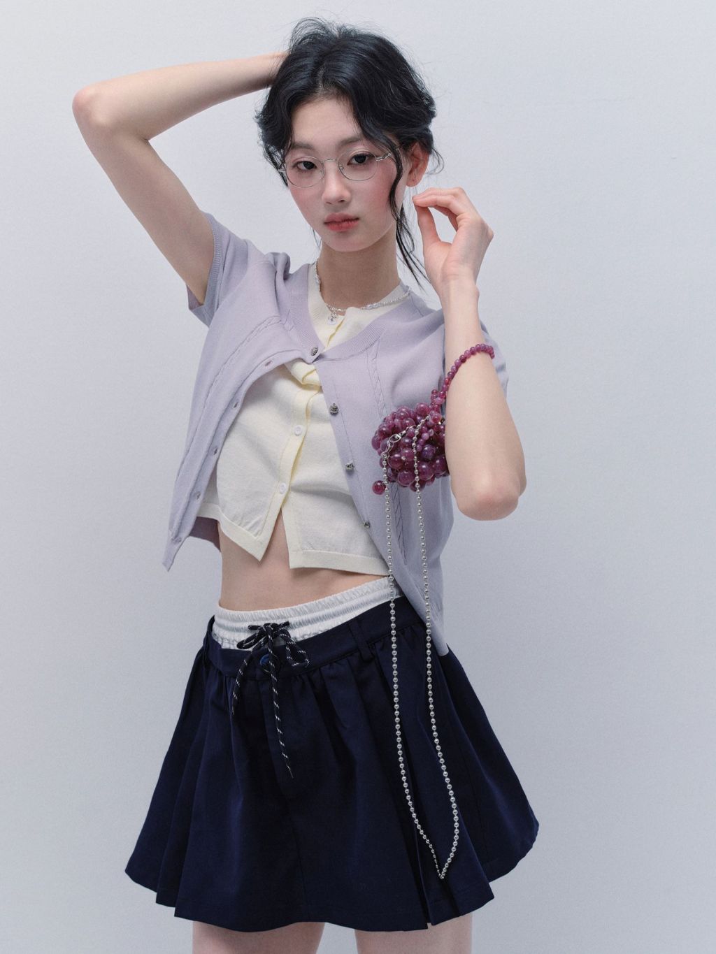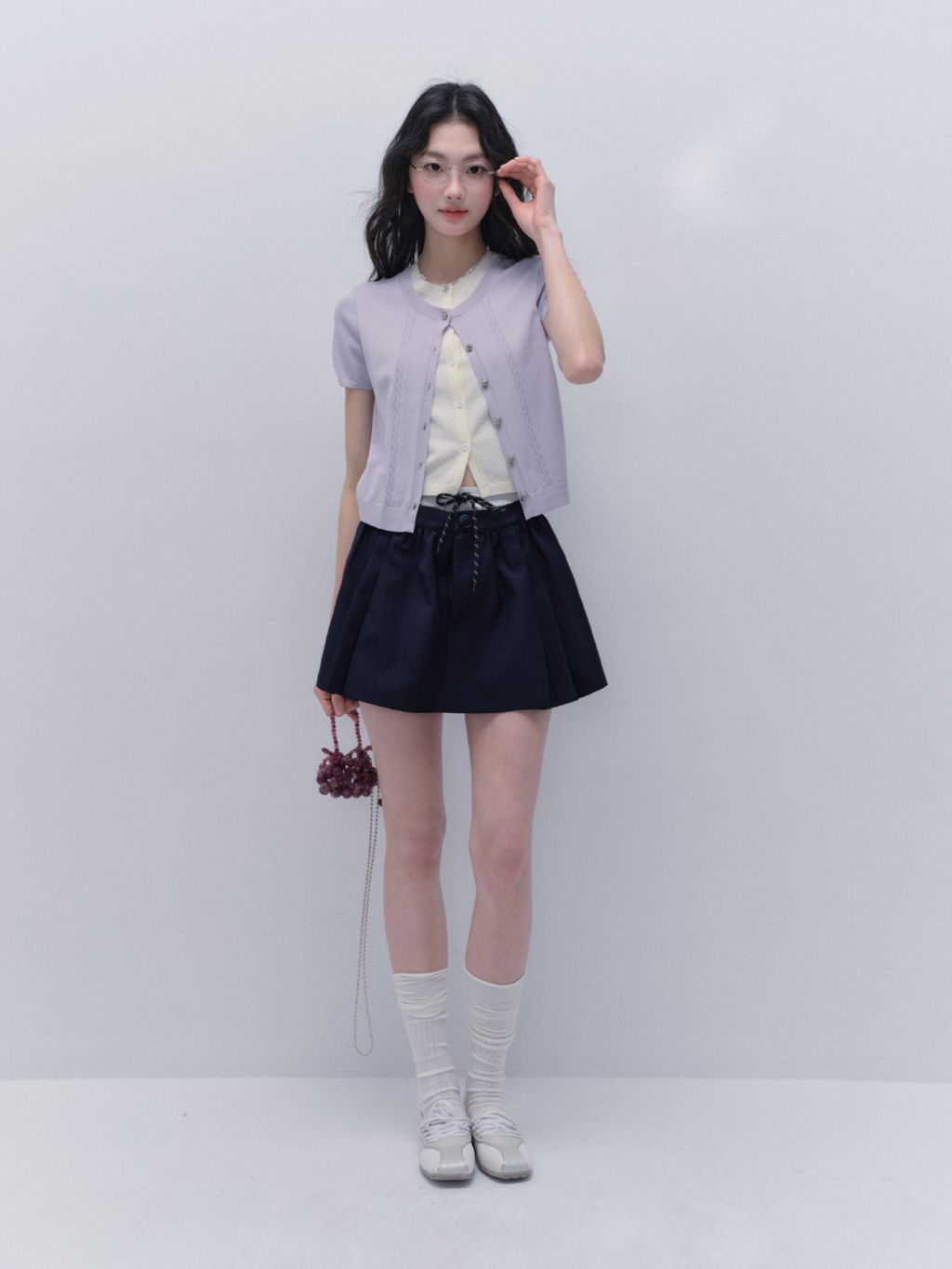 캐주얼한 무드의 더블 웨이스트 플리츠 스커트 팬츠입니다.
