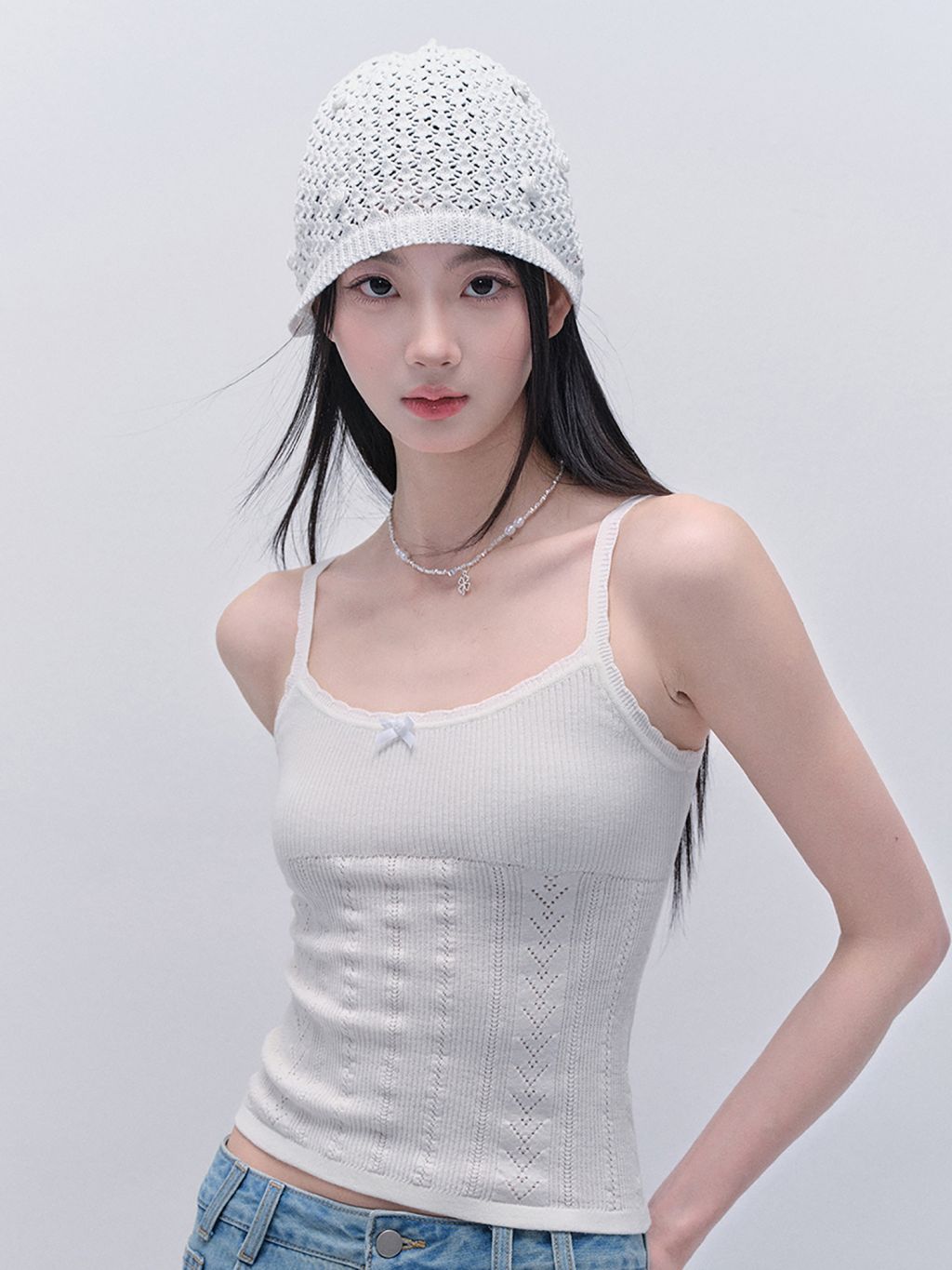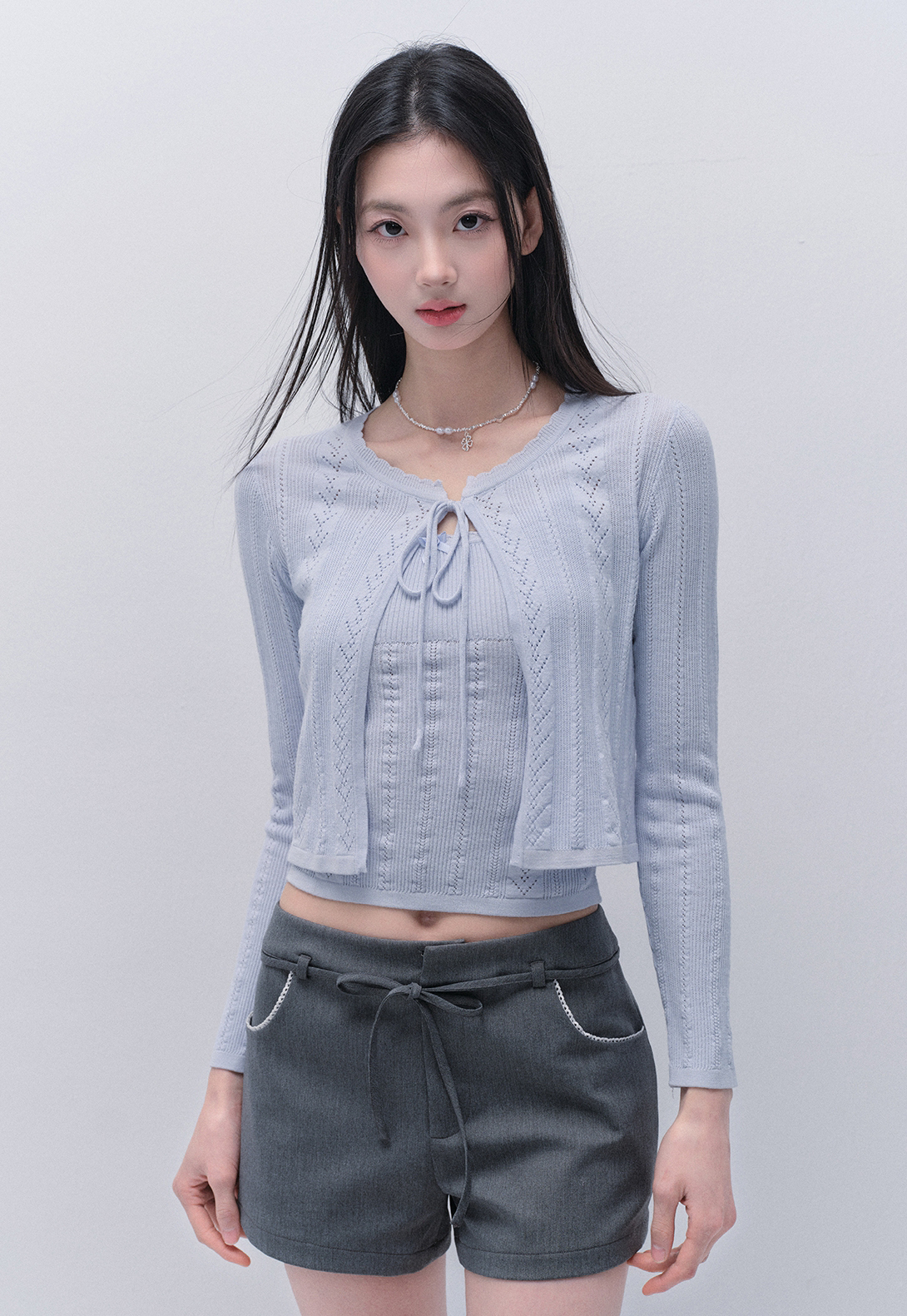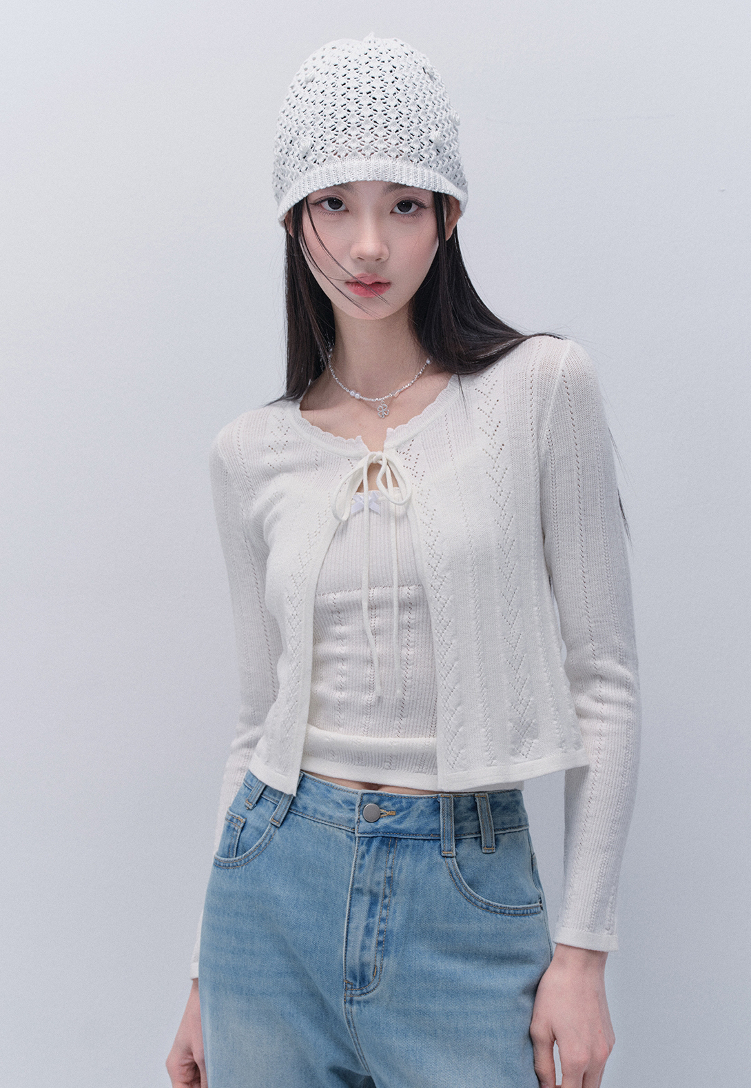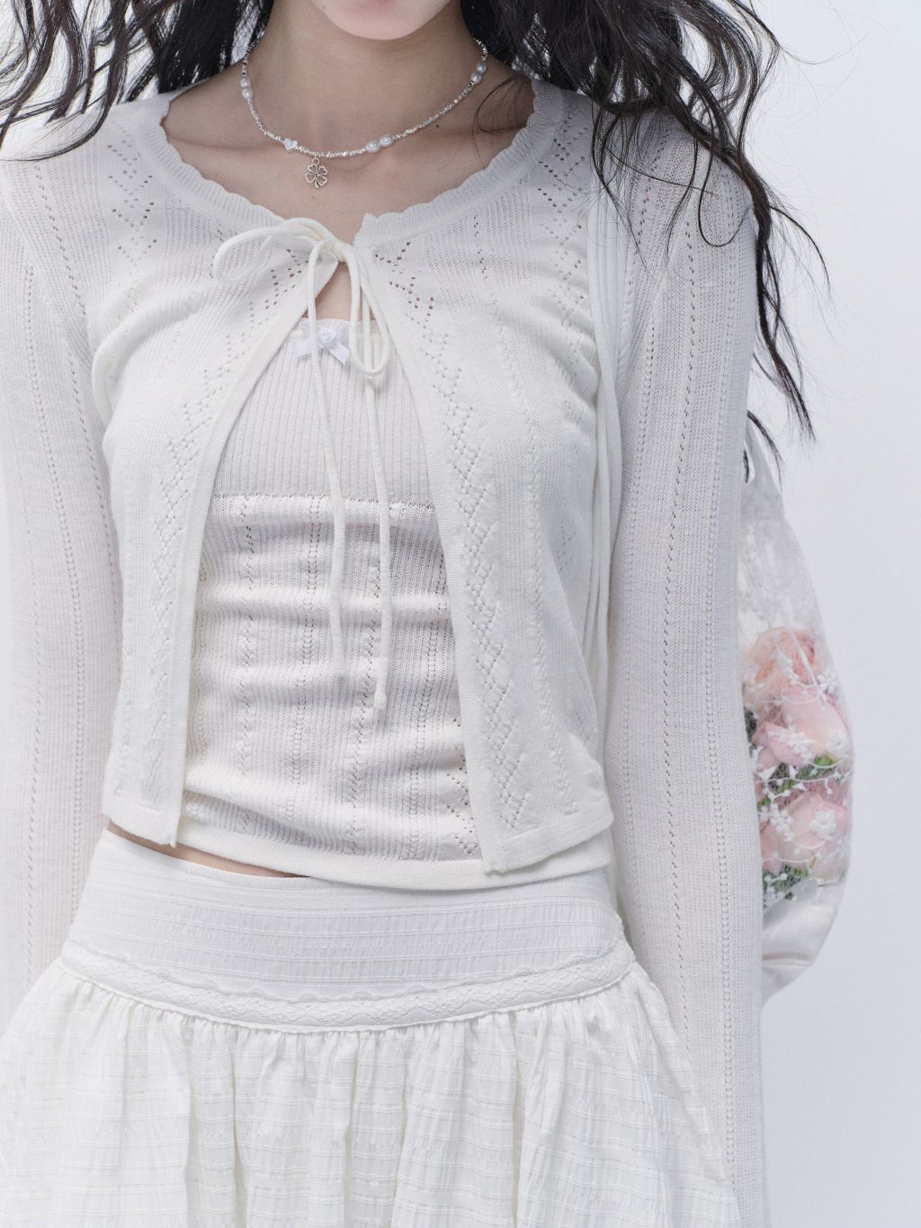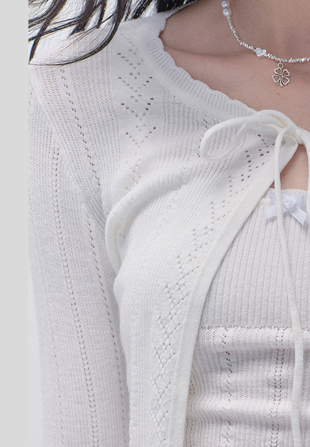 Punching Knit Cardigan & Sleeveless Top Set
