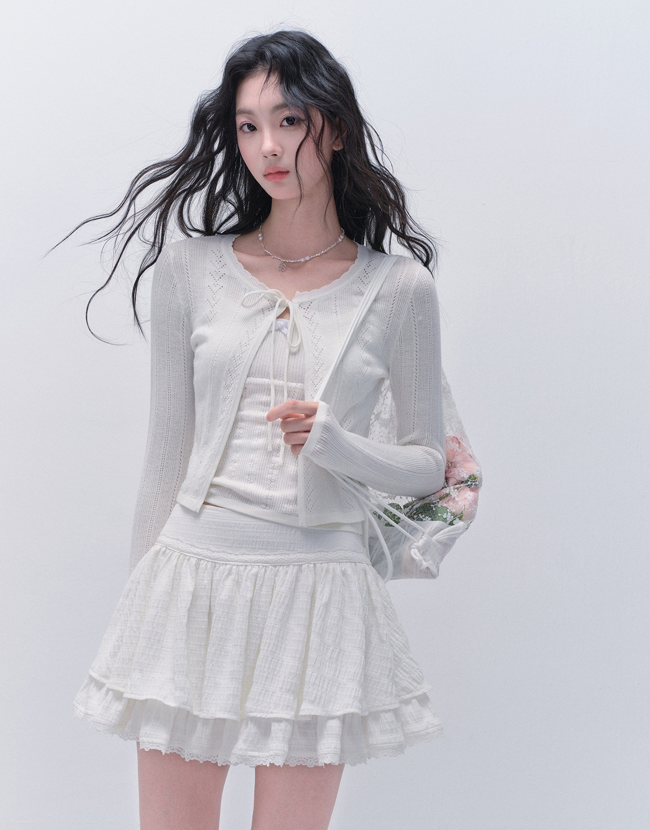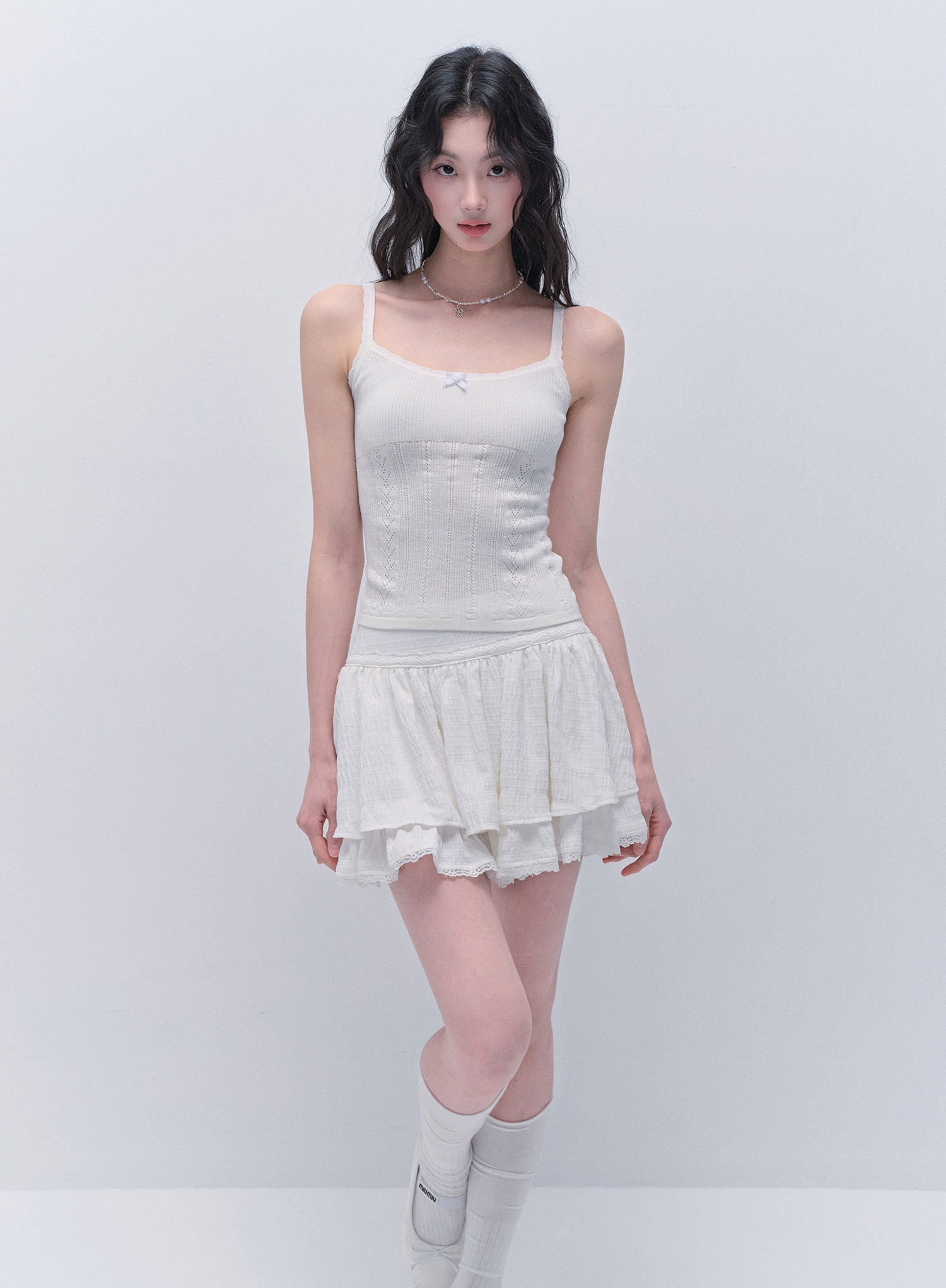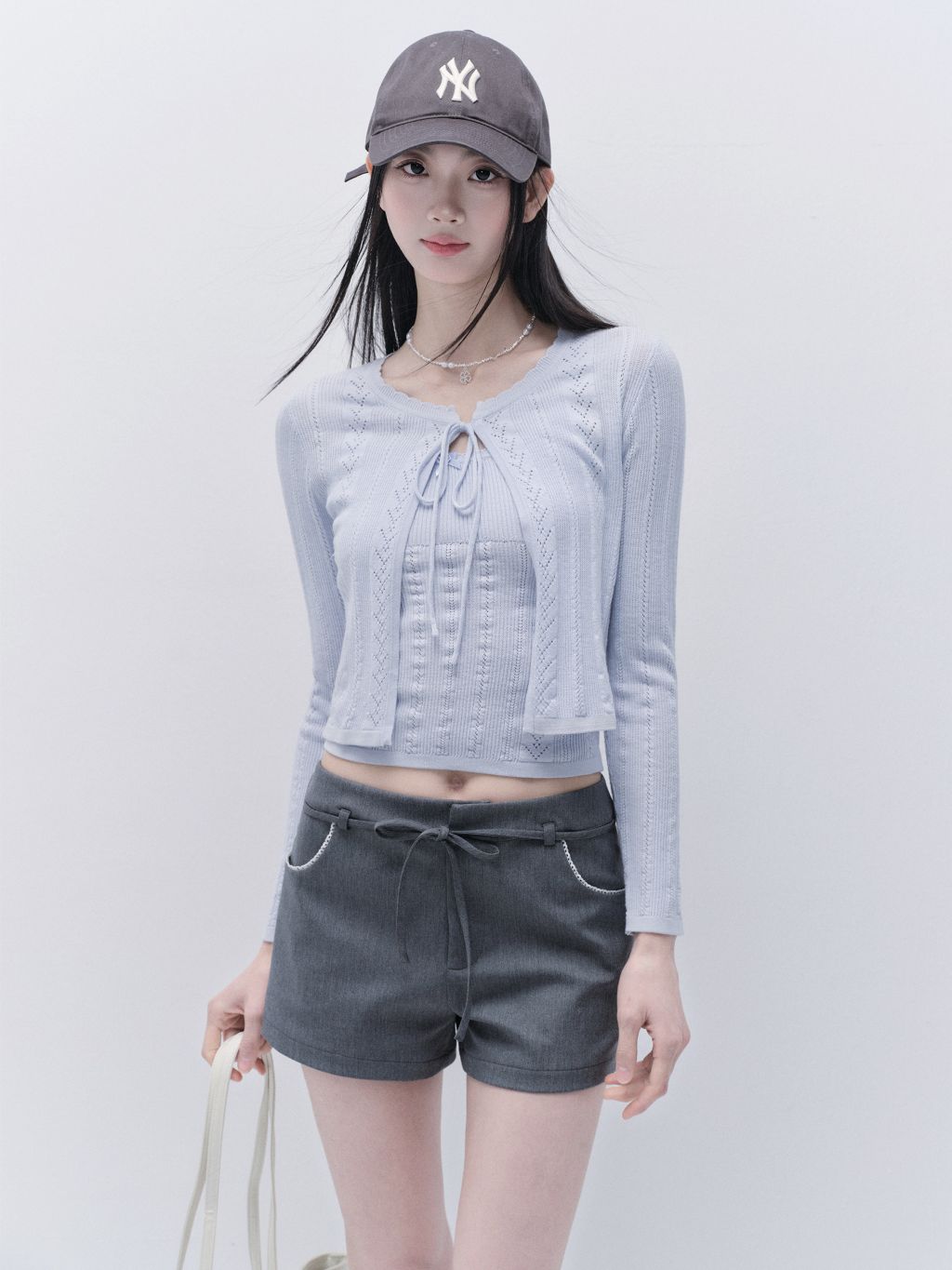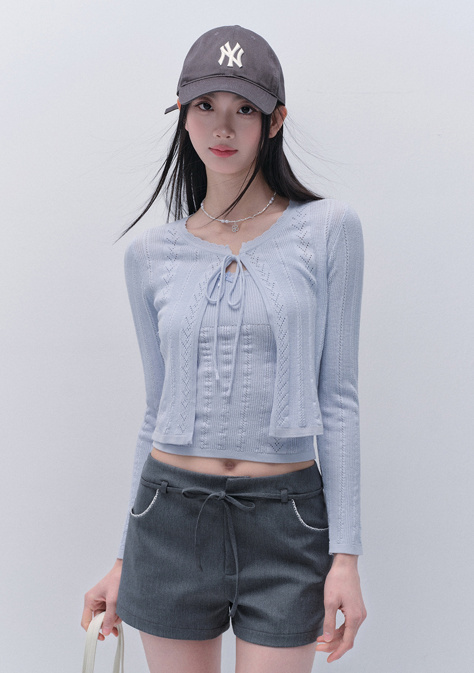 Punching Knit Cardigan & Sleeveless Top Set