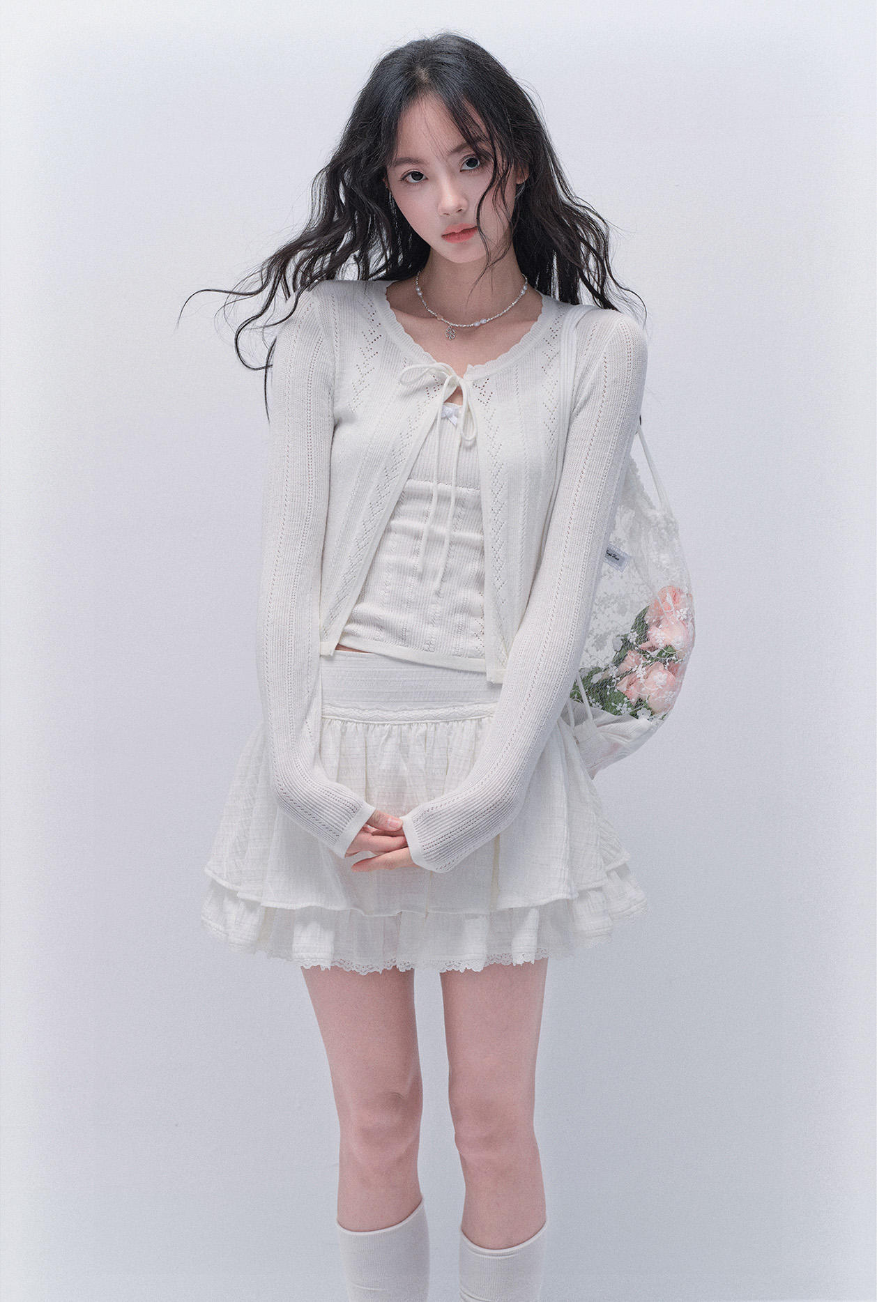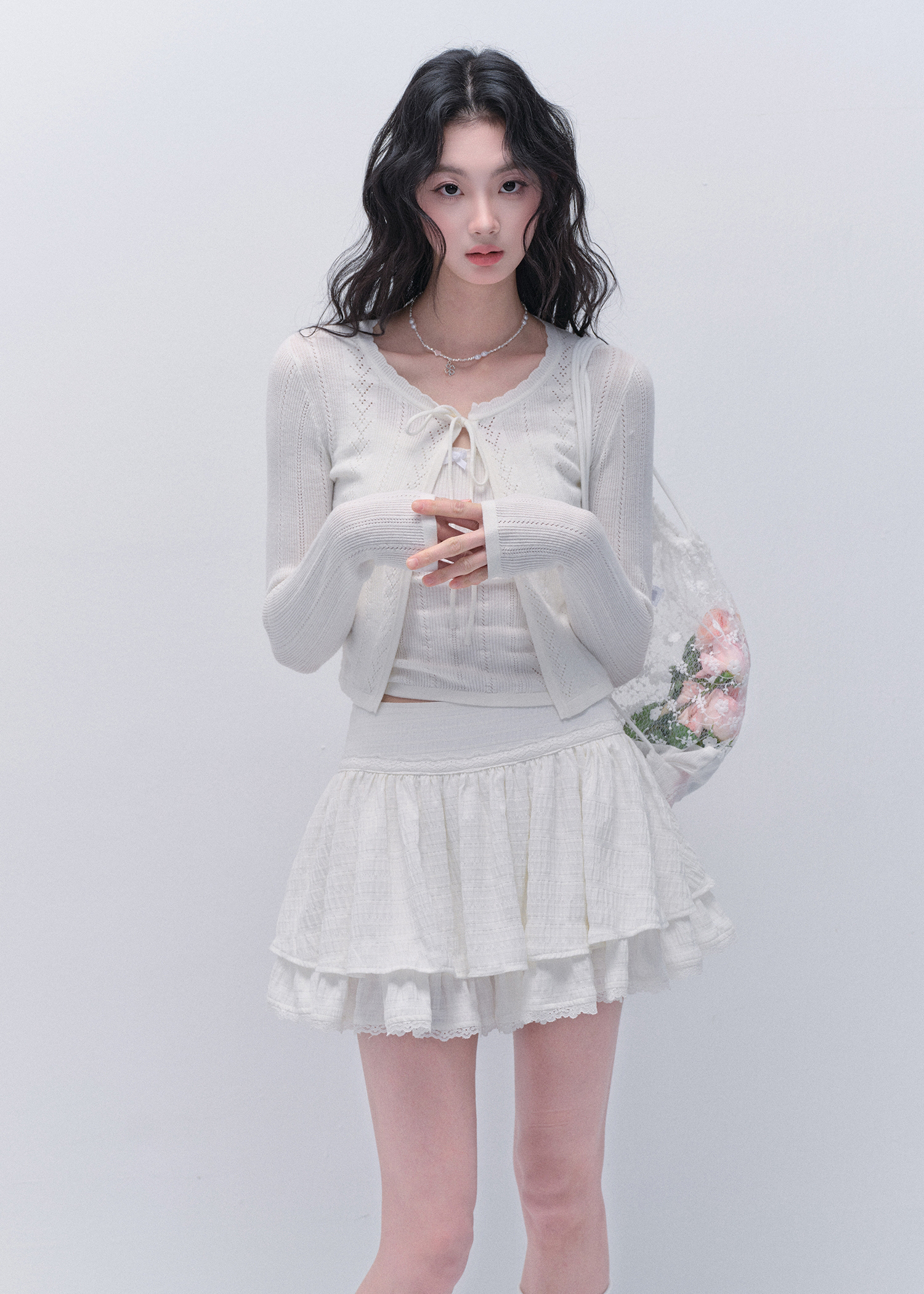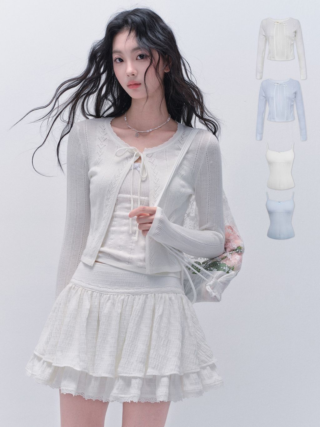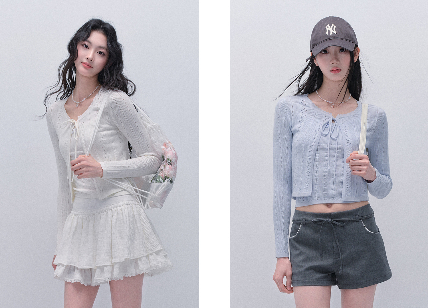 러블리한 무드의 니트 가디건 & 슬리브리스 세트 상품입니다.