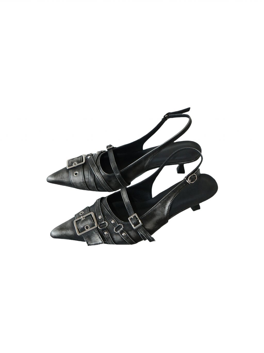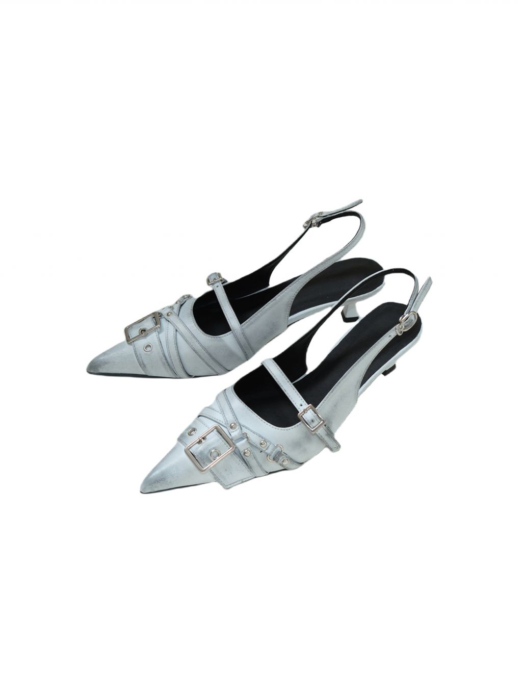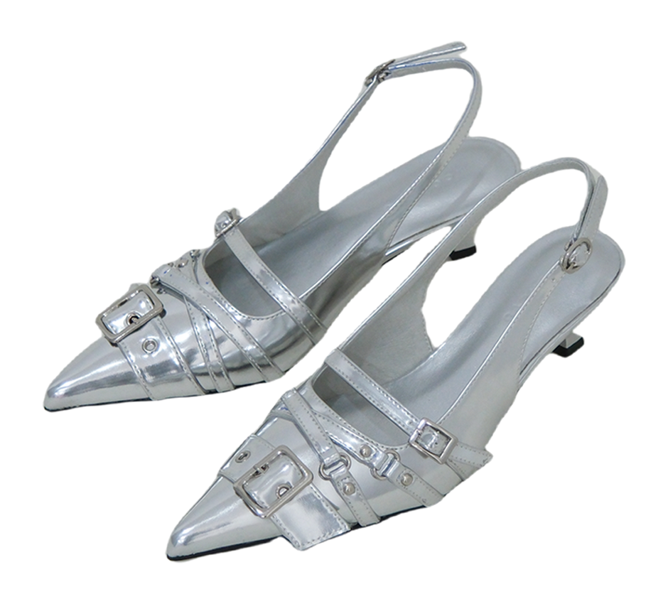 벨트 버클 디테일이 돋보이는 슬링백 힐입니다.