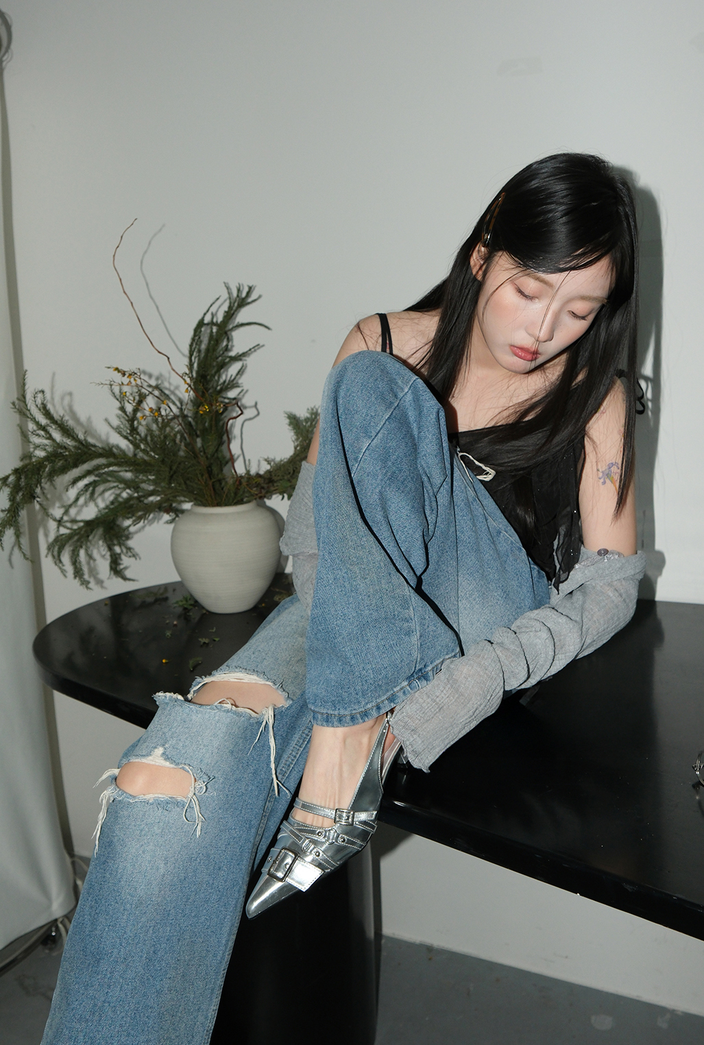 - 유니크한 벨트 버클 디테일
