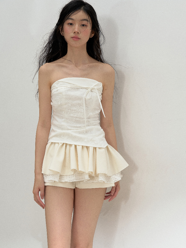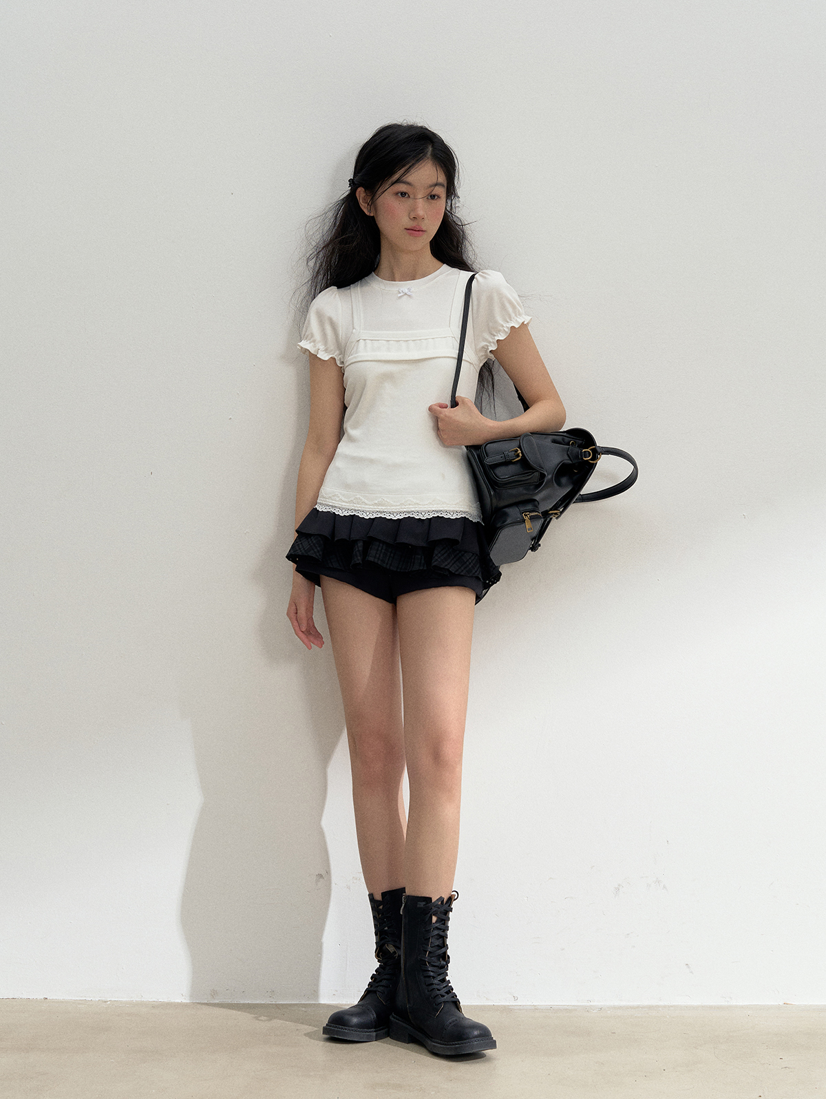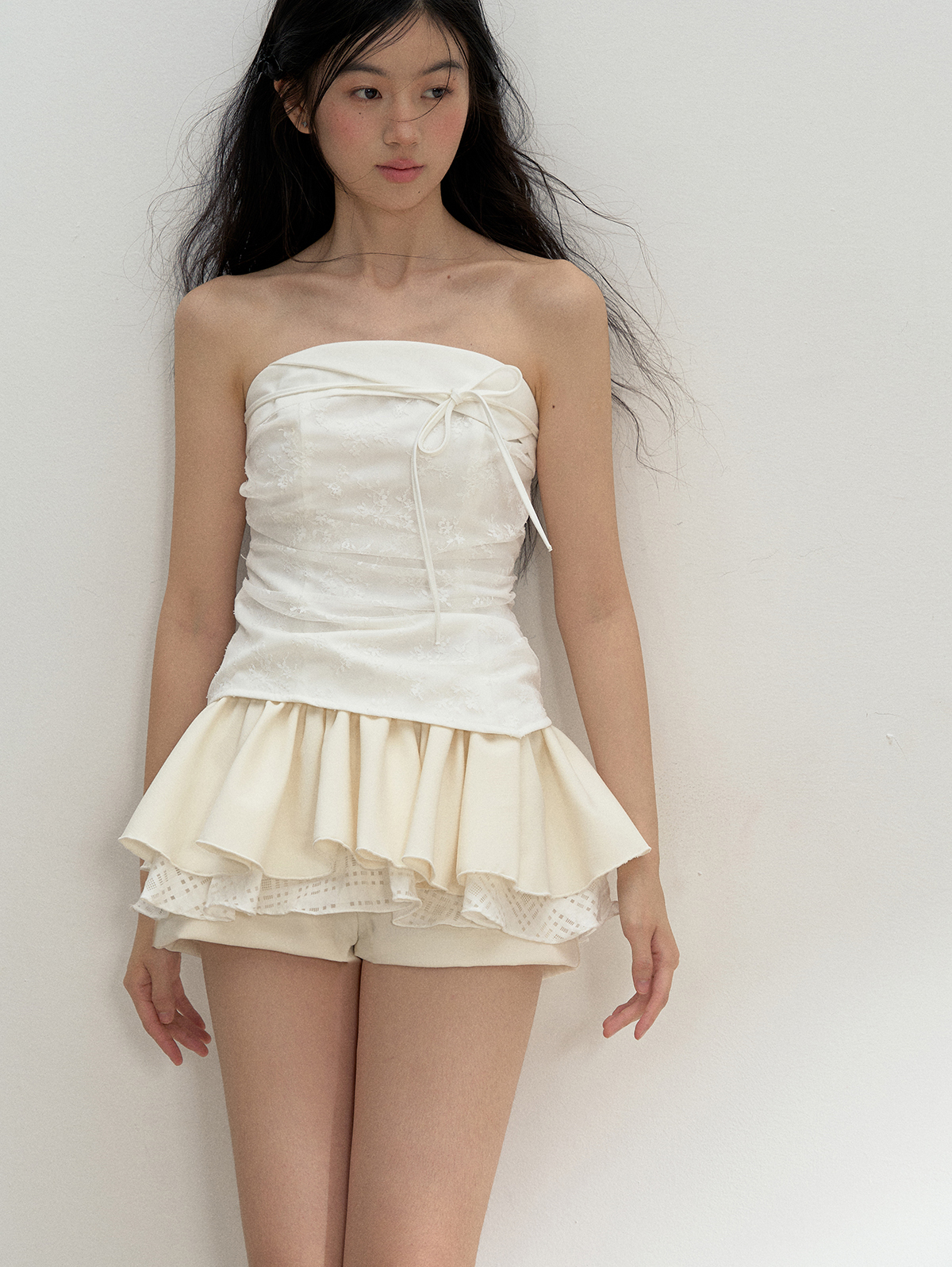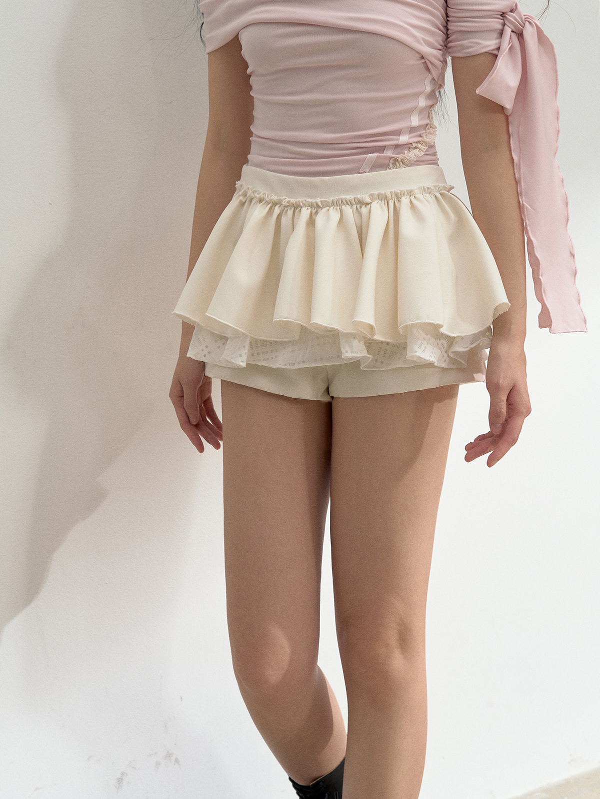 레이어드한 듯한 디자인의 프릴 미니 쇼츠