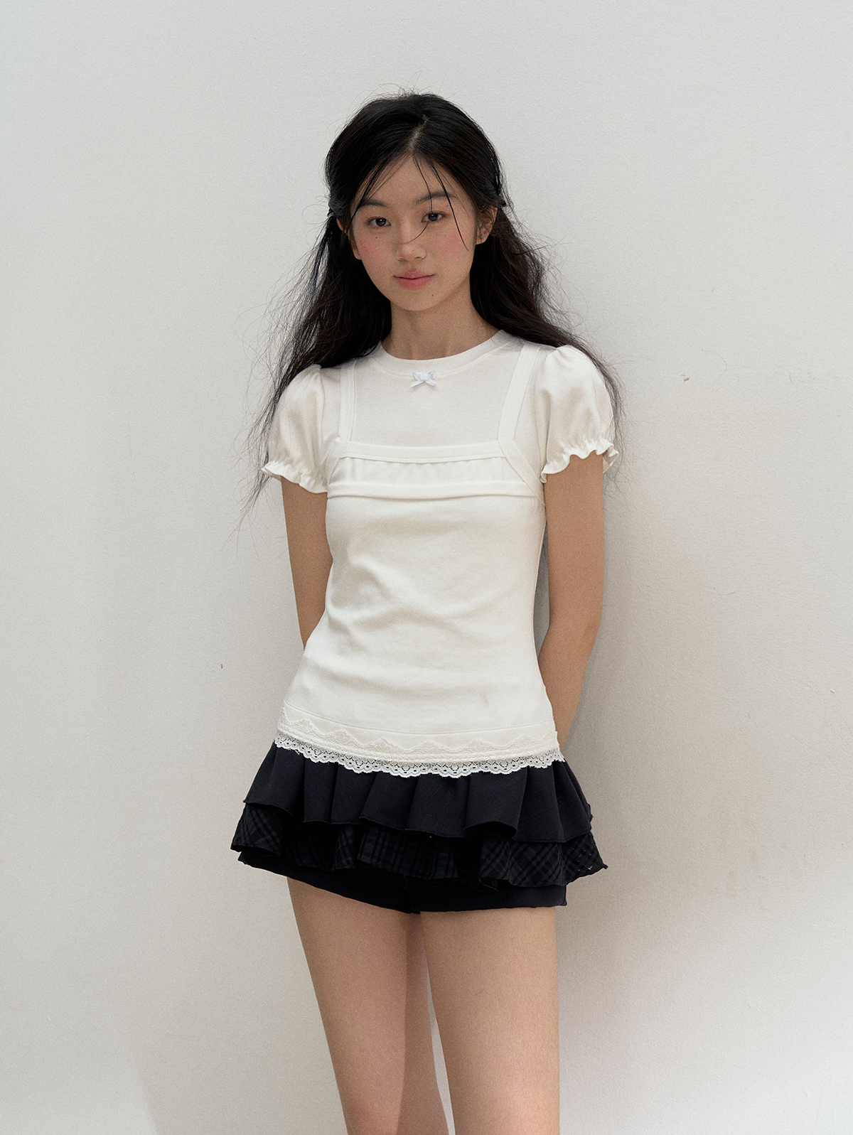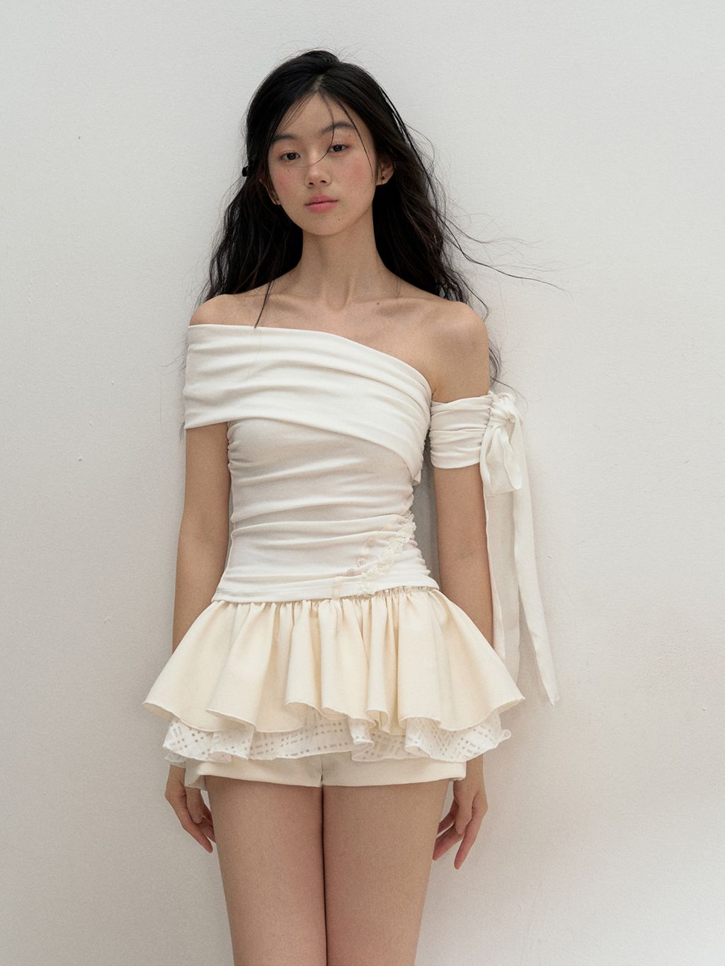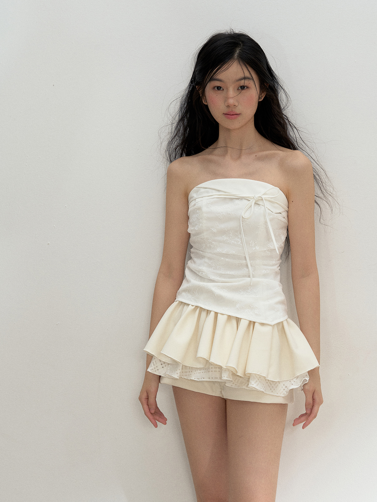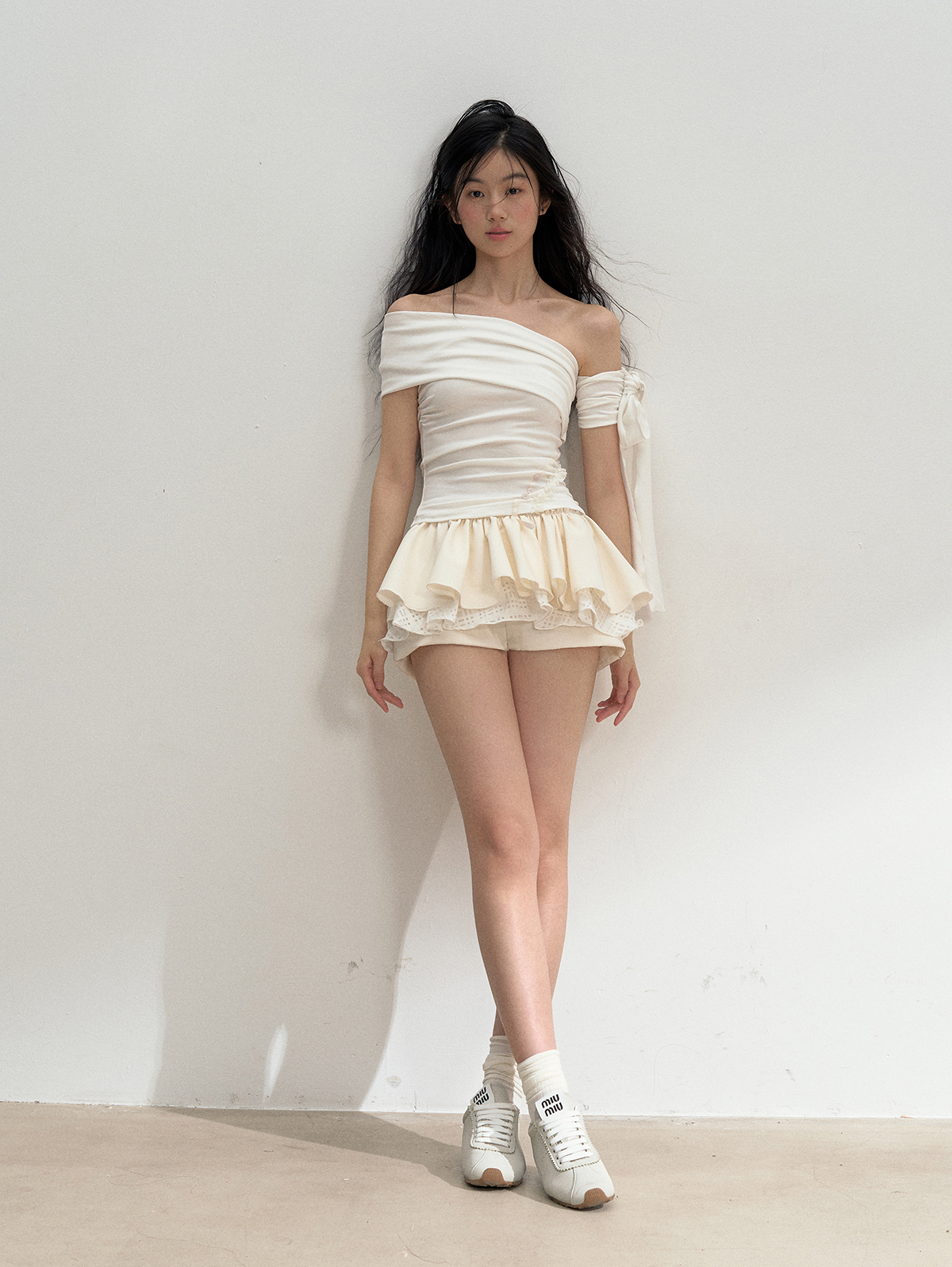 레이어드한 듯한 디자인의 프릴 미니 쇼츠