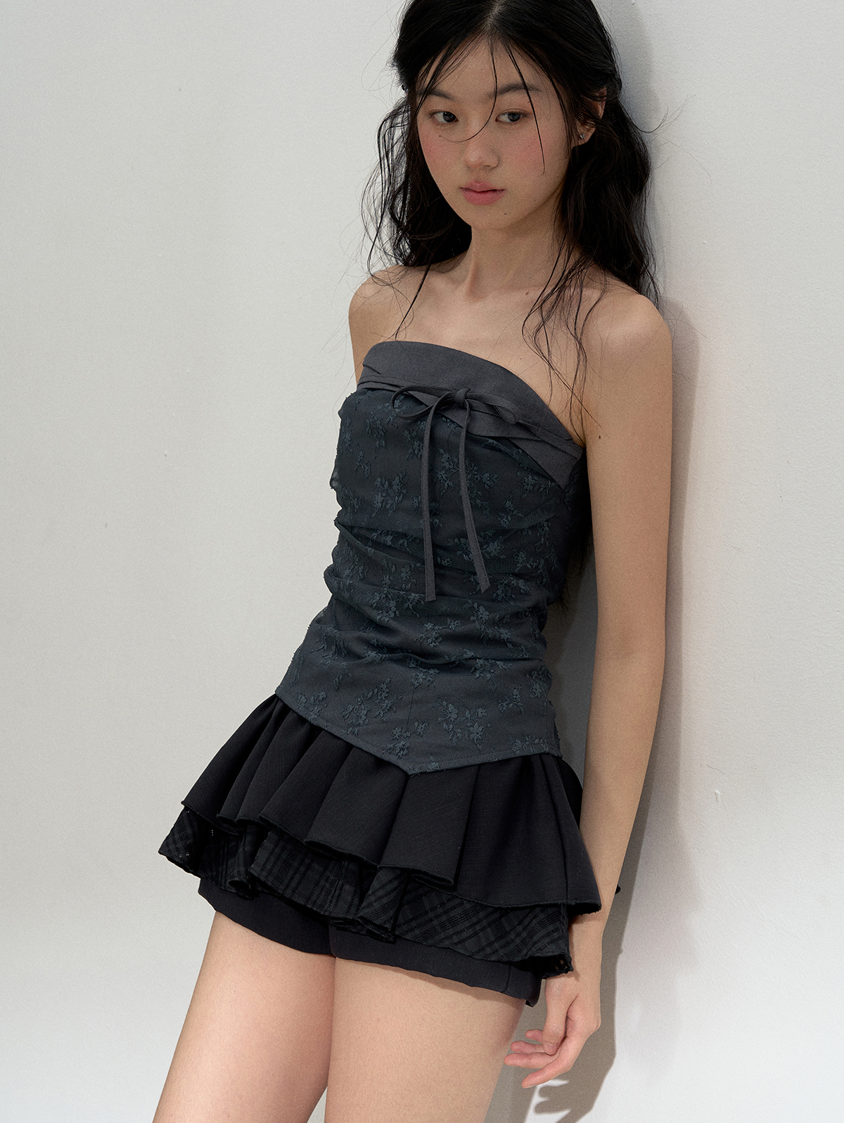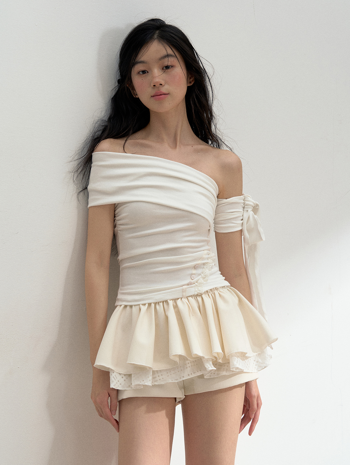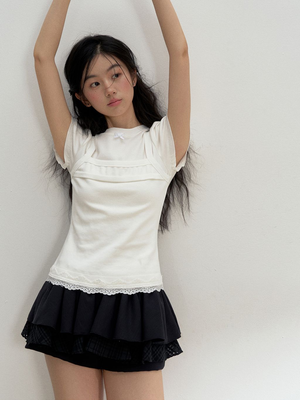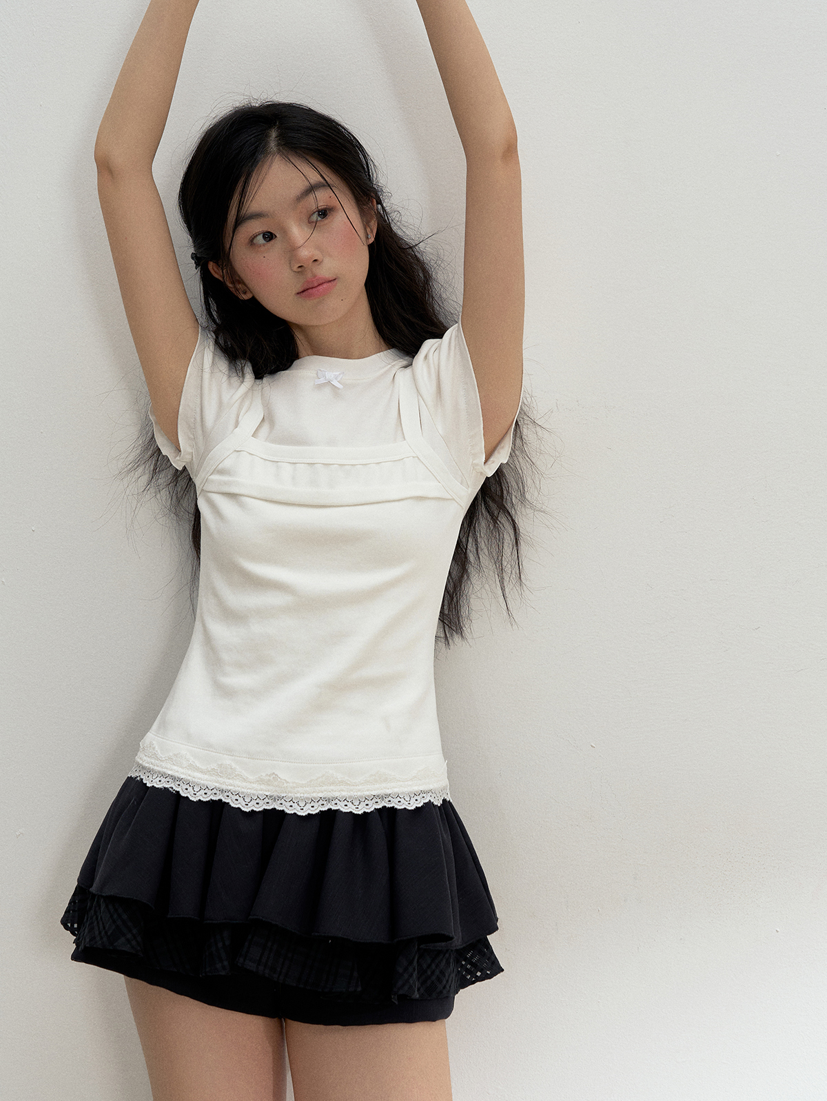 레이어드한 듯한 디자인의 프릴 미니 쇼츠