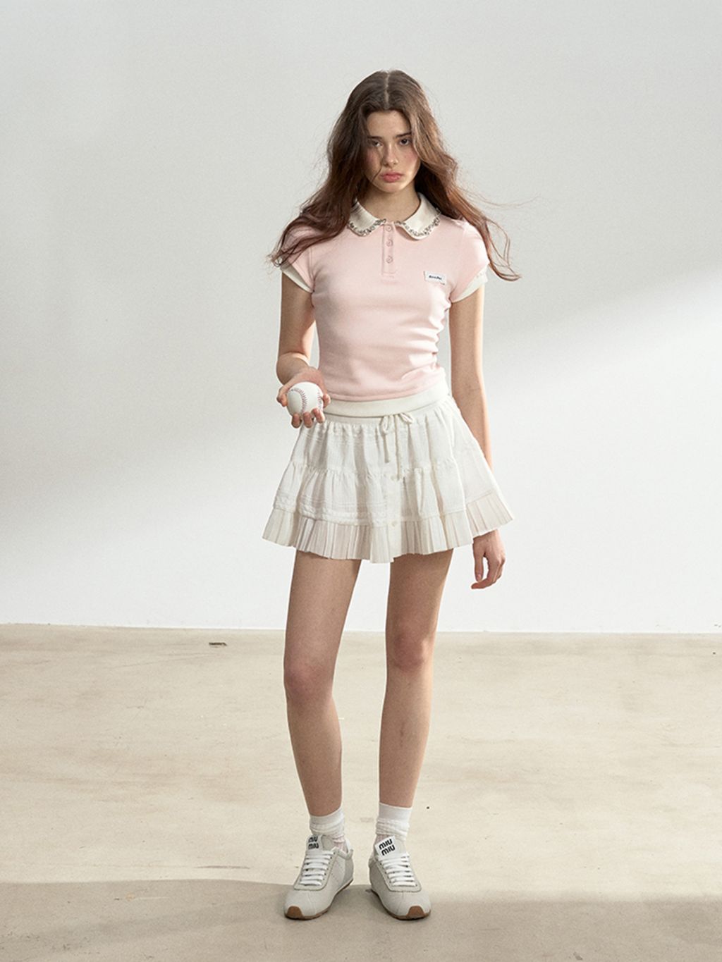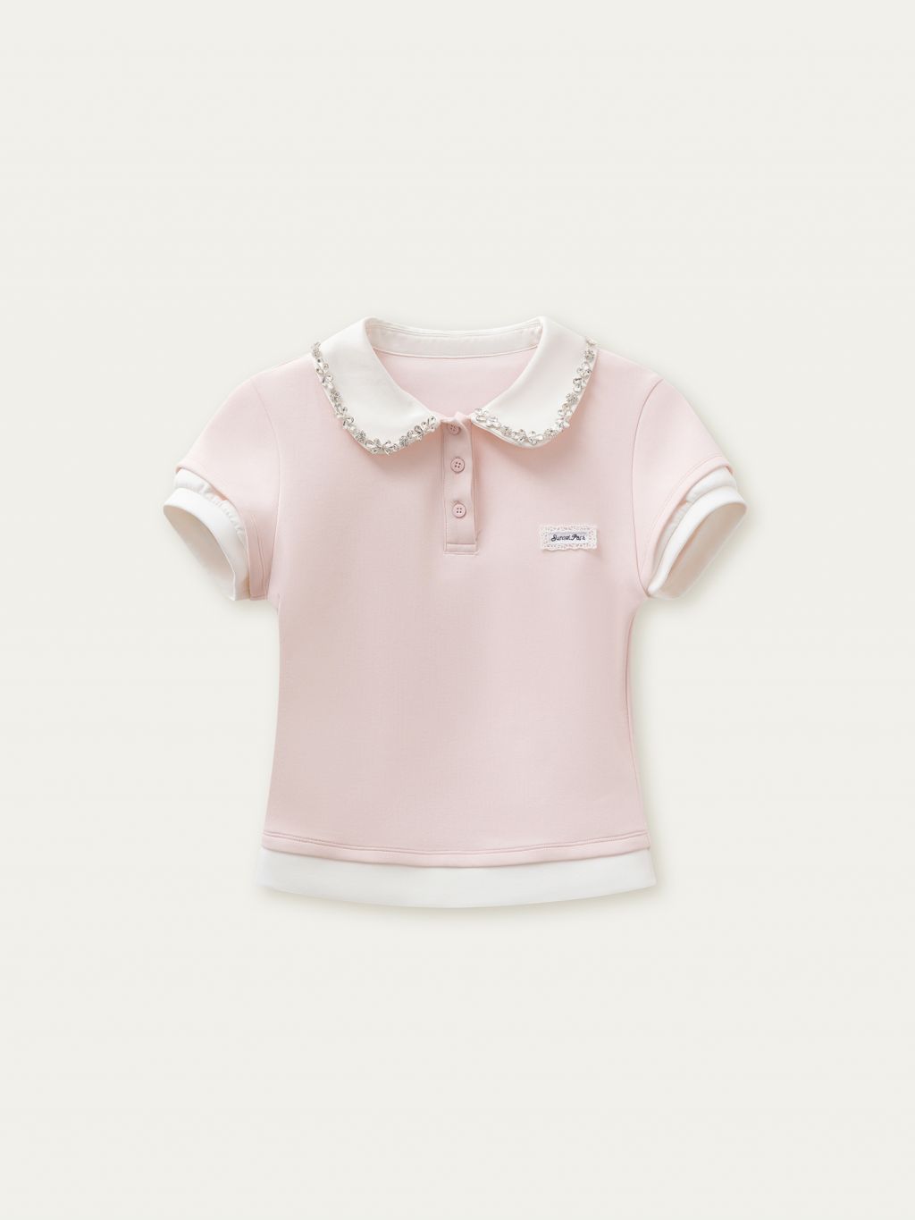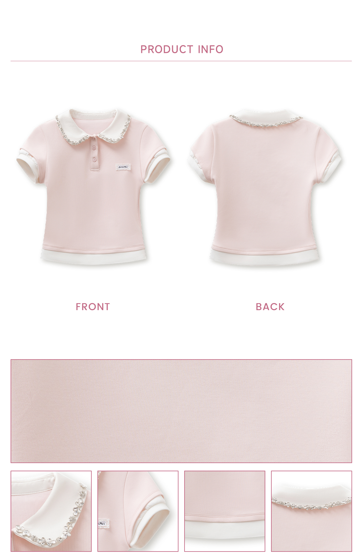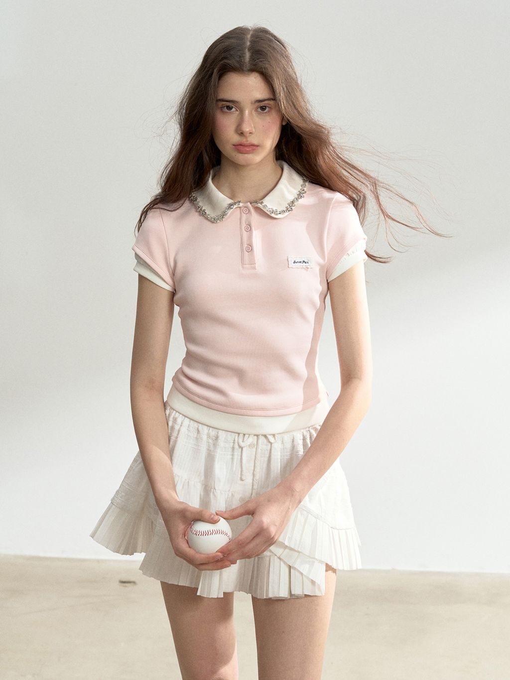 Fake 2-Piece Jewel Collar Polo T-Shirt