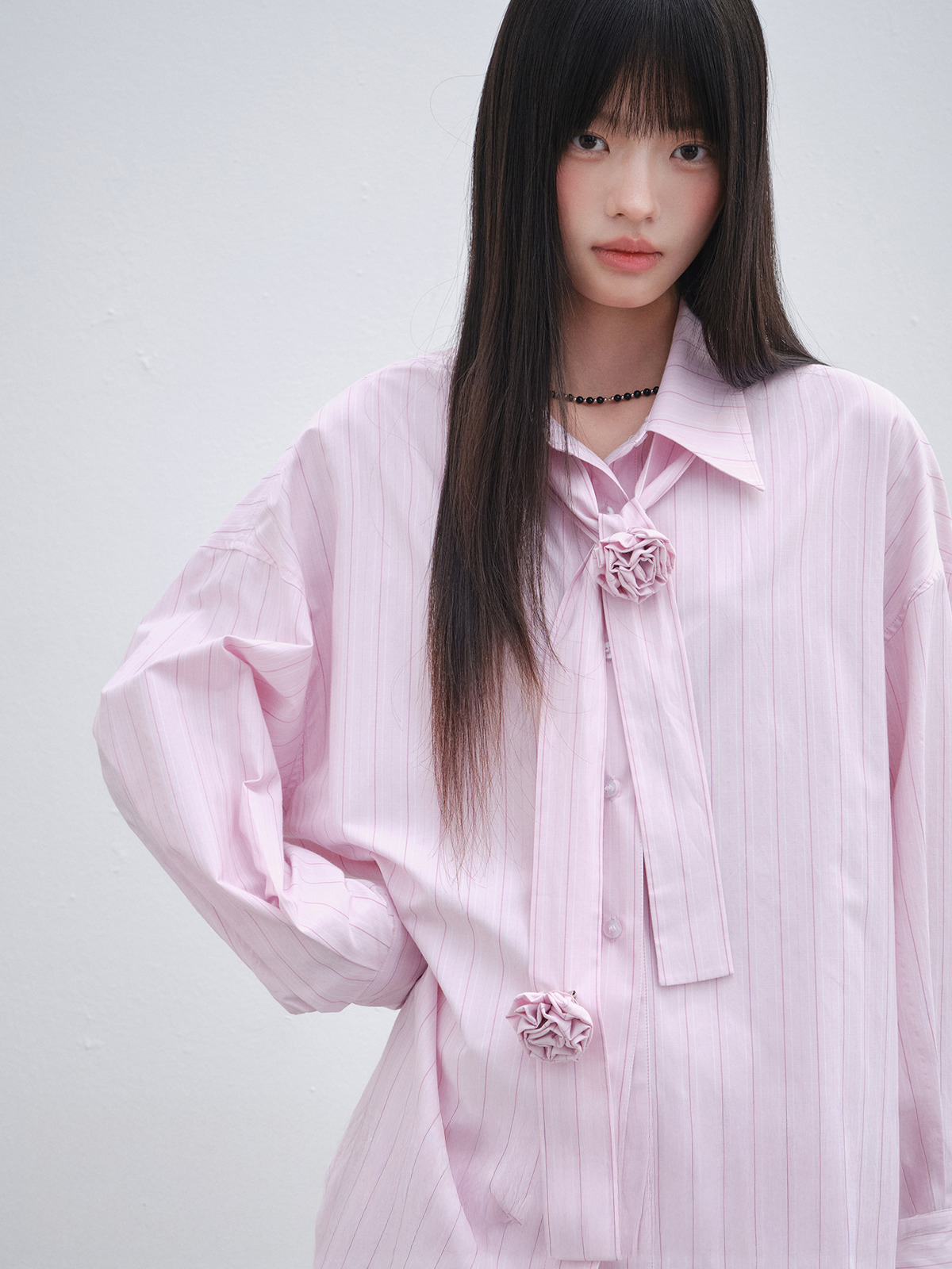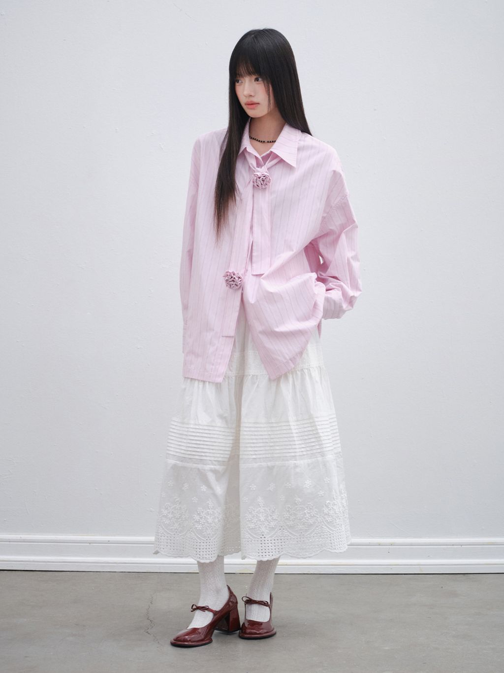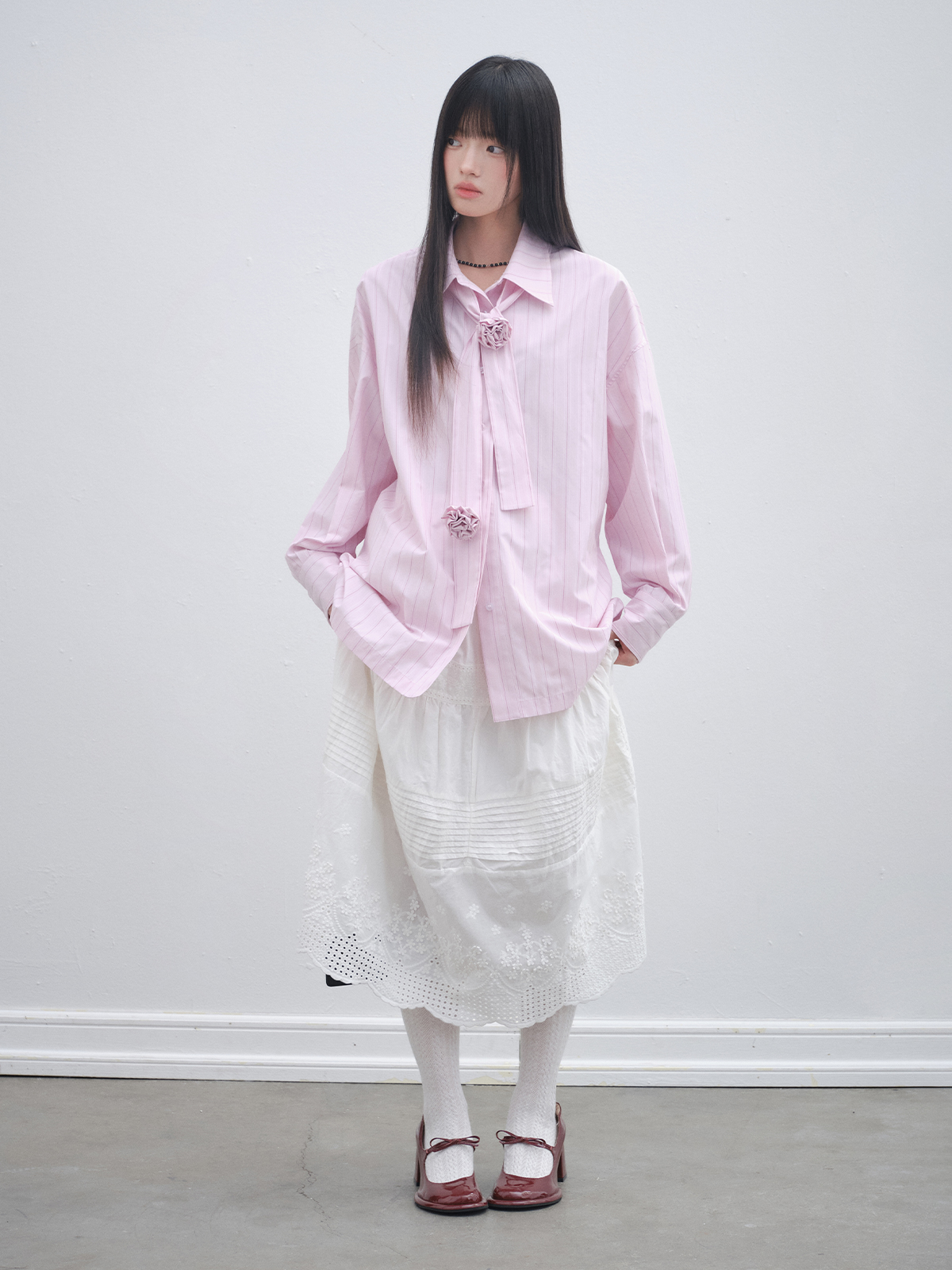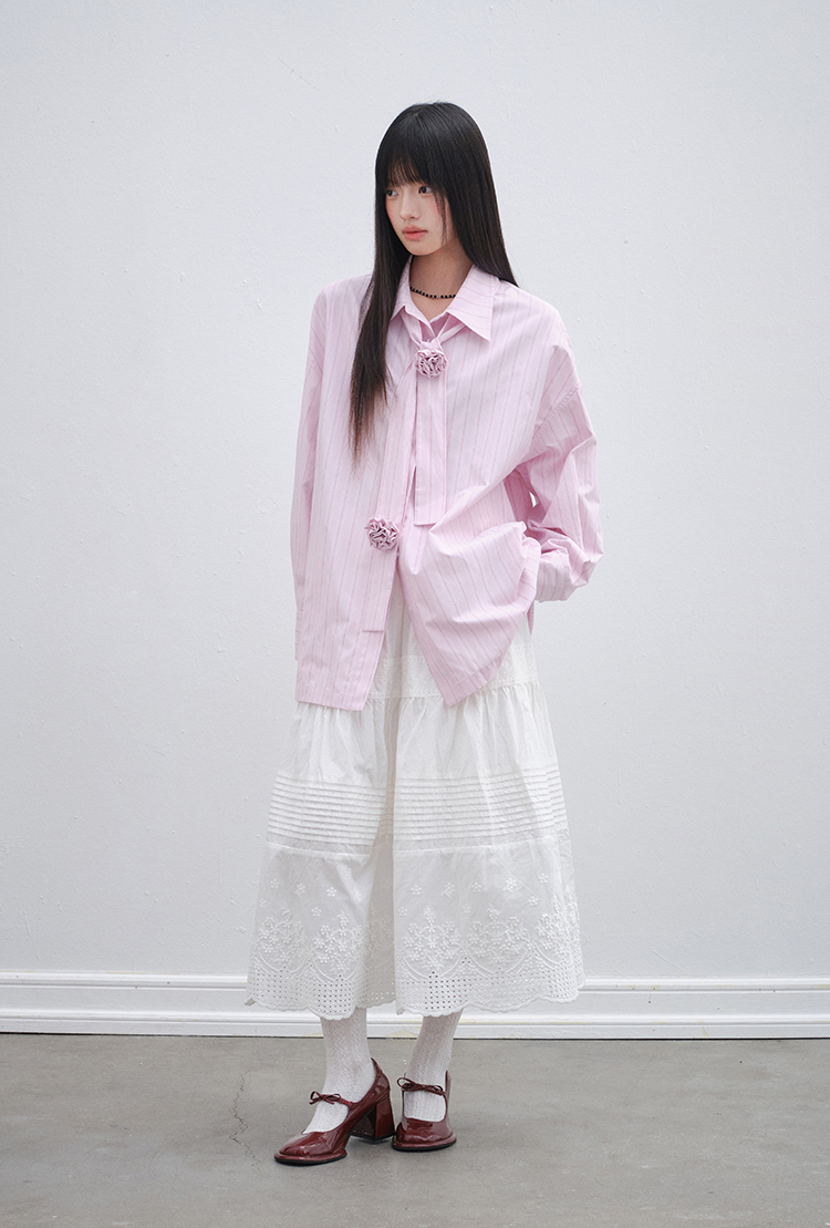 로맨틱한 무드의 스트라이프 셔츠입니다.