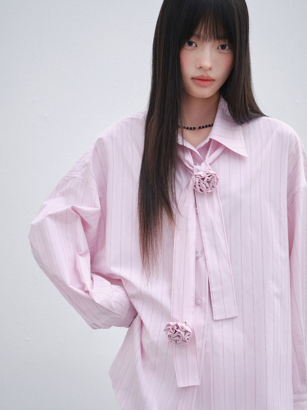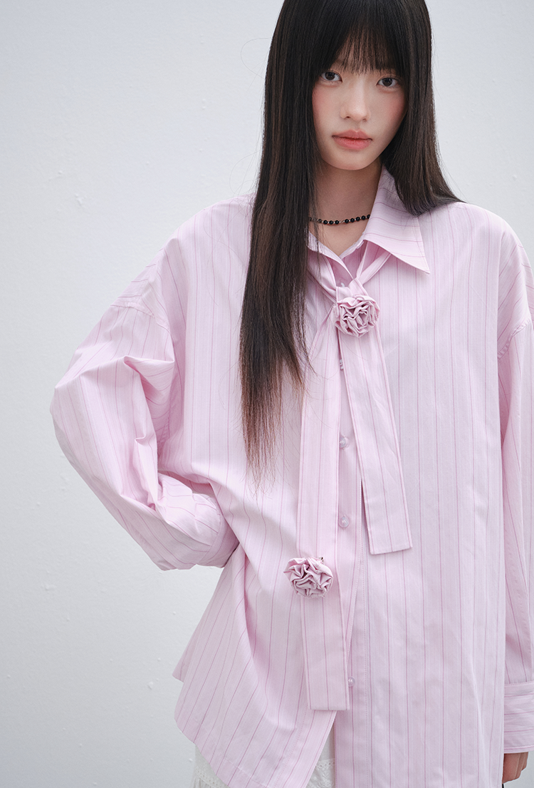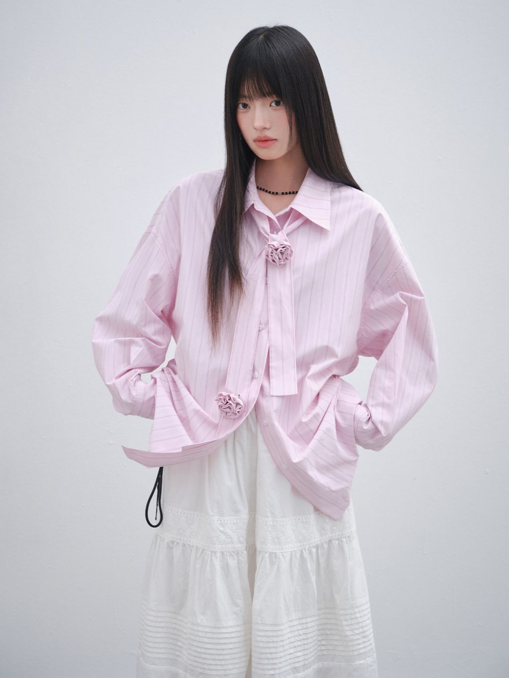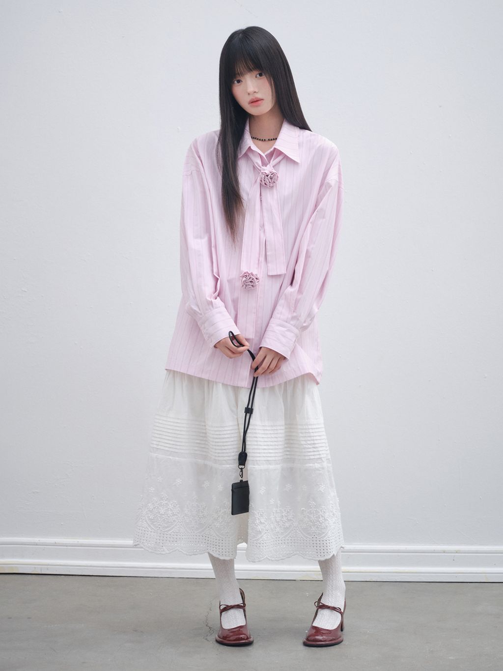 로맨틱한 무드의 스트라이프 셔츠입니다.