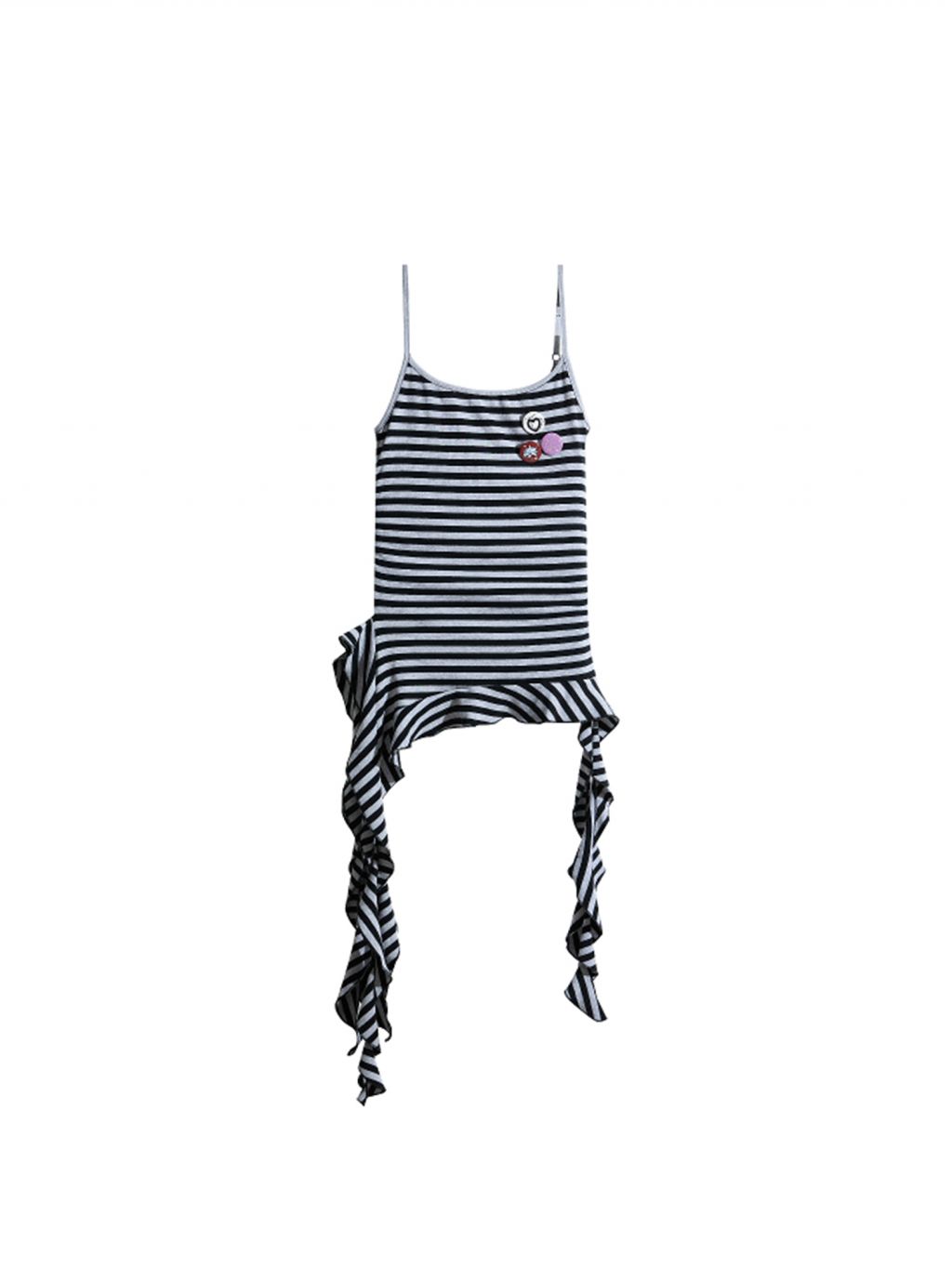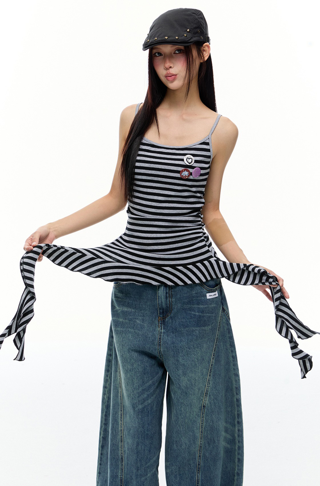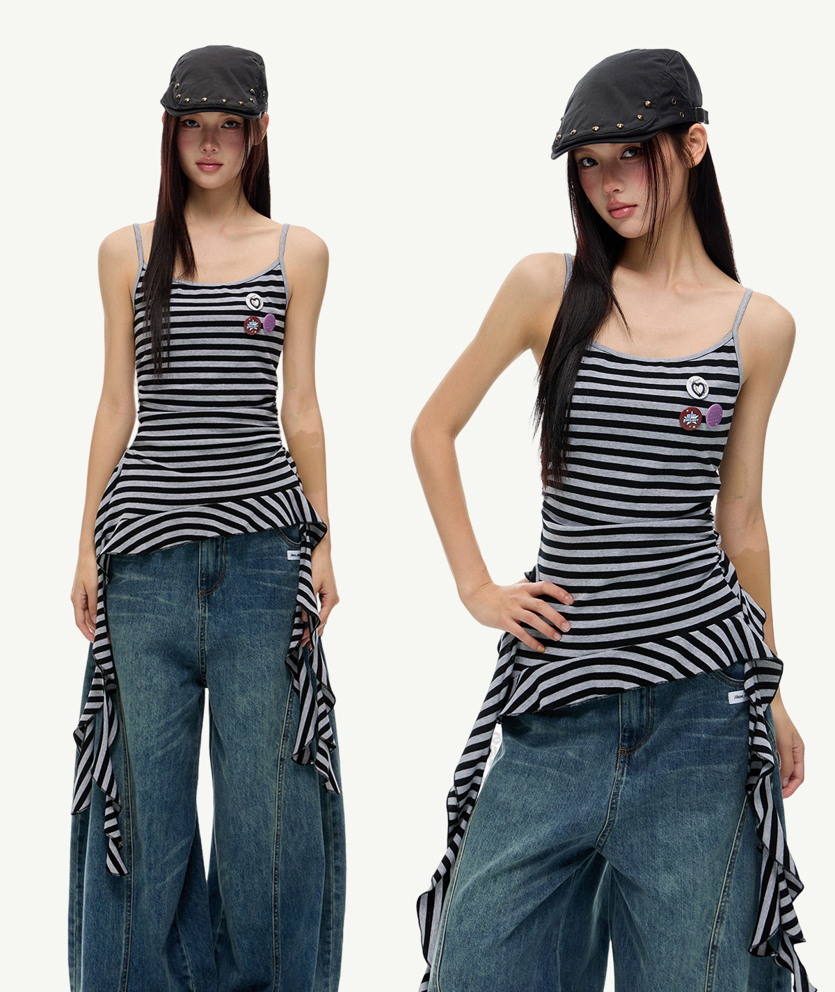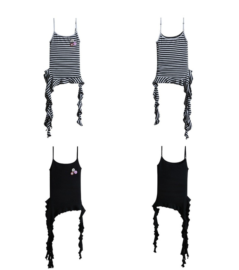 사이드 프릴 셔링이 돋보이는 슬리브리스 톱