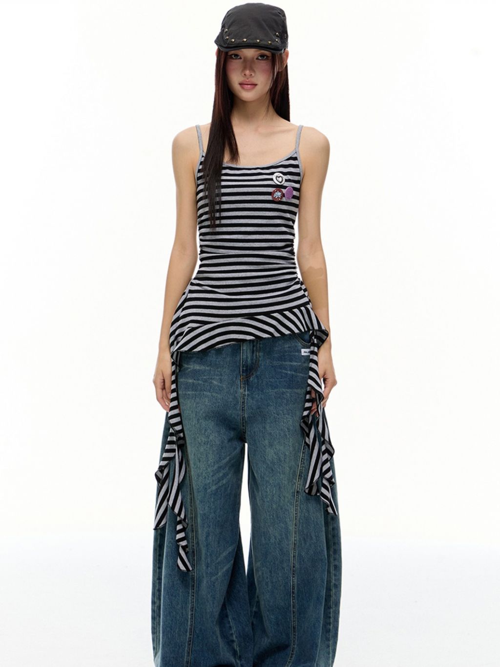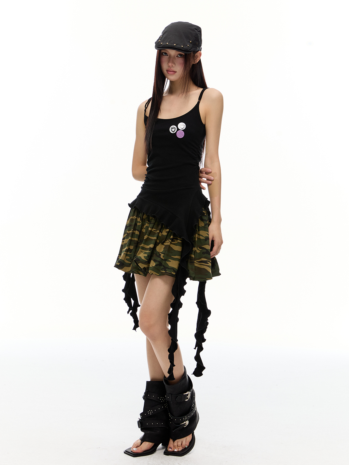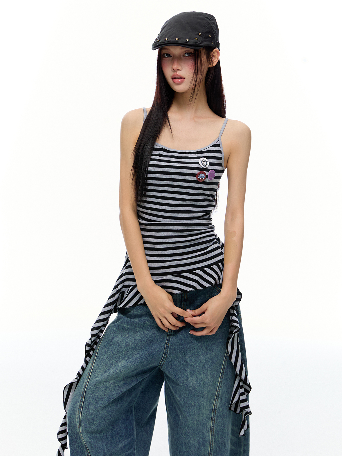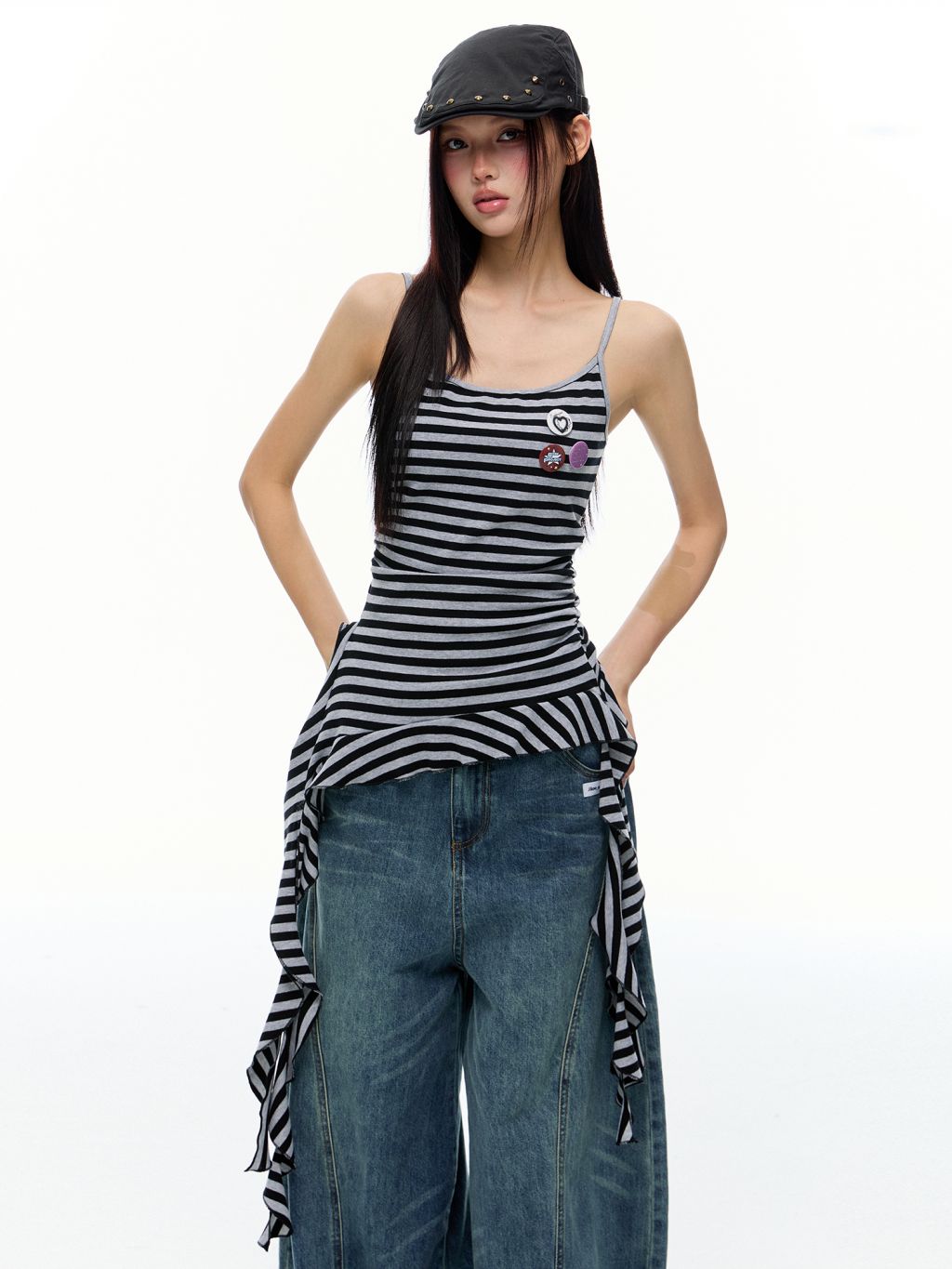 사이드 프릴 셔링이 돋보이는 슬리브리스 톱