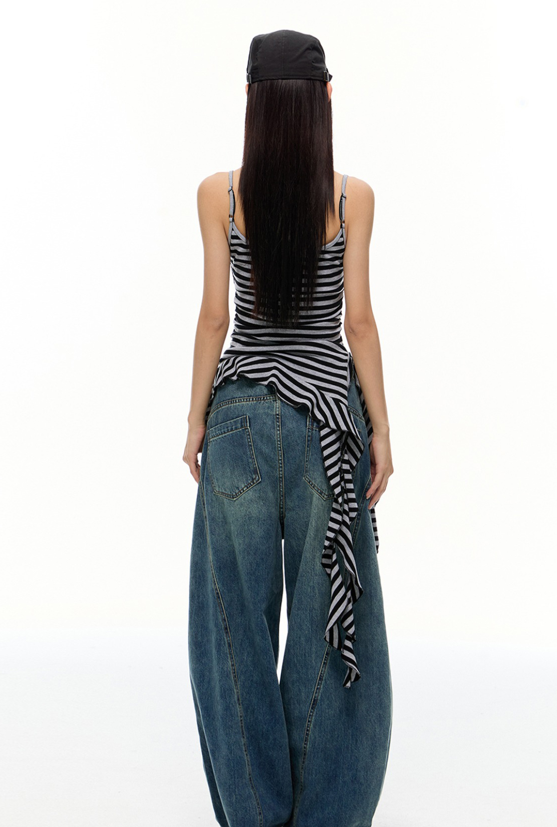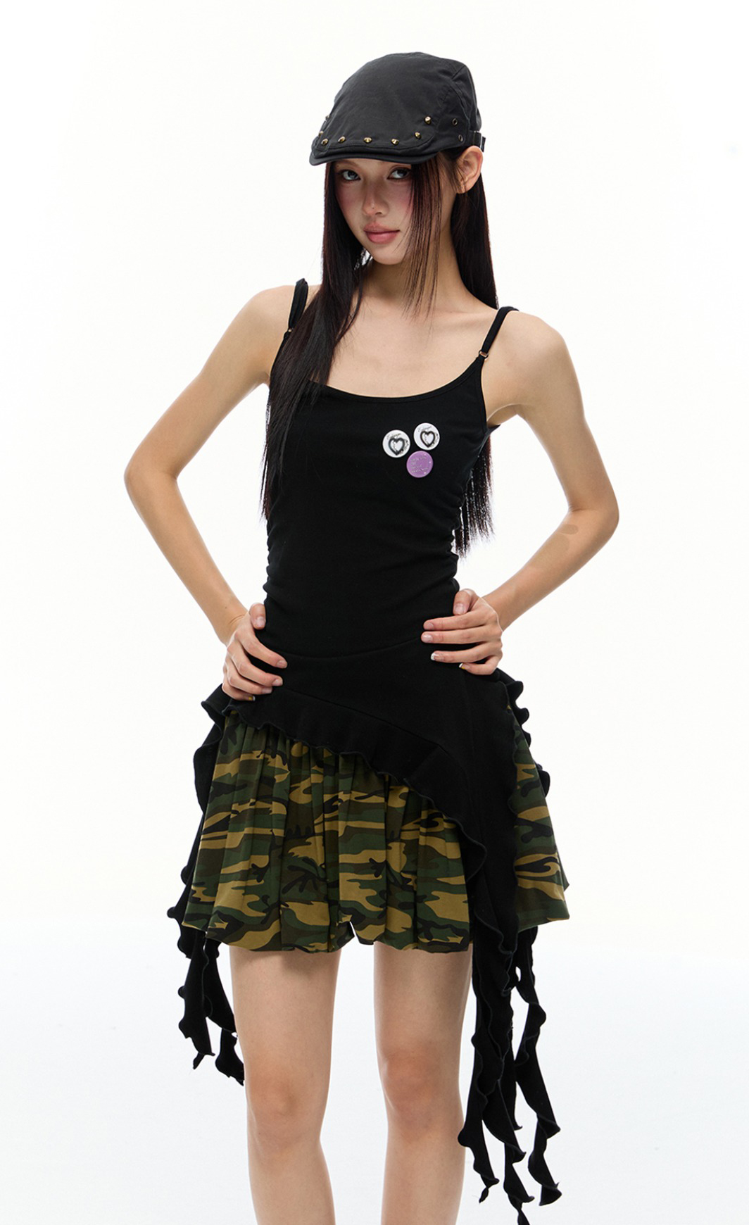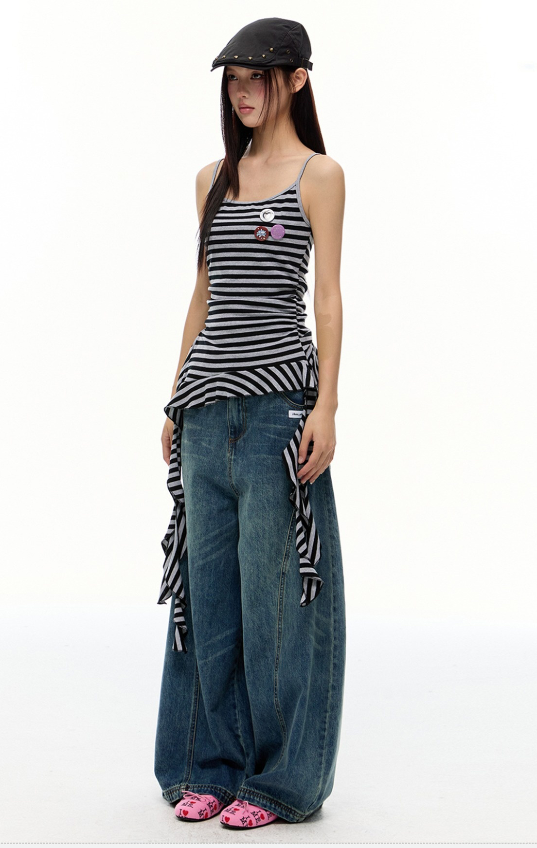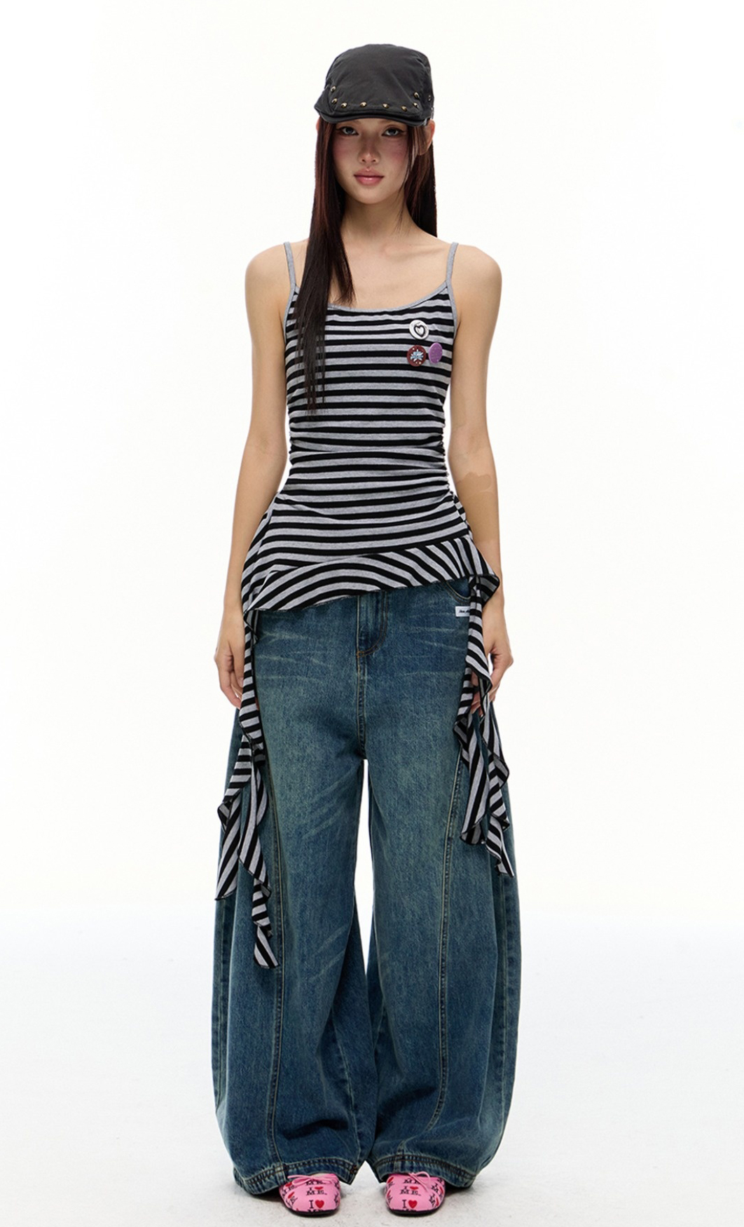 사이드 프릴 셔링이 돋보이는 슬리브리스 톱