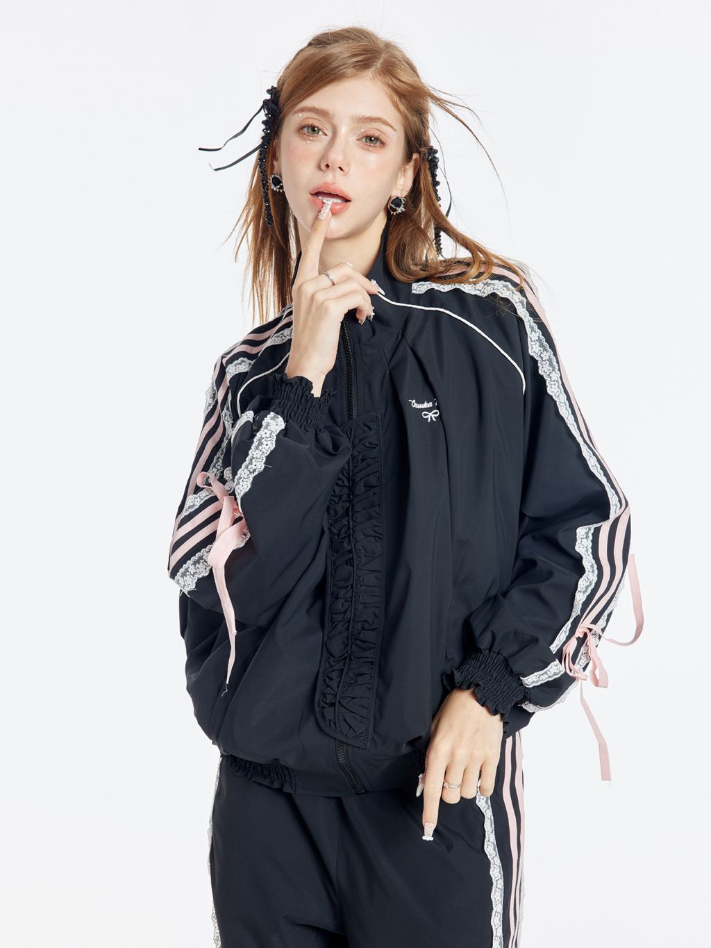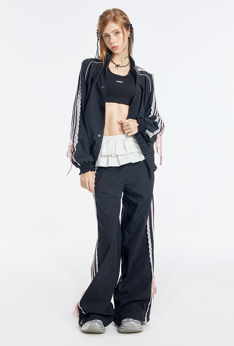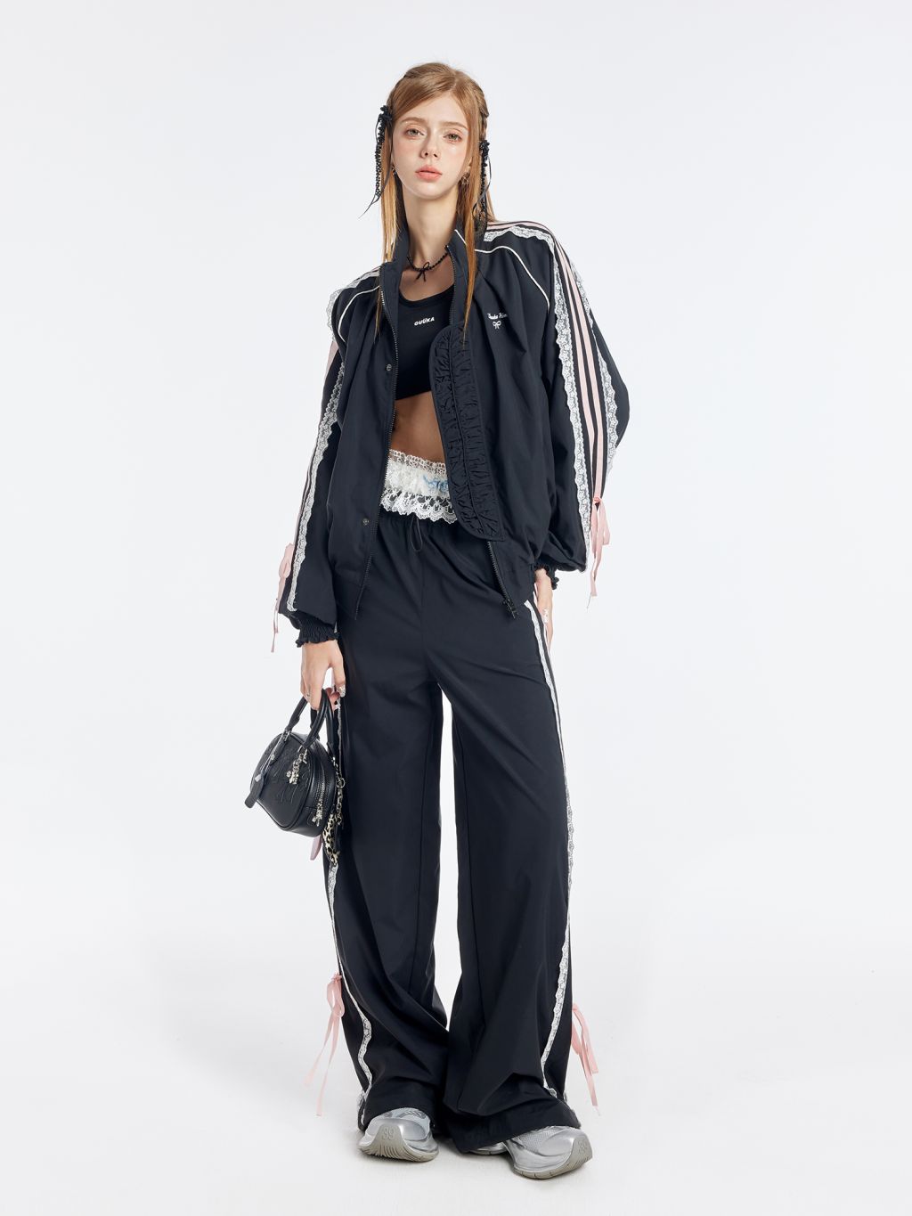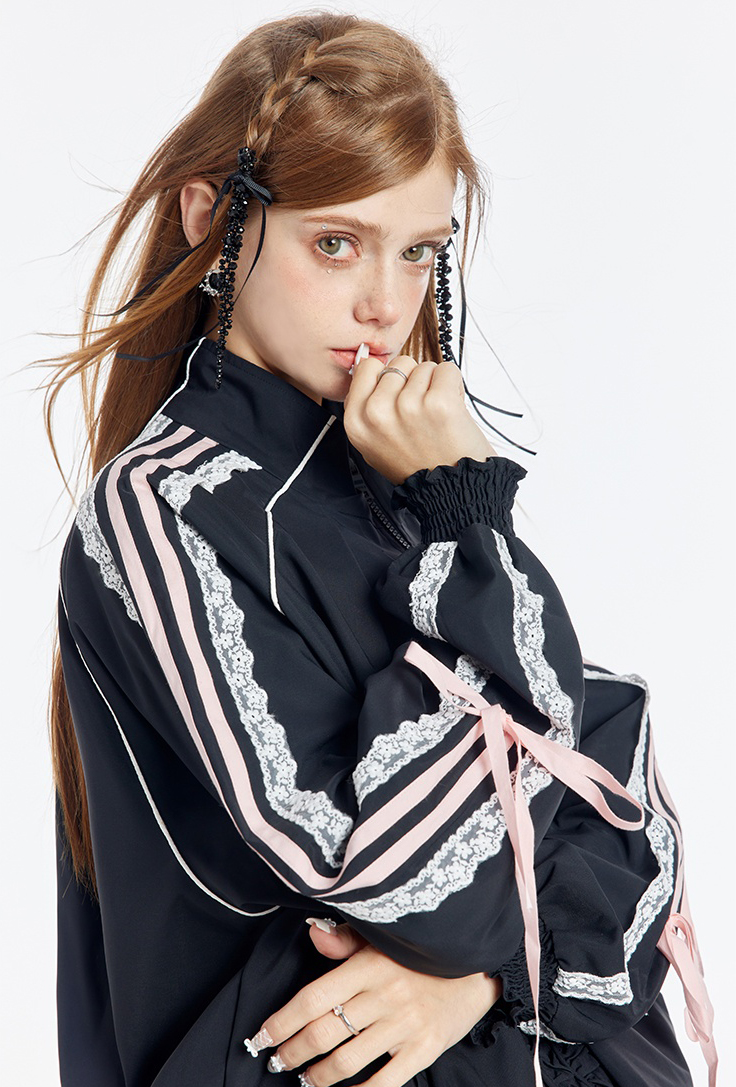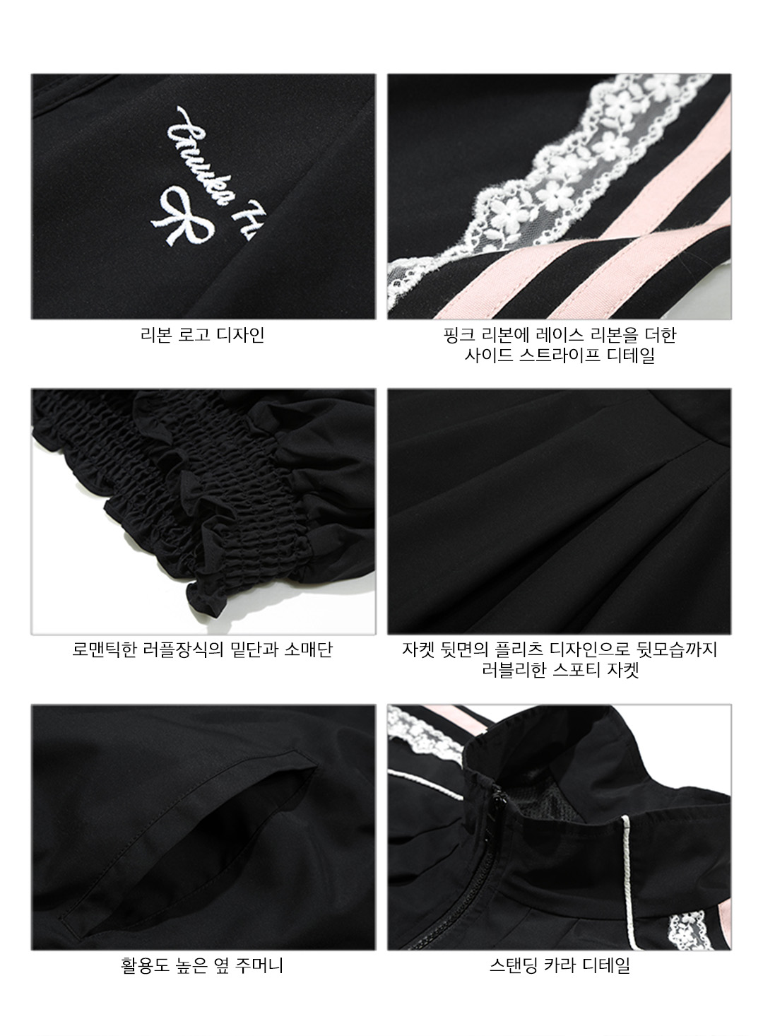 - 핑크 배색 라인과 리본 디테일로 러블리한 무드 강조