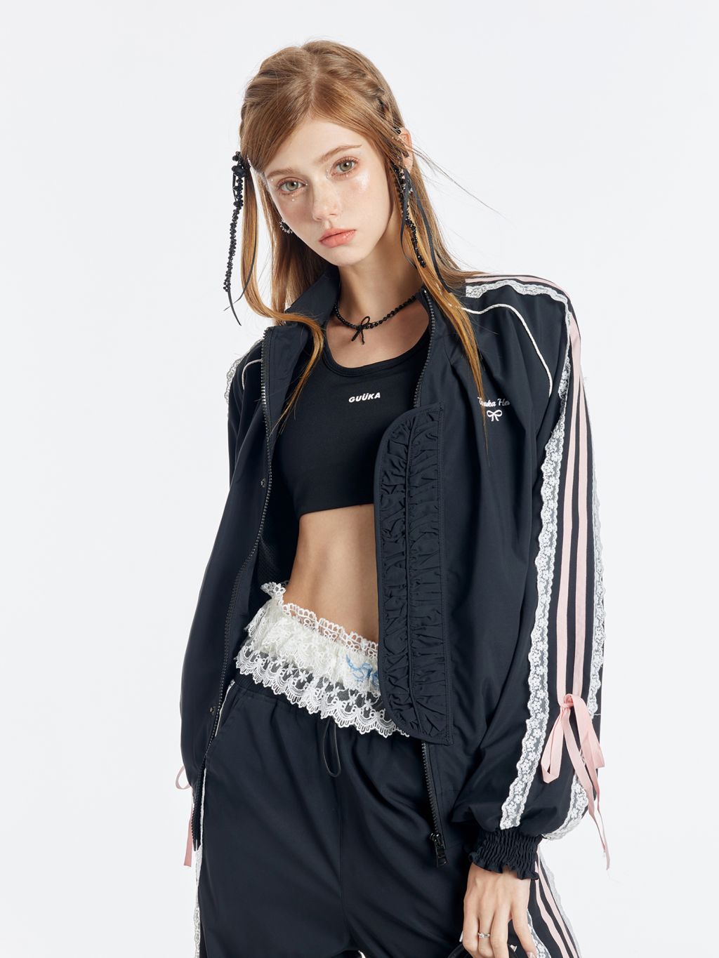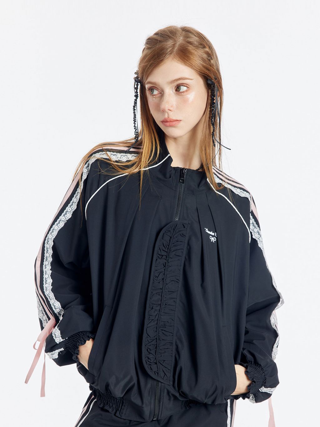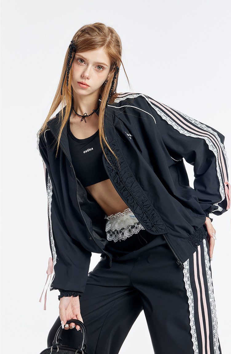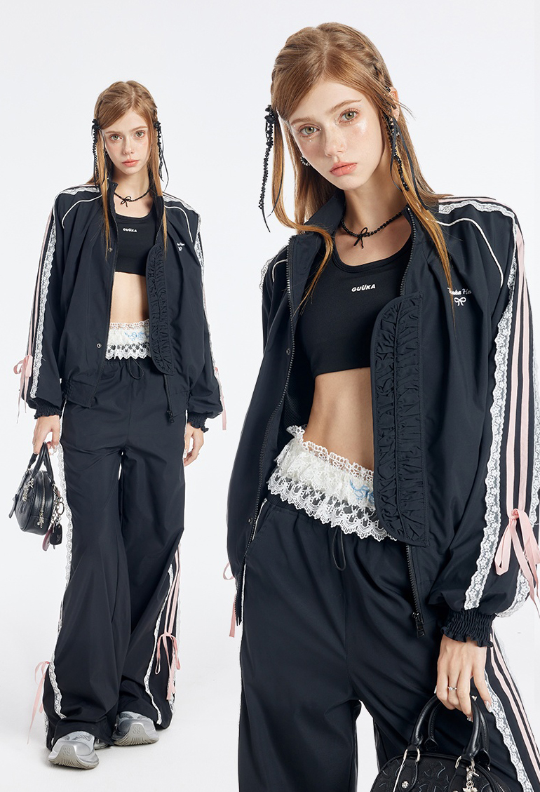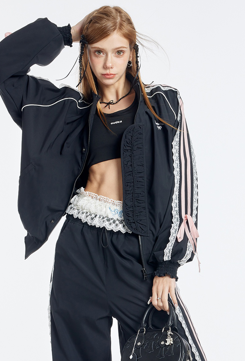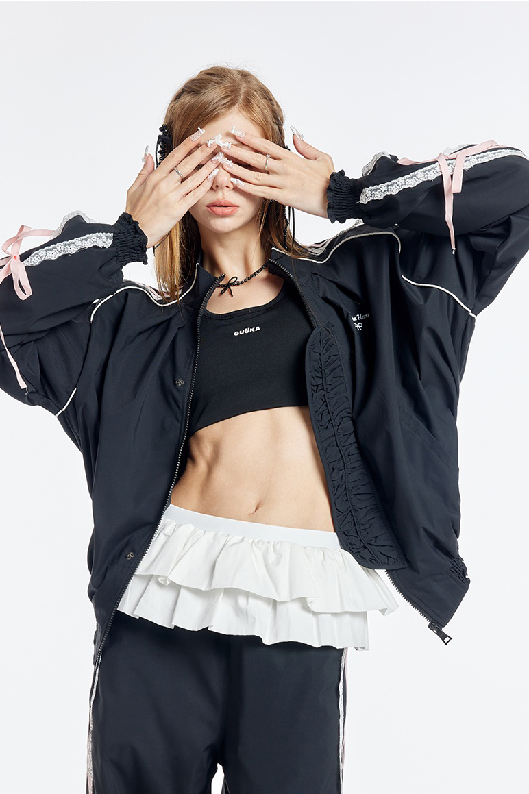 - 핑크 배색 라인과 리본 디테일로 러블리한 무드 강조