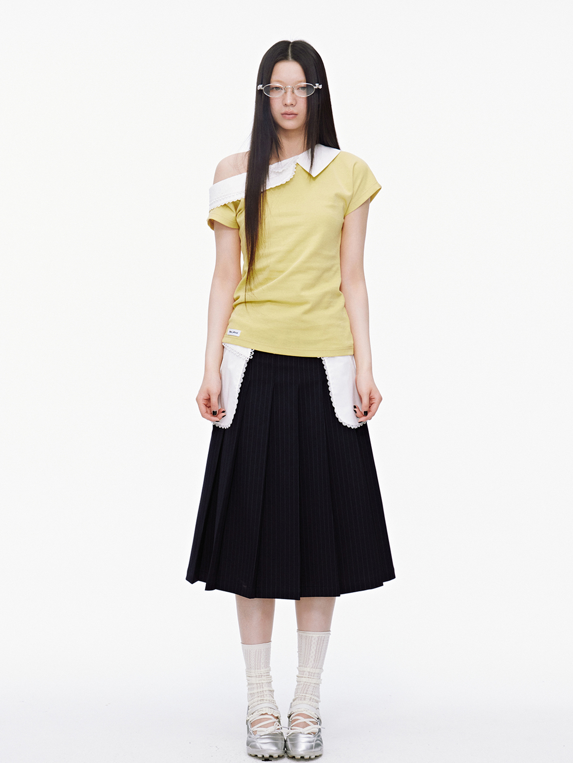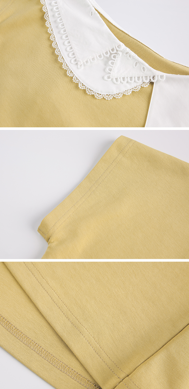 - 어깨에 넓은 레이스 디테일이 러블리한 느낌을 강조