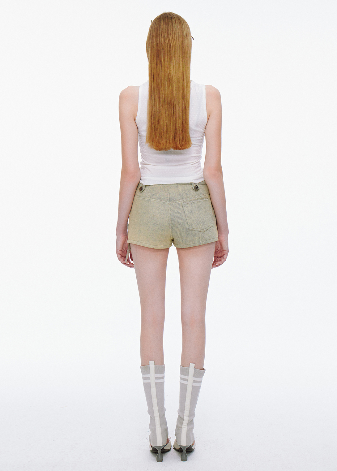 - 가슴 부분을 꼬아서 묶은 듯한 디테일이 몸에 자연스럽게 감기며 더욱 슬림하게 보이는 효과