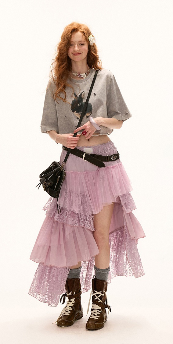 풍성한 실루엣과 빈티지 무드가 매력적인 스커트로 레이스와 시스루 원단의 믹스 매치로 완벽한 로맨틱 & 키치 스타일을 완성합니다.