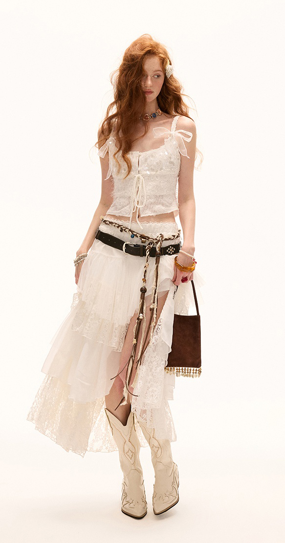 - 시스루 & 레이스 믹스 : 은은하게 비치는 시스루와 레이스 디테일이 페미닌하면서도 유니크한 포인트